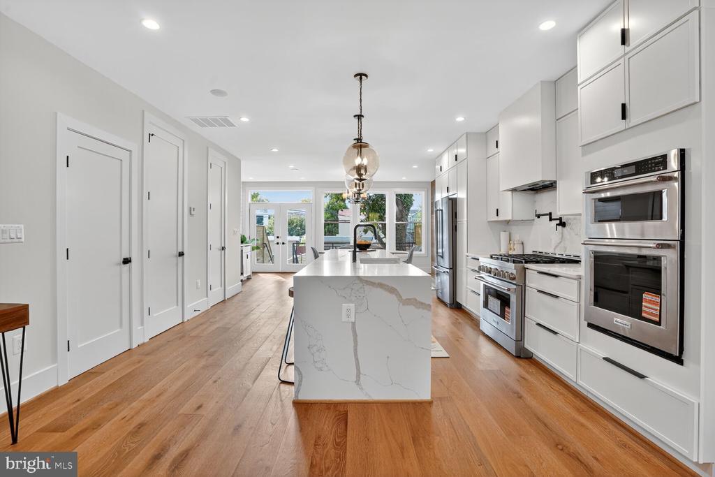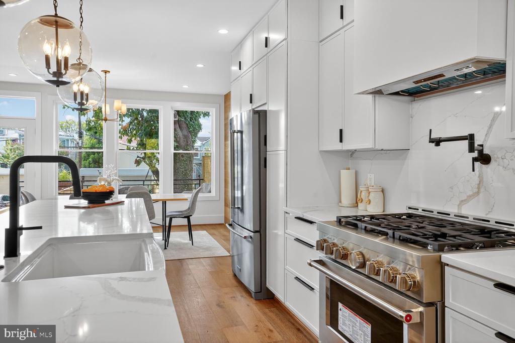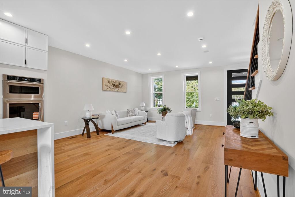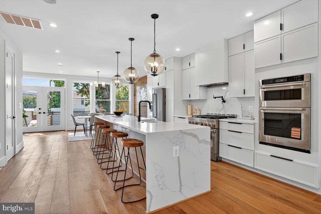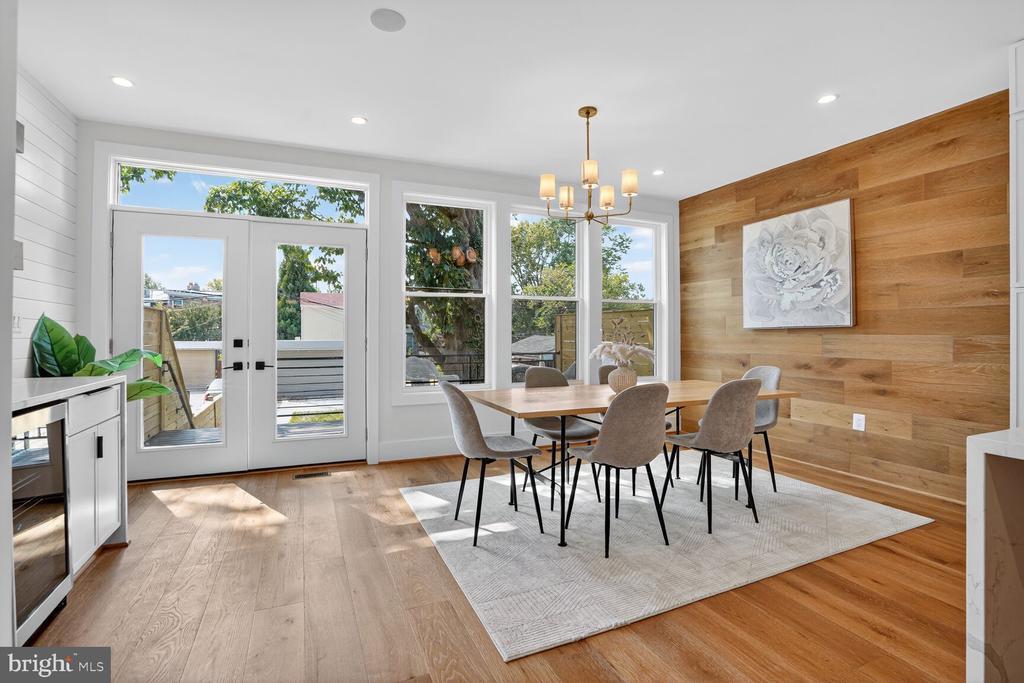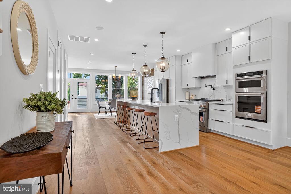 Our newest addition to the renovated canvas of Washington, this five-bedroom three-and-one half bath residence sits perched on the Northern end of 16th Street Heights. Once part of Maple Grove Farm, an 80-acre nursery that helped the green improvements of the National Mall, Capitol, and White House grounds this understated and impeccably designed home has every modern convenience, vast green spaces and subtle designer details that exceed expectations. The latest master piece built by prolific local builder Center Point Homes. This block of Longfellow Street is tree lined and bucolic, with large front porch Wardman homes. A front green space, dotted with evergreens and lower-level front entrance greet you as you ascend the concrete steps to the front porch. The six-panel windowed steel door with transom is the perfect blend of modern, hinting at the Architectural integrity of the open concept living beyond. Requisite rustic oak engineered flooring underfoot and so much more to take in; massive front windows, and an ample living room space. A fluted wood wall with built in coat hooks frames the front entrance. The modern kitchen boasts fixtures a gourmet chef would demand. Stainless Kitchenaide appliances with a built in 36- inch six burner range with accessible pot filler, ample storage in stacked ceiling height modern shaker cabinetry, and seating for six at the waterfall quartz stone island and a deep farmer’s sink. A wall oven and convection microwave make the space complete. An oversized dining space adjacent to the island features a wood panel wall for texture and a wine bar area with banquet space and whitewashed shiplap and custom shelving. French doors lead to the oversized Trex deck with privacy screens and custom metal railings. Ascend the modern stairs with down lit riser lighting and custom metal railings to the primary suite. You are welcomed to the space with oversized windows, nine-foot Cathedral ceilings, double closets with built in walk-in spaces and an ensuite spa bathroom. Double vanity sinks, frameless glass shower, pedestal soaking tub, a skylight and elegant timeless Carrera marble tile surround. The second and third bedrooms are serviced by an equally furnished hall bath with soaking tub. A full-size stackable washer and dryer complete the level. The lower level is a guest or nanny suite with rear and front entrances, bar area, recreation space, a full bath, and warm engineered flooring. A main bedroom, and additional bedroom or office space flanks the rear of the lower level with walk out access to the rear yard through a lower-level area way that serves as a second patio. The rear yard is a verdant green space with plat areas for entertainment or any gardening you may fancy. A two-car off street parking pad in zero maintenance poured concrete provides access to the paver alleyway. A commercial roll up garage door and electric vehicle charging port finish the space. All systems are new, plumbing, 200 AMP electrical service, and dual HVAC systems for true two zoned heating and cooling. All windows low E double Thermal Pane, and double hung. New cool white TPO roofs, and Trex decking installed. If you are looking for timeless elegance in a suburban/urban setting, with easy bus access to all of the Metropolitan area, this is the home you have been hoping would come along. Make this elegant part of history your home for a lifetime.
