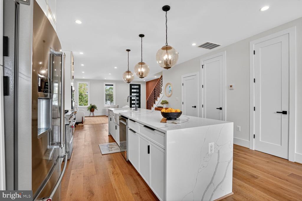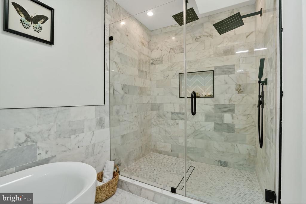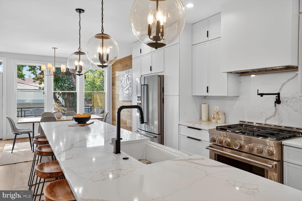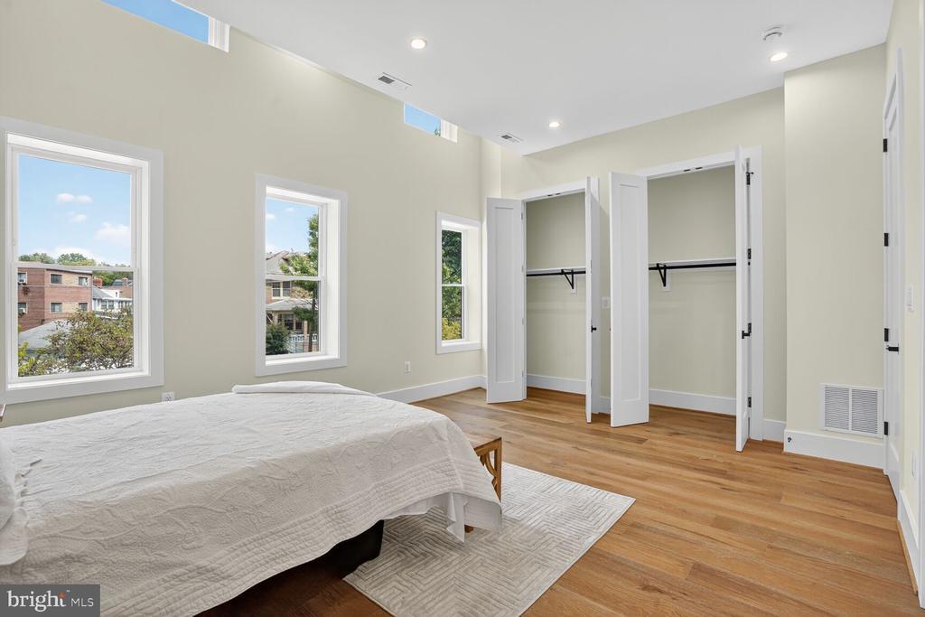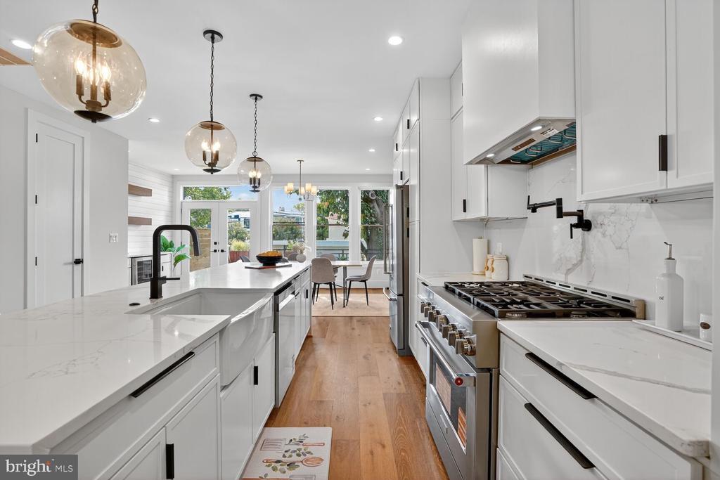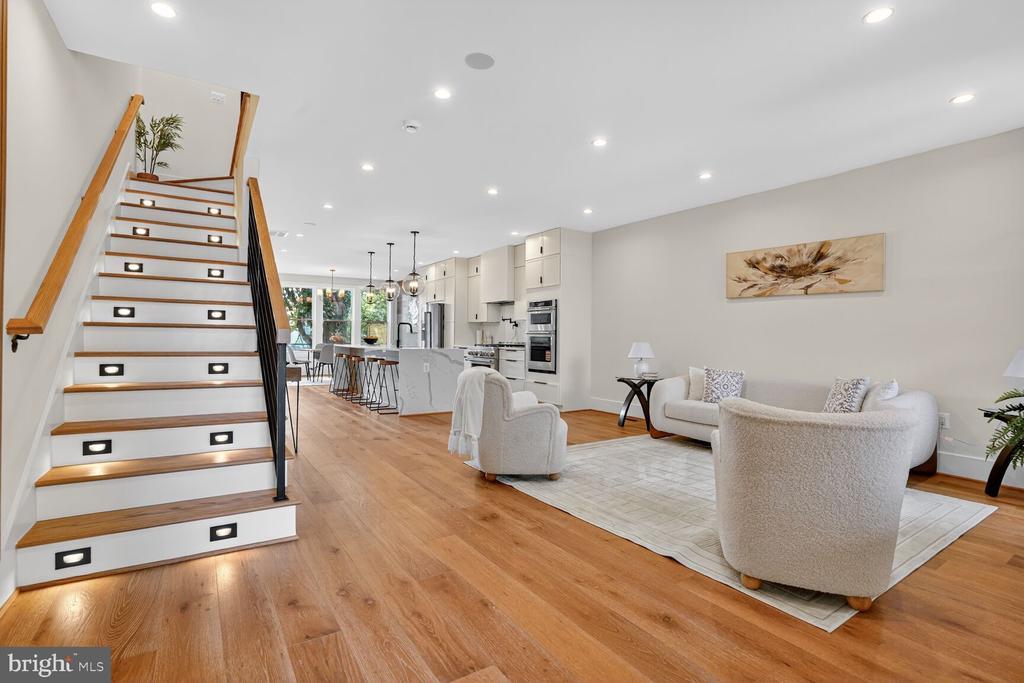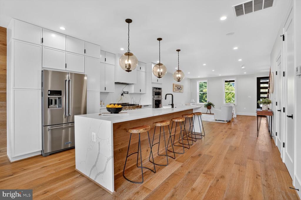 Our newest addition to the renovated canvas of Washington, this five-bedroom three-and-one half bath residence sits perched on the Northern end of 16th Street Heights. Once part of Maple Grove Farm, an 80-acre nursery that helped the green improvements of the National Mall, Capitol, and White House grounds this understated and impeccably designed home has every modern convenience, vast green spaces and subtle designer details that exceed expectations. The latest master piece built by prolific local builder Center Point Homes. This block of Longfellow Street is tree lined and bucolic, with large front porch Wardman homes. A front green space, dotted with evergreens and lower-level front entrance greet you as you ascend the concrete steps to the front porch. The six-panel windowed steel door with transom is the perfect blend of modern, hinting at the Architectural integrity of the open concept living beyond. Requisite rustic oak engineered flooring underfoot and so much more to take in; massive front windows, and an ample living room space. A fluted wood wall with built in coat hooks frames the front entrance. The modern kitchen boasts fixtures a gourmet chef would demand. Stainless Kitchenaide appliances with a built in 36- inch six burner range with accessible pot filler, ample storage in stacked ceiling height modern shaker cabinetry, and seating for six at the waterfall quartz stone island and a deep farmer’s sink. A wall oven and convection microwave make the space complete. An oversized dining space adjacent to the island features a wood panel wall for texture and a wine bar area with banquet space and whitewashed shiplap and custom shelving. French doors lead to the oversized Trex deck with privacy screens and custom metal railings. Ascend the modern stairs with down lit riser lighting and custom metal railings to the primary suite. You are welcomed to the space with oversized windows, nine-foot Cathedral ceilings, double closets with built in walk-in spaces and an ensuite spa bathroom. Double vanity sinks, frameless glass shower, pedestal soaking tub, a skylight and elegant timeless Carrera marble tile surround. The second and third bedrooms are serviced by an equally furnished hall bath with soaking tub. A full-size stackable washer and dryer complete the level. The lower level is a guest or nanny suite with rear and front entrances, bar area, recreation space, a full bath, and warm engineered flooring. A main bedroom, and additional bedroom or office space flanks the rear of the lower level with walk out access to the rear yard through a lower-level area way that serves as a second patio. The rear yard is a verdant green space with plat areas for entertainment or any gardening you may fancy. A two-car off street parking pad in zero maintenance poured concrete provides access to the paver alleyway. A commercial roll up garage door and electric vehicle charging port finish the space. All systems are new, plumbing, 200 AMP electrical service, and dual HVAC systems for true two zoned heating and cooling. All windows low E double Thermal Pane, and double hung. New cool white TPO roofs, and Trex decking installed. If you are looking for timeless elegance in a suburban/urban setting, with easy bus access to all of the Metropolitan area, this is the home you have been hoping would come along. Make this elegant part of history your home for a lifetime.