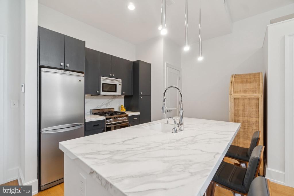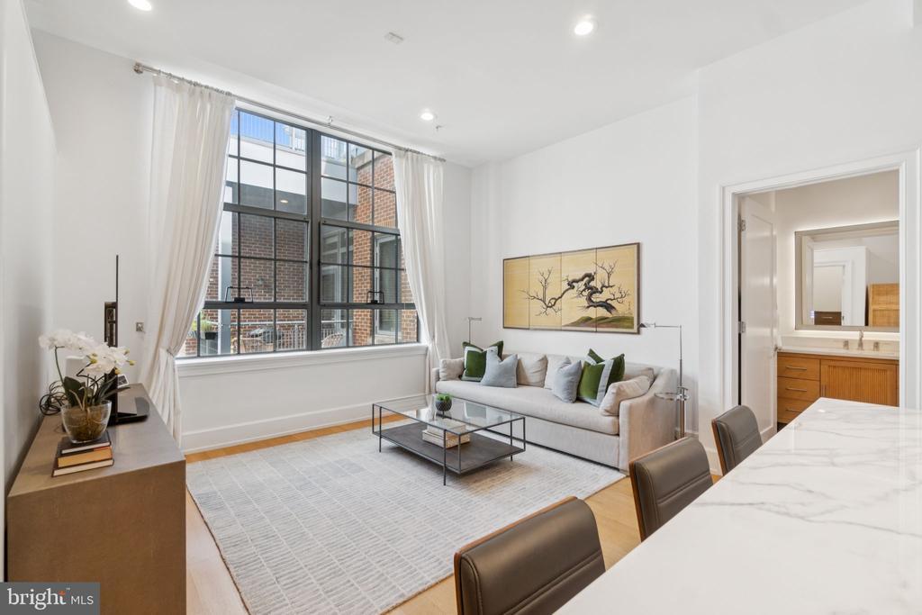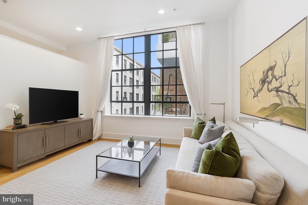 Prime Georgetown location situated just one block from Georgetown’s beloved Rose Park! This bright and stylish one-bedroom, one-bath condo is located in the quiet boutique Sheridan Garage condominiums and includes an on-site rental parking space for one car. The unit was recently refreshed and features brand-new interior paint, new light fixtures, and elegant custom drapes. The open-concept floor plan includes hardwood flooring, a sleek kitchen with marbled quartz countertops and backsplash, a breakfast island with an integrated sink, and stainless steel appliances. A dramatic double-height window fills the living area with beautiful natural light and an efficient office nook is tucked beside the kitchen, ideal for working from home. The bedroom includes a walk-in closet and receives soft natural light through a partial wall that preserves privacy. The full bathroom has been updated with a new toilet and new vanity, complemented by elegant granite surfaces. Additional upgrades include a brand-new in-unit washer and dryer. Condo fee includes water, gas, building maintenance, and building front desk/concierge service Monday through Friday. On-site rental parking is available for a monthly fee. Pet-friendly building! Easy walk to Georgetown’s vibrant shops and restaurants, 7 min walk to Dupont Circle’s Red Line Metro, and one block to Rock Creek Parkway for all major commuter routes. Streets Market, Dry Cleaners, & Apero restaurant conveniently just around the corner!