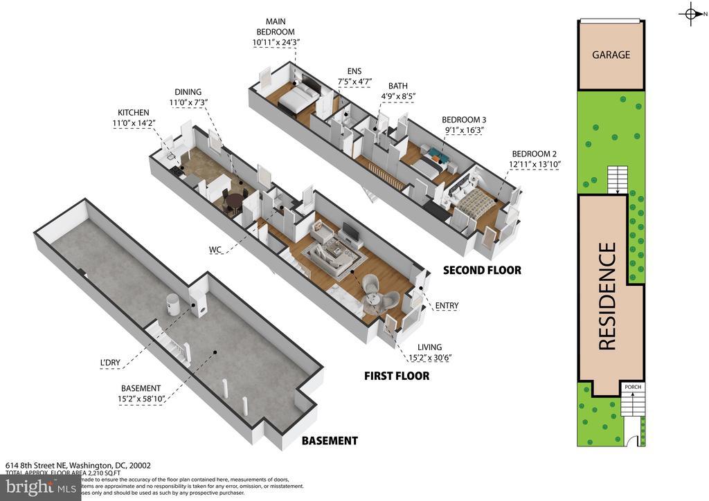 Welcome home to this Capitol Hill gem where classic architecture meets modern living. Behind its timeless faade, you’ll find warm, light-filled spaces with solid oak floors, open living and dining areas, working fireplace and a built-in wet bar. French doors lead to an updated kitchen with granite counters, a stylish tile backsplash, and a pantry. Upstairs are three spacious bedrooms, including a primary suite with custom closets and private bath. A built-in bookcase adds charm to another bedroom, while skylights enhance the home’s natural light. Enjoy a private patio garden with a landscaped path to the private garage, plus a large basement offering excellent storage and expansion potential. Virtually staged. Ideally located near Michelin-starred Pasqual, Ludlow-Taylor Elementary, H Street, Eastern Market, Union Market, and Metro.