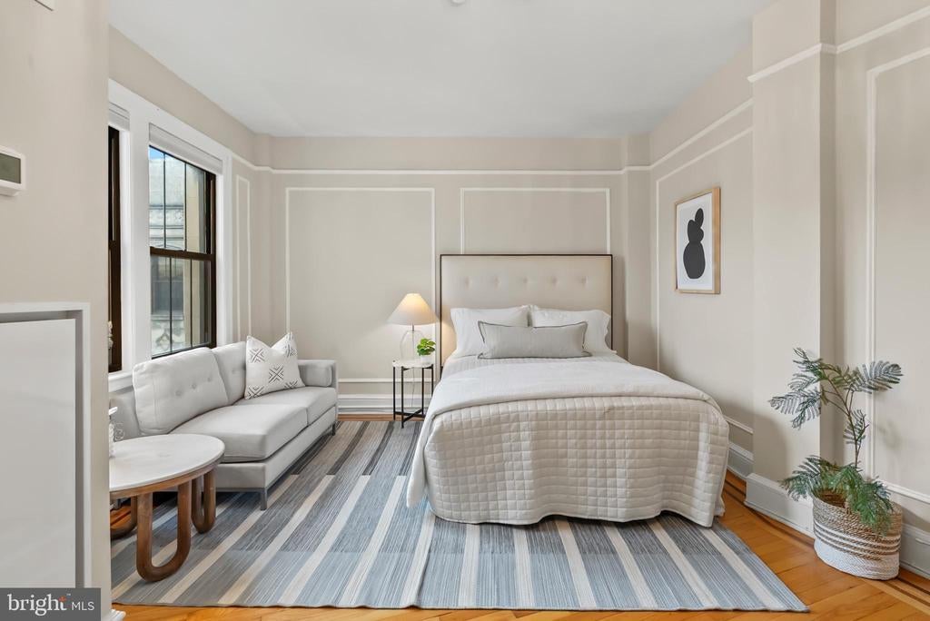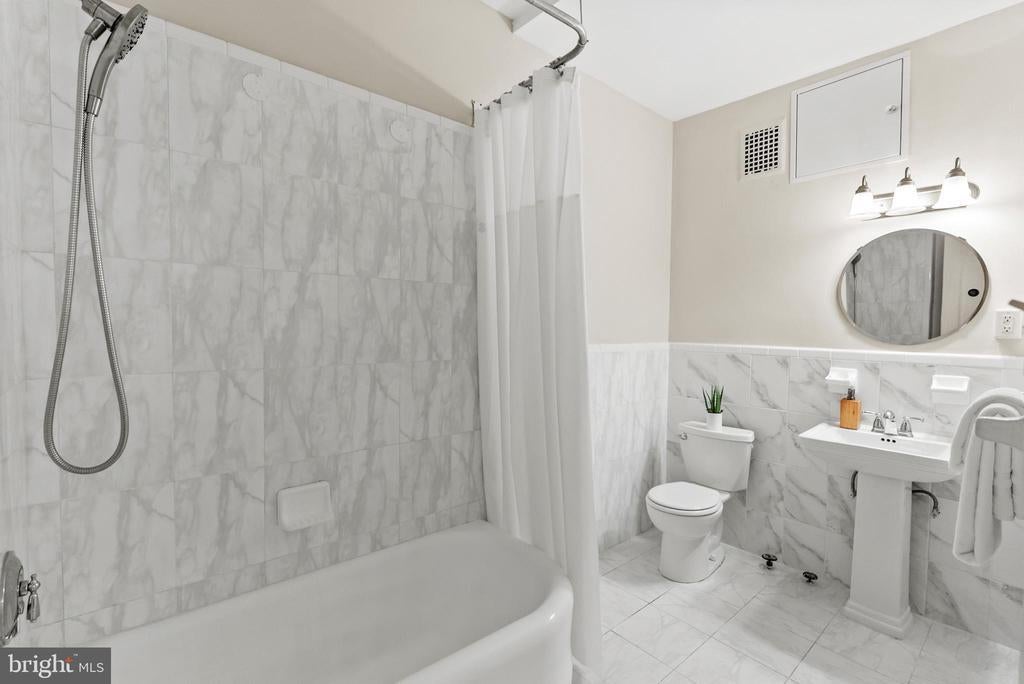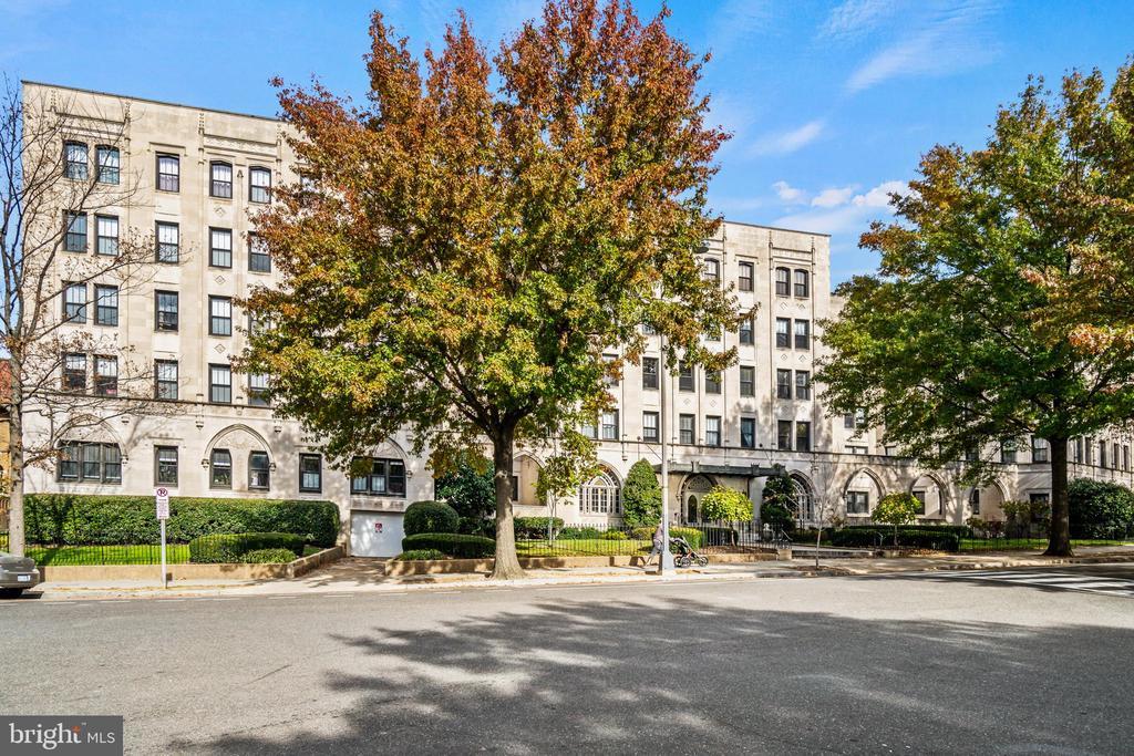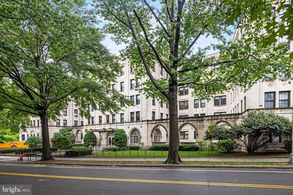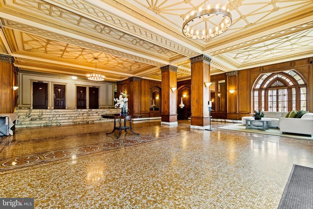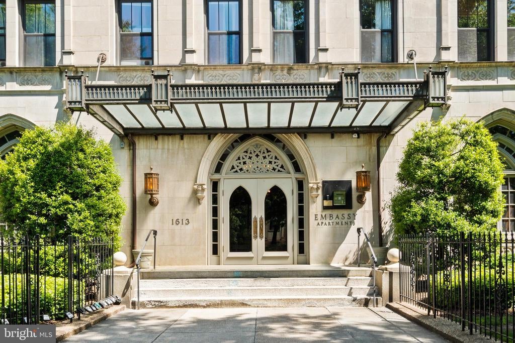 Embassy Condos | Studio | 1 Bath | 385 Sf | Building: Built in 1923, 77 Units, Elevator, Elegant Lobby, Fitness Center | Unit: Historical Plaster Moldings, Large Windows w/ Lots of Natural Light, Large Walk-In Closet w/ Custom Storage, Glass Chandelier Ceiling Fan, New Custom Blinds, Hardwood Flooring | Kitchen: Granite Countertops, Soft-Close Cabinetry, Stainless Steel Appliances, LG Refrigerator, Electric Range, Profile Dishwasher, Tile Flooring | Bath: Tub Shower Combo w/ Handheld Shower Head, Pedestal Sink, Tiled Pony Walls & Flooring