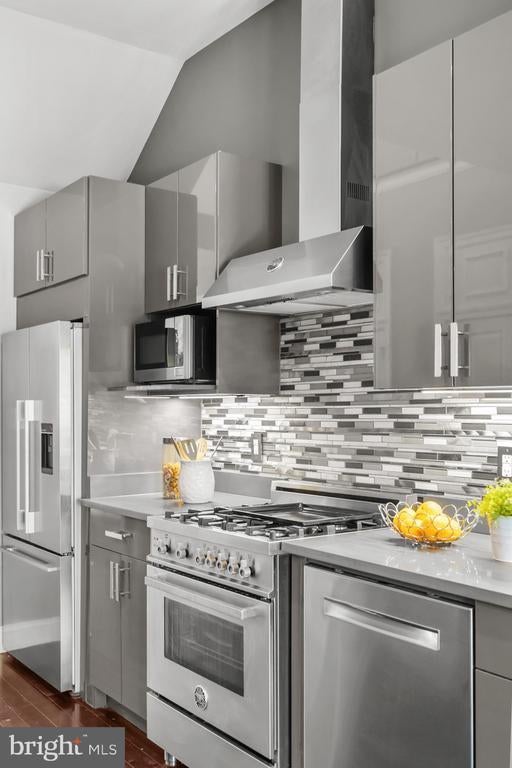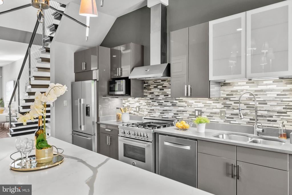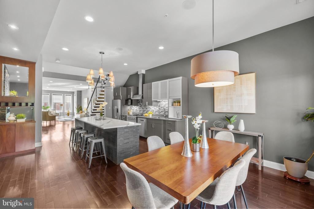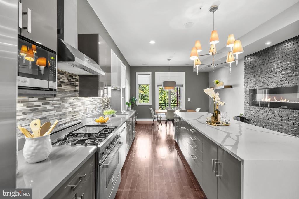 Modern style meets historic charm in this spacious 2-level, 2-bedroom, 2.5-bath condo-style townhome in vibrant LeDroit Park. Enjoy outdoor space on every level—including a Private Rooftop Deck—and the convenience of Assigned Parking. The open main level features hardwood floors, recessed lighting, and tall windows that flood the home with natural light. A flexible floor plan offers a generous living area with space for an office nook and flows seamlessly into a stunning eat-in kitchen with sleek cabinetry, quartz countertops, gas cooking, tiled backsplash, high-end appliances, and a large island ideal for dining or entertaining. A modern gas fireplace adds warmth and sophistication, and a discreet powder room completes the level. Upstairs, two spacious bedrooms each have en-suite baths and are thoughtfully separated for privacy. The primary suite includes a private balcony and a spa-like bath with dual vanities, separate tub, and shower. Convenient upper-level laundry. The expansive rooftop deck is perfect for relaxing, dining, or entertaining outdoors. Steps to neighborhood favorites like Red Hen, Boundary Stone, and Big Bear Café, and close to the exciting McMillan Reservoir redevelopment with future parks, retail, and green space. A rare opportunity to own a contemporary home in one of DC’s most dynamic and evolving neighborhoods.