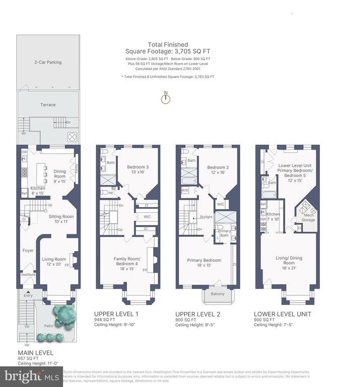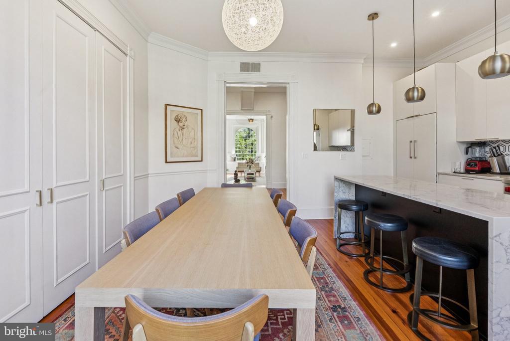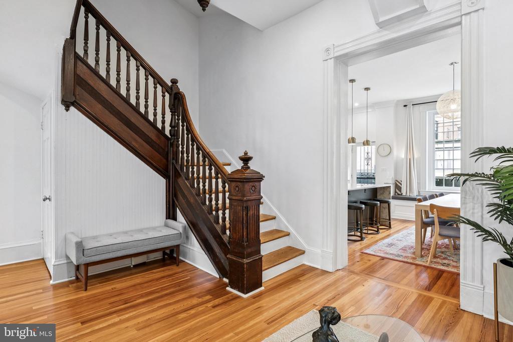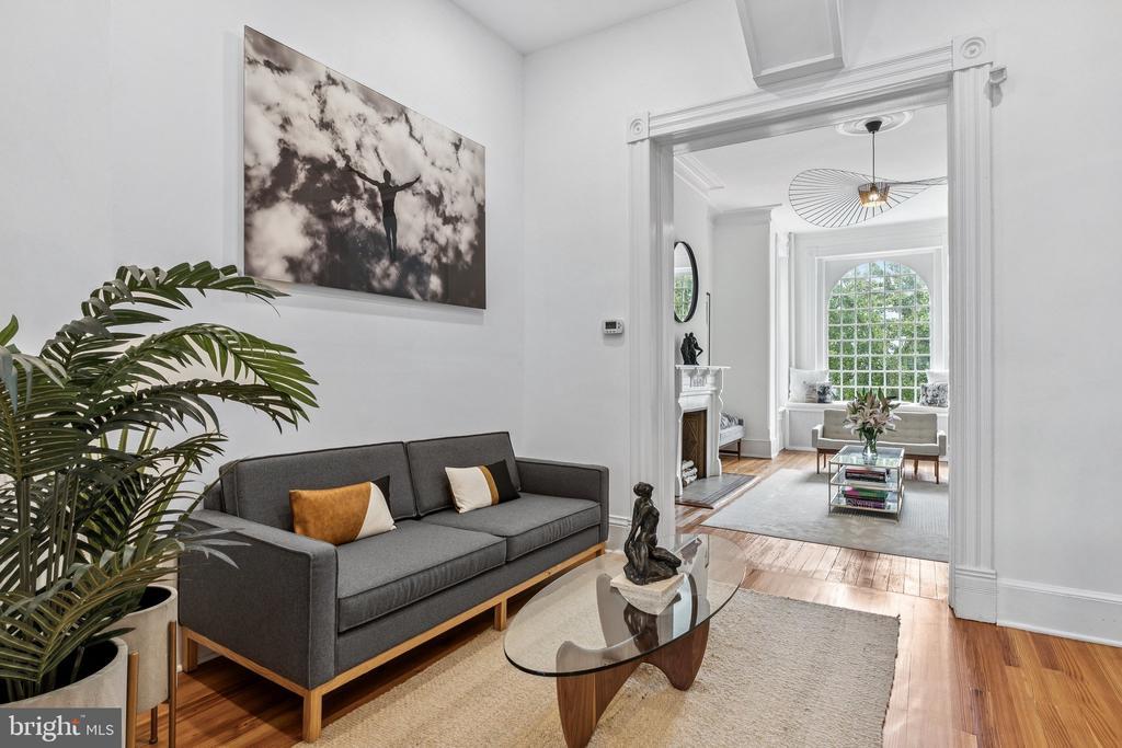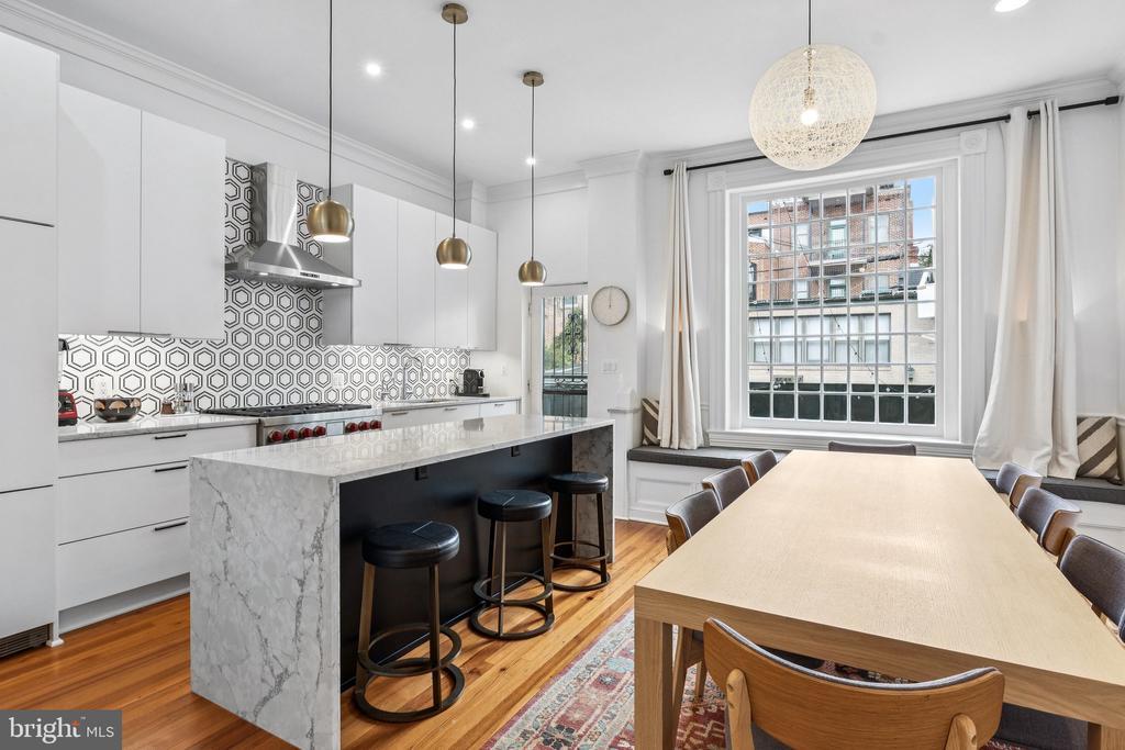 NEW PRICE! Welcome to 1517 Corcoran Street, an exquisite 1875 townhouse tucked along one of Dupont Circle’s most treasured one-way blocks. Behind a picture-perfect faade rich in historic character, this 5 Bedroom, 4.5 Bathroom residence spans approximately 3,705 square feet showcasing grand proportions with soaring ceilings, oversized windows that flood the interiors with natural light, beautifully restored original wood floors, and a restored four-story central staircase dating back to 1875. The newly completed chef’s kitchen impresses with a Wolf range, custom-paneled appliances, bespoke cabinetry, and stunning quartzite marble countertops and backsplash. Luxurious, newly renovated baths and designer lighting are found throughout, along with a new HVAC system for modern comfort. Outdoors, a completely reimagined backyard features two stone terraces, two custom iron staircases, and a 9-foot custom paneled fence—perfect for entertaining or relaxing in privacy. Private two-car parking completes this exceptional offering. A separate lower-level unit provides exceptional versatility with its own living/dining area, full kitchen, bedroom, bath, laundry, and private entrance—ideal for guests, an au pair, or potential rental income opportunities. Don’t miss out on this rare opportunity to own a truly special home that marries historic character with modern luxuries and sophistication on one of Washington’s most coveted blocks. OPEN HOUSE SUNDAY, 11/9 | 1:00-3:00PM
