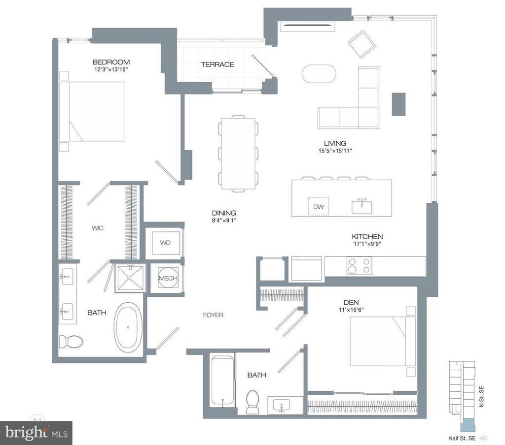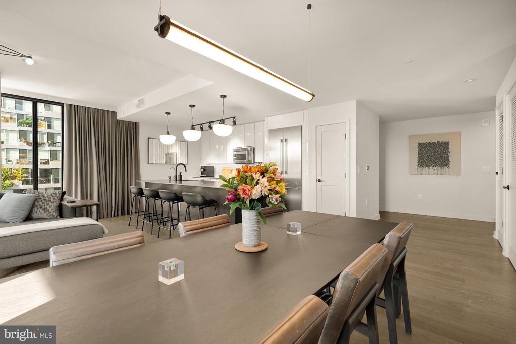 Experience life at the top at 70 N Street SE #601, where modern sophistication meets effortless style in the heart of Navy Yard. This stunning 2-bedroom, 2-bath corner residence with garage parking and storage unit at The EnVy offers a front-row seat to the city, with floor-to-ceiling windows framing sweeping views of Nationals Park, the Potomac River, and the skyline beyond. Bathed in natural light, the home’s open layout and soaring 10-foot ceilings create an atmosphere of refined spaciousness. Step onto your private balcony to catch a Nationals game, or draw the custom floor-to-ceiling shades and unwind in quiet luxury—from the gracious chef’s kitchen to the serene primary suite. The primary bathroom evokes a spa-like retreat with a dual vanity, freestanding soaking tub, and frameless glass shower—each element crafted with elegance and intention. Residents of The EnVy enjoy an unrivaled amenity collection, including a rooftop terrace with panoramic city views, outdoor grill stations, elegant entertaining spaces, private work suites, a state-of-the-art fitness center, and secure underground parking. Perfectly positioned between The Wharf and Capitol Hill, this home places you at the center of D.C.’s most dynamic corridor—where waterfront recreation, acclaimed dining, and cultural energy converge. 70 N Street SE #601 isn’t just an address; it’s a lifestyle defined by light, luxury, and location.