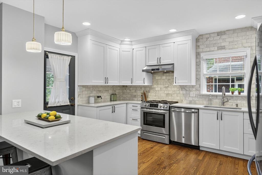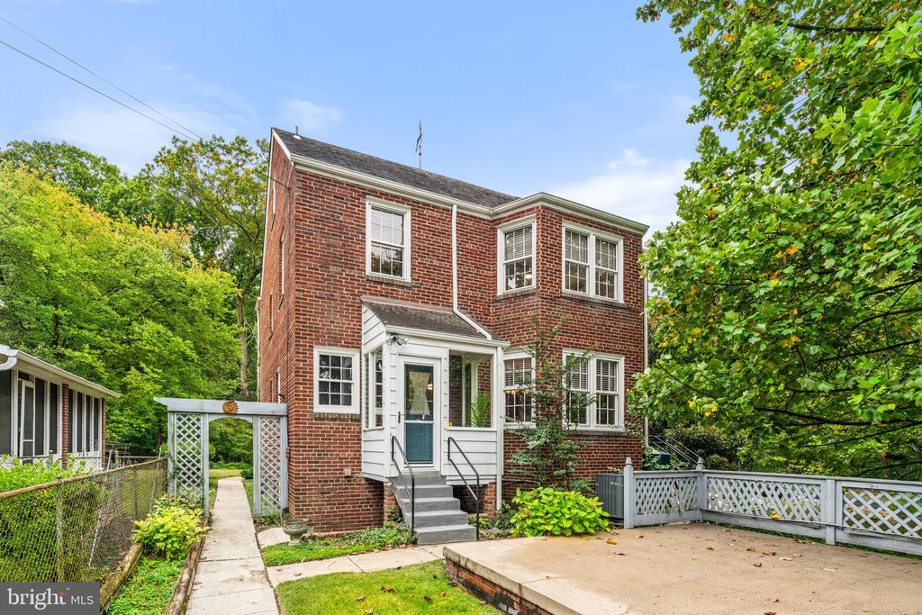 SERENE SITE, SPACIOUS STRUCTURE AND SUBLIME STYLE - Poised perfectly on a sun-drenched corner lot across from Fort Circle Park’s peaceful paths and forested trails, this classic red-brick colonial cottage serves up serenity, seclusion, and stellar location in equal measure. Inside, FOUR floors unfold: a fire-lit living room, a dining room fit for feasts or ftes, and a chef’s kitchen gleaming with quartz, marble, and morning light—plus a bonus sunroom or playroom and a private powder room. Upstairs, a primary suite pairs with two bright bedrooms and a crisp, hall bath. One floor up, a fantastic FOURTH bedroom or inspired artist’s studio awaits. The lower level delivers more: a second living room with fireplace, a full bath, oversized laundry, ample storage, and walk-out access to a dreamy, pergola-topped patio above the detached GARAGE—perfect for grilling, gathering, or gazing at the poplar canopy above! Call for a private tour TODAY!