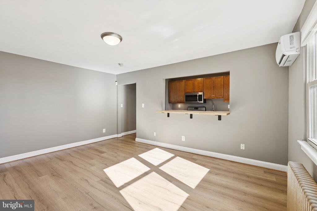 Welcome to this bright and beautifully renovated 1-bedroom, 1-bath condo offering 660 sqft of comfortable living space in Southeast DC. Thoughtfully updated, this top story home combines modern upgrades with classic charm. The renovated kitchen showcases quartz countertops, stainless steel appliances, and ample cabinet storage — a stylish and functional space for everyday living. The spacious bedroom is filled with natural light and offers generous closet space, while the bathroom provides a clean, well-maintained layout. Enjoy year-round comfort with a state-of-the-art air conditioning and dehumidifier system, ensuring superior efficiency and air quality. Additional features include in-unit laundry, secure building entry, and low condo fees. Ideally located just 1.4 miles from the Metro and steps from Fort Circle Park, this condo offers easy access to Capitol Hill, Navy Yard, and Anacostia Park, plus nearby shops, restaurants, and commuter routes.