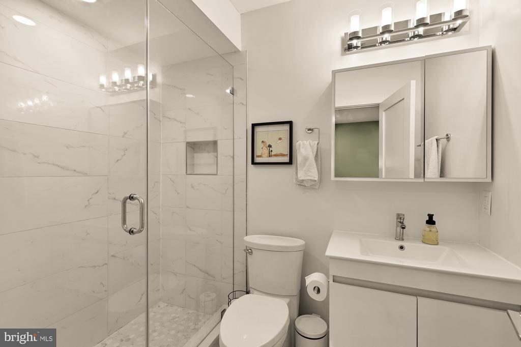 Sleek and modern 2-bedroom, 2-bath condo with a private entrance in an unbeatable Hill East location—just steps from everything! Built in 2020, this pet-friendly home features a bright, open layout centered around a stunning kitchen with flat-panel cabinetry, quartz countertops, and stainless steel appliances. Two spacious bedrooms provide excellent closet space, including a serene primary suite with a glass-enclosed shower, while the second bedroom enjoys access to a full hall bath with tub. Additional highlights include private front and rear entrances and an in-unit washer and dryer for ultimate convenience. Enjoy being just moments from all the culinary favorites at The Roost, along with local gems like Trusty’s, Hill East Burger, and Paraiso. Commuting is effortless with Potomac Ave Metro (Blue/Orange/Silver lines) just around the corner, and Eastern Market and Barracks Row only a short stroll away. Outdoor lovers will appreciate easy access to the 20-mile Anacostia Riverwalk Trail—perfect for biking, jogging, or simply taking in the views. 1045 square feet per Architect Report. Square footage is approximate and should not be used for property valuation.