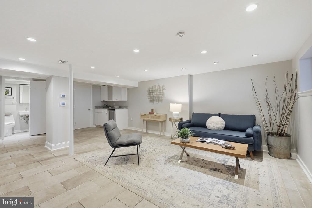 GEORGETOWN - West Village. A seamless blend of old-world charm and modern sophistication. Beautiful top-to-bottom transformation in 2015 with a timeless allure. Electrical and plumbing all 10 years old. Gorgeous wide-plank hardwood flooring with radiant heat in every room, a state-of-the-art gourmet kitchen with stainless steel Miele appliances, Quartz countertops and island. Spacious, light-filled rooms. Upstairs find the primary bedroom with ensuite bathroom featuring a chic barn door with translucent glass and turquoise-tiled spa-like shower. Two additional full-sized bedrooms and a sleek hall bathroom with tub. Lower-level family/entertainment room, with convenient kitchenette with wine refrigerator, additional marbled-tile full bath. High ceilings and easy walkout to quaint patio and parking pad. Less than a block away from Georgetown retail and amenities.