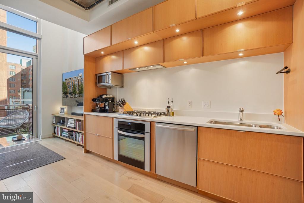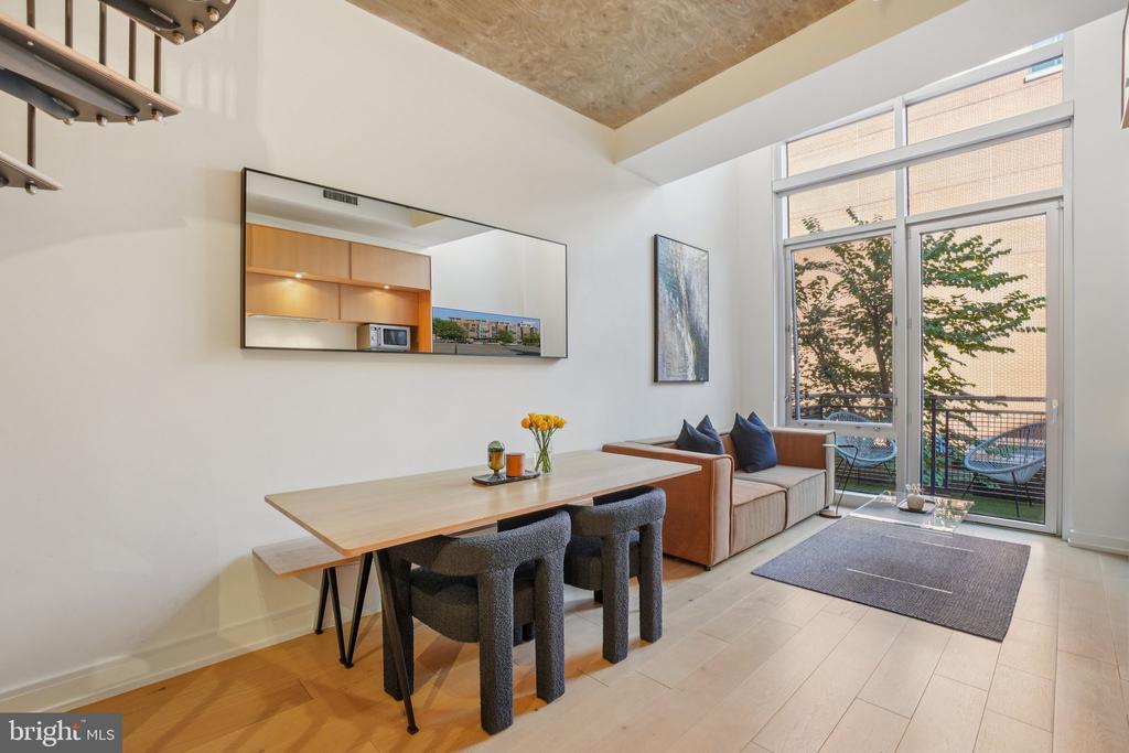 An expression of refined urban living, this two-story loft residence at The Metropole embodies serenity, sophistication, and architectural integrity at the heart of the city. Designed for both beauty and efficiency, the residence harmonizes soaring volume with organic materials and light-filled space. A dramatic eighteen-foot wall of glass anchors the home, inviting natural light to pour in, framing the residence with an ever-changing interplay of light, texture, and cityscape. The main level flows with ultra-wide plank hardwood flooring and a custom kitchen by Cecconi Simone Interior Architects of Toronto, featuring furniture-grade cabinetry, quartz countertops, integrated lighting, and a new Bosch refrigerator. The open layout seamlessly connects living and dining areas, creating an atmosphere both modern and effortlessly inviting. Upstairs, the lofted primary suite offers a private retreat, complete with an Elfa-organized walk-in closet and a spa-inspired bath with an oversized walk-in shower and private water closet. A Bosch washer and dryer complete the suite. Every detail has been curated for balance, comfort, and enduring style for efficiency. This residence includes a full-sized parking space and access to The Metropole’s distinguished amenities: full-time concierge service, secured package reception, dual elevators (including loading dock access), two furnished guest suites, and an outdoor lounge with grilling area. Designed by RTKL Architects and completed in 2008, The Metropole remains a hallmark of contemporary design, where art and architecture converge. The lobby showcases an original installation by Margaret Boozer, complemented by rich wood finishes that echo the building’s modern organic aesthetic. Located steps from Whole Foods Market, VIDA Fitness, Call Your Mother Deli, South Block, Trader Joe’s, and the acclaimed dining and retail of the 14th Street Corridor, this central address affords effortless access to every urban convenience — just minutes to DCA and Union Station. A rare opportunity to experience tranquil sophistication in the very center of the city.