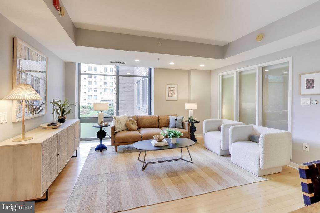 Superb 2 bedroom (1 +den), 2 bathroom at the City Vista! Enjoy the best of DC in this downtown oasis! Chefs kitchen with a custom Elfa pantry system, generous storage and counter space. The open floor plan make entertaining enjoyable and the large windows brighten your home. The primary bedroom has a large bathroom en-suite and custom closet. The second bedroom is large enough for a queen sized bed and a home office and has an Elfa closet systems boasting abundant storage and organizing options. All the windows have "smart" blinds that convey. The building offers a concierge, large rooftop terrace with pool & hot tub, as well as community room & library. Stay warm and dry in winter using the garage entrance to the Safeway. The neighborhood boasts numerous restaurants, shops and bars. Your 4 blocks to Gallery Place, 6 blocks to Judiciary Square and enjoy easy access to 395 and New York Avenue to plan those weekend getaways!