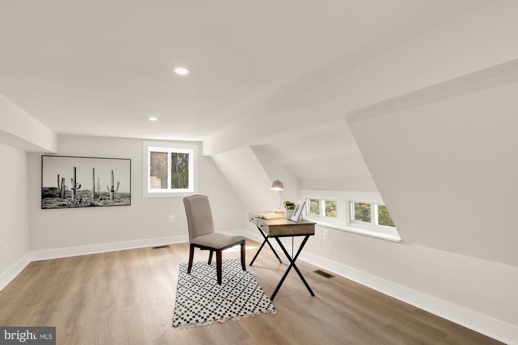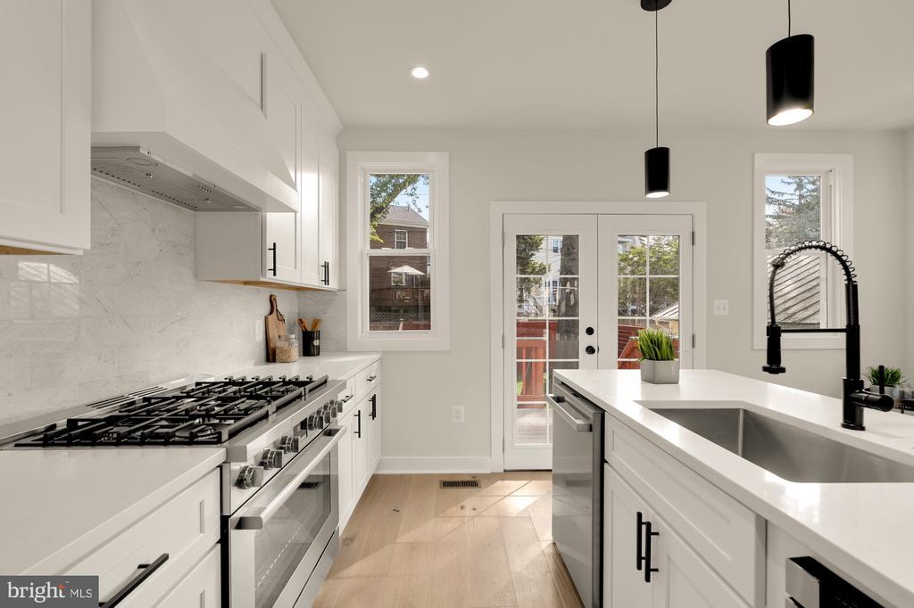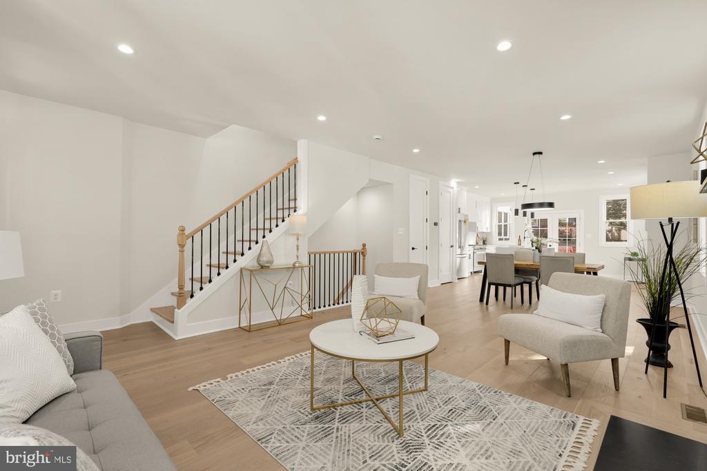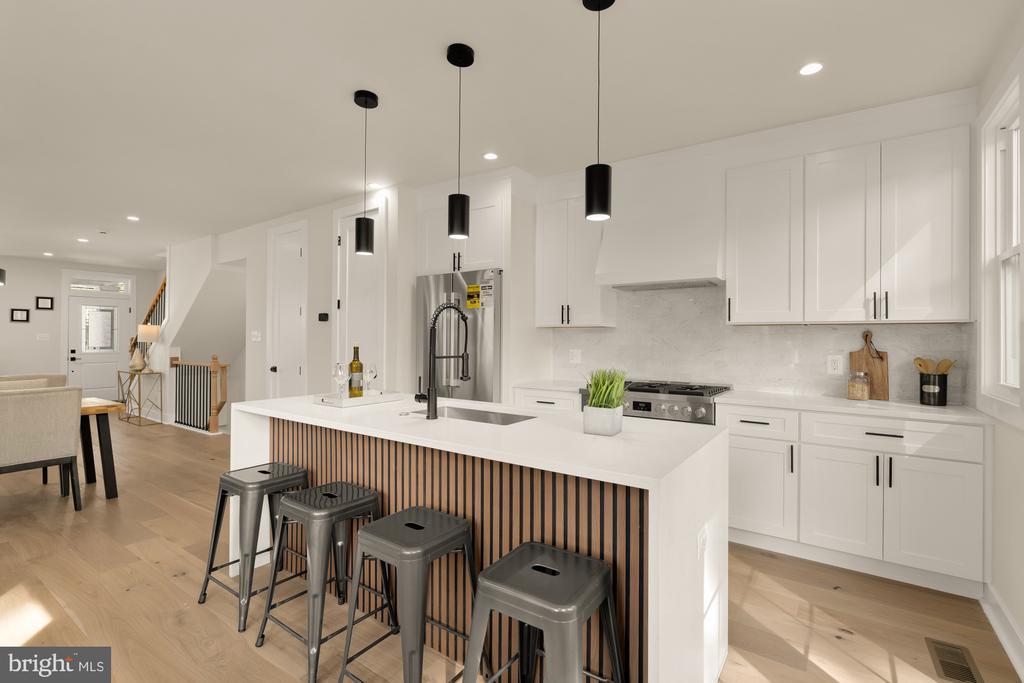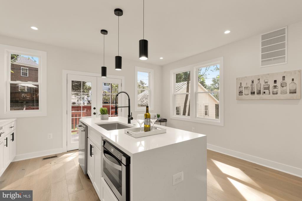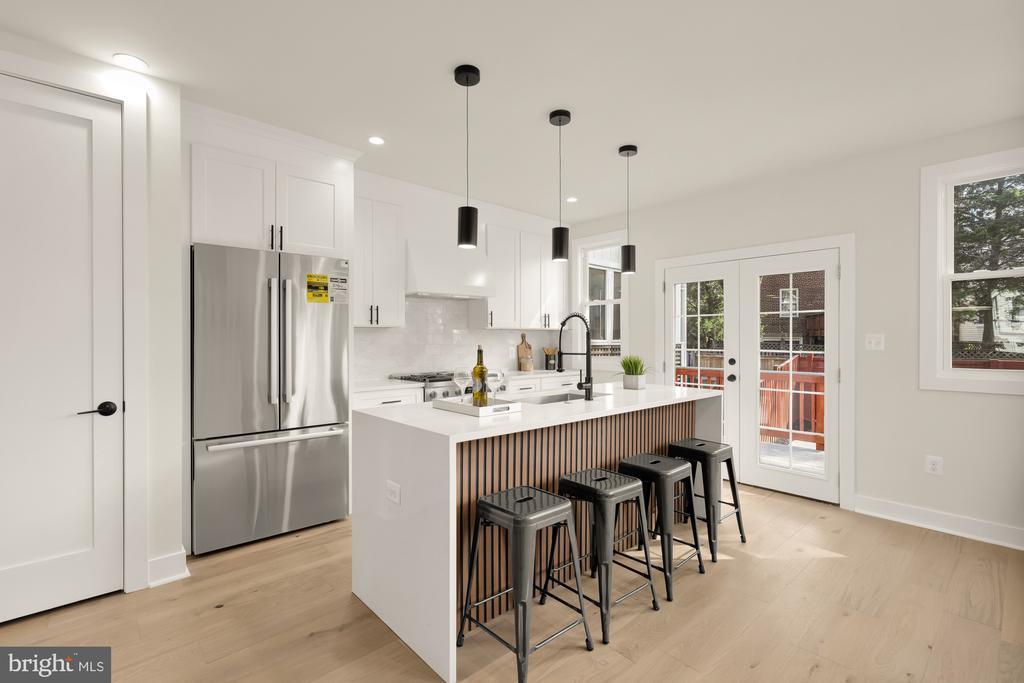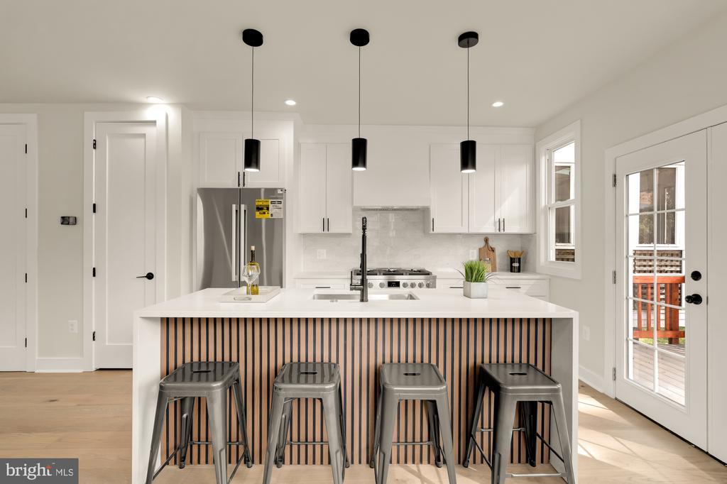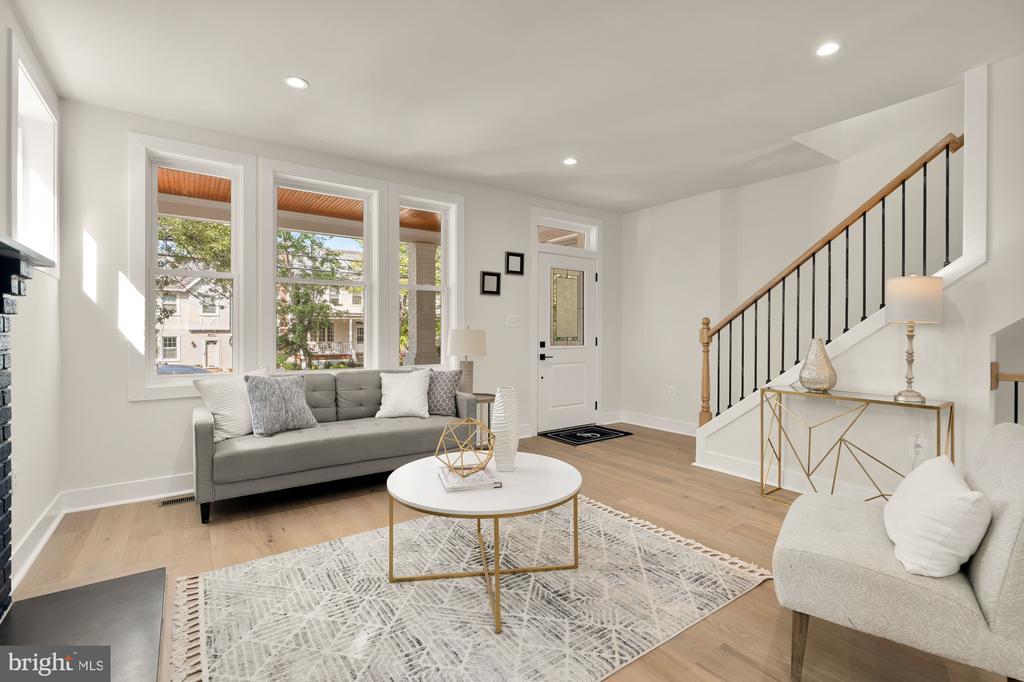 Brand new renovation of a semi-detached home with quality finishes throughout including a quartz kitchen island and countertops, Bosch appliances and engineered hardwood floors. The thoughtfully designed floor plan includes an open main level with windows throughout the front, back and side of the home, illuminating the space. The first floor also includes a wood burning fireplace and a powder room. The front entrance has a large, lovely porch and the back of the home opens to a deck and a private, fenced backyard with parking for 2 cars. The upper floor has 3 bedrooms with 2 full baths including an en-suite bathroom for the primary bedroom. The primary bedroom also includes a bonus second floor with a window, perfect for a home office, storage or flex space. The home also includes a walkout basement with a 4th bedroom, another full bathroom and wine storage. Perfectly situated in Chevy Chase, just steps from cafes, restaurants and shopping, and only a 5-minute walk to the Friendship Heights metro. Square footage is estimated per professional third-party floorplan vendor and should not be used for property valuation.