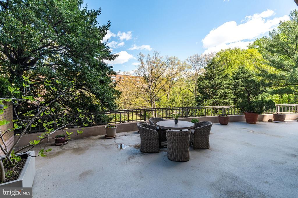 Welcome to the prestigious Foxhall Condominium in Wesley Heights! We are delighted to present to you an impressively elegant 3 BR, 3.5 bath corner unit that features a wrap around terrace, 3 balconies, 2 parking spaces and storage unit!! This duplex unit with hardwood floors, has a total of 2,717 SQ/FT on 2 levels with circular staircase, feels like a comfortable single family home with a large private terrace. The floor plan is perfect for indoor and outdoor entertaining and relaxation. The main level features a gracious marble foyer with circular staircase that leads to multiple living spaces where you can enjoy open views through floor to ceiling windows inviting abundant natural light into every room. Elegant formal living room with a decorative fireplace and built in bookcase opens to the terrace, a lovely family/ TV room with wet bar opens to the terrace and a formal dining room that also opens to the terrace. The kitchen is brand new with white cabinets, Quartz counter tops, stainless appliances, pantry, washer and dryer. The powder room is conveniently located off the foyer. The main level has multiple closets for additional storage. The upper level features 3 bedrooms with 3 full bathrooms and a huge linen closet. A primary suite with a dressing area, walk in closet, all marble bathroom, a spacious bedroom with wall closets open to a balcony. The 2nd and 3rd bedrooms have private balconies and full bathrooms. The Foxhall condominium, is nestled on seven acres of lush and landscaped grounds in the desirable Wesley Heights neighborhood of Washington DC epitomizes luxury living. This pet-friendly residence offers unparalleled convenience with a gatekeeper, front doorman, 24 hour front desk reception, and a dedicated onsite management and maintenance teams. The residents enjoy exceptional amenities including an indoor swimming pool, sauna, a tennis court, a well-equipped gym, and professionally landscaped grounds with serene water features. The monthly fee includes all utilities, internet & cable, ensuring a worry-free living experience. Ideally located with quick access to Georgetown and downtown, residents enjoy effortless access to premier shopping, dining, banks, gourmet coffee shops, and the scenic Glover Archbold hiking trails. Experience unparalleled elegance and comfort in this exceptional Foxhall Condominium unit!