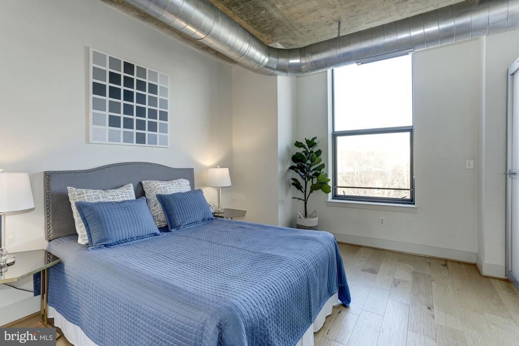 Contemporary top-floor corner unit at Adams Row. Second largest 2-level loft-style condo in the building with 250+ sq ft private terrace and assigned covered parking. Large windows w/Eastern exposure, soaring ceilings ranging from 10 to 18 feet, 3 custom closets, large pantry, custom window treatments, new metal staircase and living room/kitchen flooring. Open floor plan, stainless steel appliances, moveable kitchen island, granite countertops, in-unit washer/dryer, concrete floors on 2nd floor. No common walls. Oversized parking spot with space for storage/shelving. $9000 HVAC update (2019). The pet-friendly No-Smoking building is steps to Harris Teeter, The Line Hotel, Adams Morgan dining, and close to three Metro stops, multiple bus stops, multiple Capital Bikeshare stations, Meridian Hill Park and Rock Creek Park. Walk Score: 98. Building wired for Comcast and Starry Internet. Recent building improvement includes: 3 new state-of-the-art industrial water heaters (2021), new hallway carpet and paint (2023), new Kastle building-wide security system (2025), new roof (2025). Smaller unit #412 sold for $850k in April 2025.