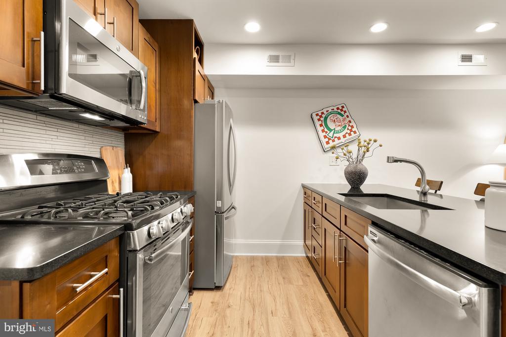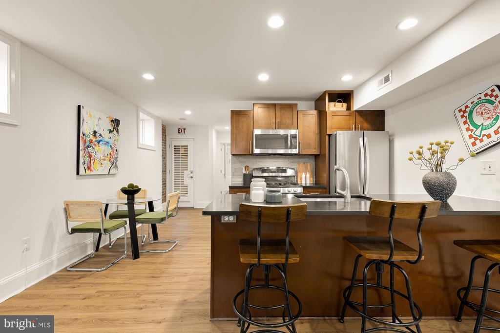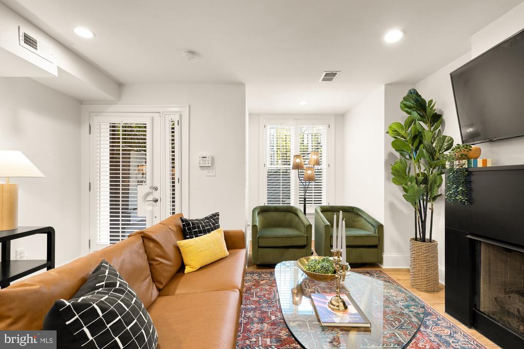Welcome to this stylish 1-bedroom, 1-bathroom condo in the heart of Truxton Circle. This elegant home features dual exposure and abundant natural light throughout, complemented by an open-concept floor plan that combines modern finishes with inviting charm. The spacious living room includes a cozy bay window nook and a charming fireplace, creating the perfect spot to relax or entertain. The open concept kitchen boasts an eat-in island, stainless steel appliances, quartz countertops, a sleek backsplash, and abundant cabinetry for all your storage needs. The large bedroom features a walk-in closet with the in-unit washer and dryer for ultimate convenience. Step directly from the bedroom onto your private patio, ideal for morning coffee or quiet evenings outdoors. All of this comes with unbeatable walkability to the vibrant restaurants and bars of Bloomingdale, Truxton Circle, and Shaw, as well as Union Market, Union Station, multiple Metro stations, and nearby grocery options.