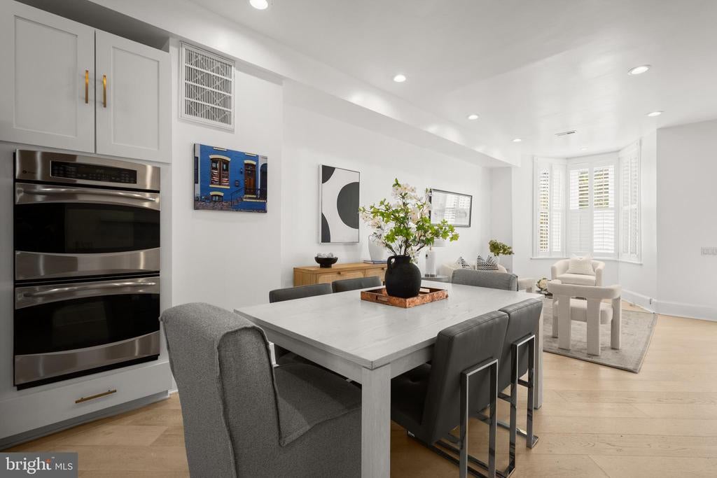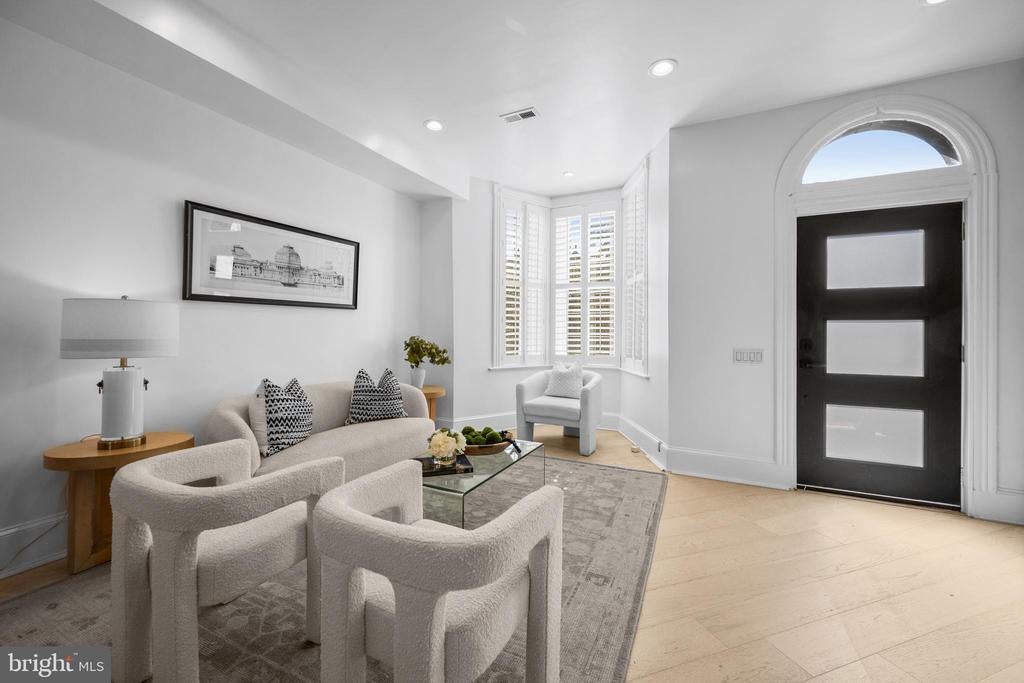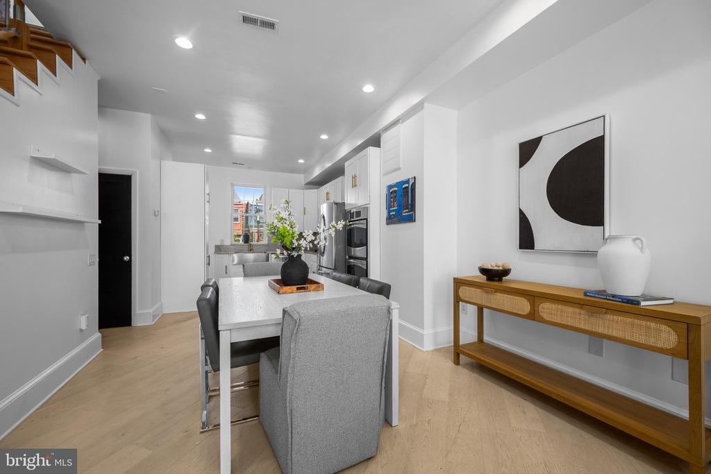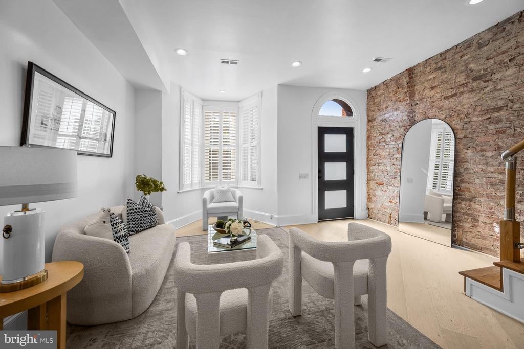 Welcome to this exquisite townhouse in the heart of NW DC! This elegant residence offers 1,892 square feet of thoughtfully designed living space, combining urban sophistication with timeless charm. Step inside to discover gleaming hardwood floors and an open main level that flows seamlessly from the family and dining areas to the rear gourmet kitchen. Accented by an exposed brick wall and modern corded cable railing balusters, the space feels both warm and contemporary. The chefs kitchen features a gas cooktop, stainless steel appliances, marble countertops, and an open layout thats perfect for cooking, entertaining and conversation. Upstairs, youll find two spacious bedrooms and a stunning primary suite with vaulted ceilings, a skylight, and another exposed brick wall. The primary ensuite bathroom offers a spa-like retreat with a glass shower, soaking tub, double sinks, and luxurious marble finishes. The fully finished basement - with both front and rear entrances - adds incredible versatility. With a full bath, its ideal as a guest suite, home office with client access, short-term rental, or your ultimate gym or media space. Out back, enjoy a private fenced outdoor oasis complete with a deck, flagstone patio, lighting, and parking pad for two cars behind an electric garage door. Priced comparably to nearby condos, yet offering more space, privacy, and no condo fees!
