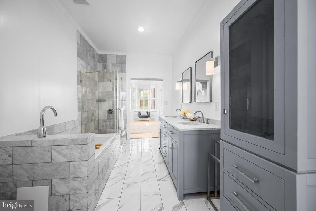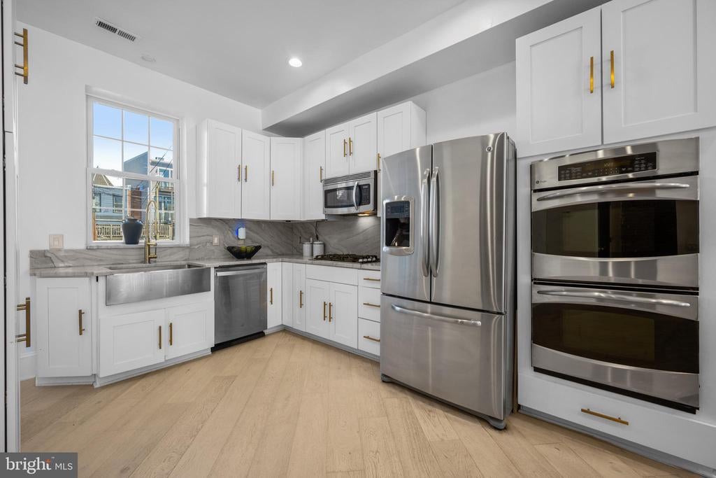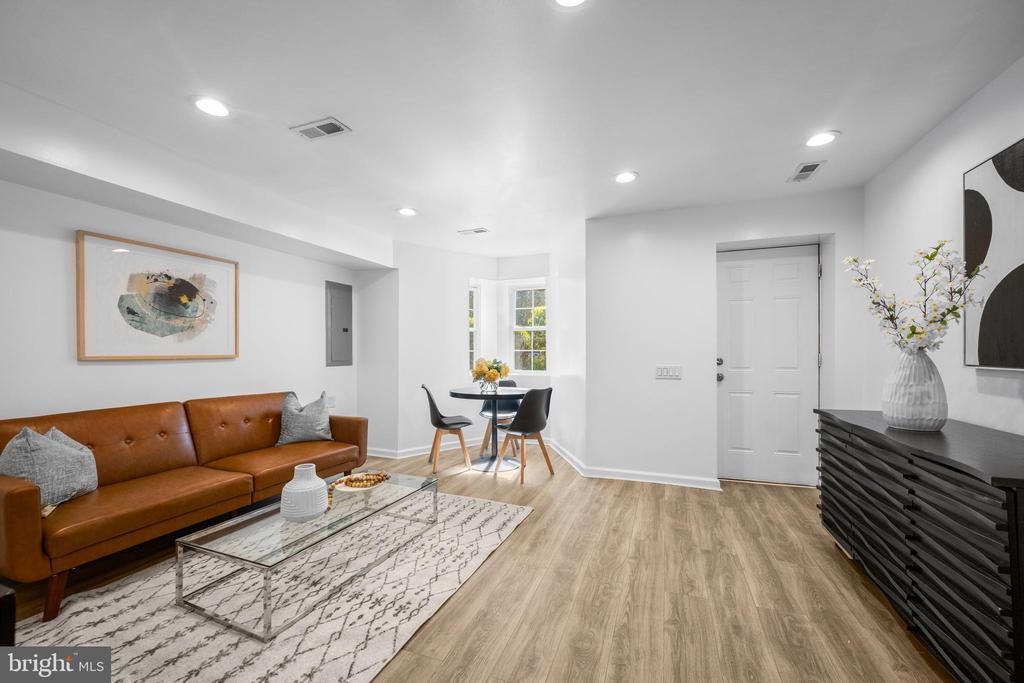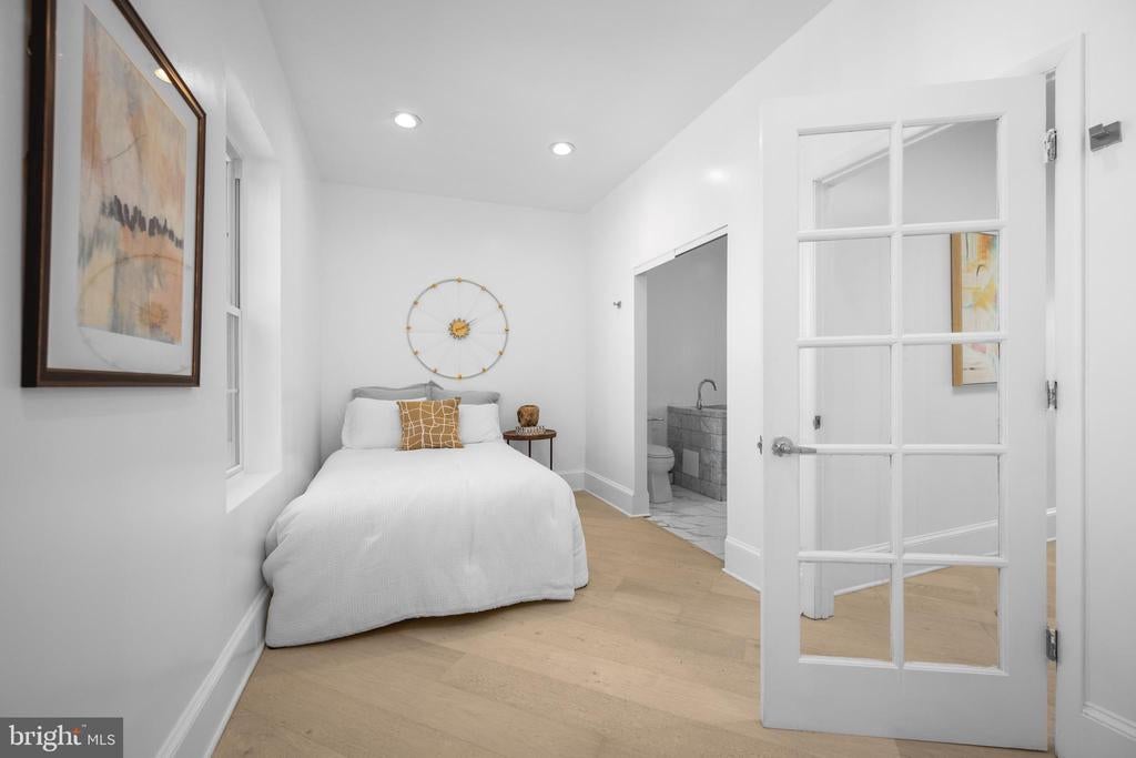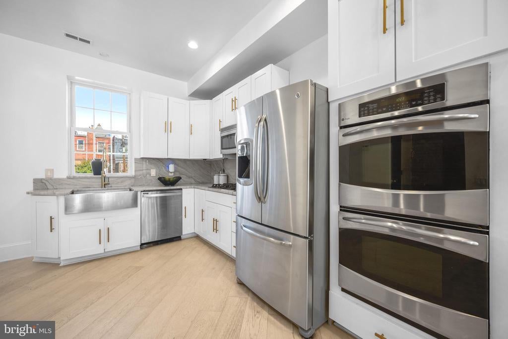 Welcome to this exquisite townhouse in the heart of NW DC! This elegant residence offers 1,892 square feet of thoughtfully designed living space, combining urban sophistication with timeless charm. Step inside to discover gleaming hardwood floors and an open main level that flows seamlessly from the family and dining areas to the rear gourmet kitchen. Accented by an exposed brick wall and modern corded cable railing balusters, the space feels both warm and contemporary. The chefs kitchen features a gas cooktop, stainless steel appliances, marble countertops, and an open layout thats perfect for cooking, entertaining and conversation. Upstairs, youll find two spacious bedrooms and a stunning primary suite with vaulted ceilings, a skylight, and another exposed brick wall. The primary ensuite bathroom offers a spa-like retreat with a glass shower, soaking tub, double sinks, and luxurious marble finishes. The fully finished basement - with both front and rear entrances - adds incredible versatility. With a full bath, its ideal as a guest suite, home office with client access, short-term rental, or your ultimate gym or media space. Out back, enjoy a private fenced outdoor oasis complete with a deck, flagstone patio, lighting, and parking pad for two cars behind an electric garage door. Priced comparably to nearby condos, yet offering more space, privacy, and no condo fees!