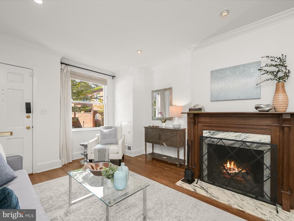 Just listed in Georgetown's west village! Welcome to 3407 Q Street, a charming, sun-drenched 2BR/1BA gem with recent tasteful upgrades, just steps from Volta Park and in move-in condition. The updated kitchen has high quality cabinetry, quartz countertops, stainless steel appliances, and a generously-sized pantry. The bathroom is nicely renovated with Carrara marble and an has an elegant herringbone patterned floor. A new bluestone rear patio has access to an alley for additional egress for the owners and their bikes, dogs or friends as well as easy access for garbage bin storage (no unsightly bins in the front of this block of houses!) A south-facing picture window and cozy wood-burning fireplace complete this fine offering. Walking distance to everything!