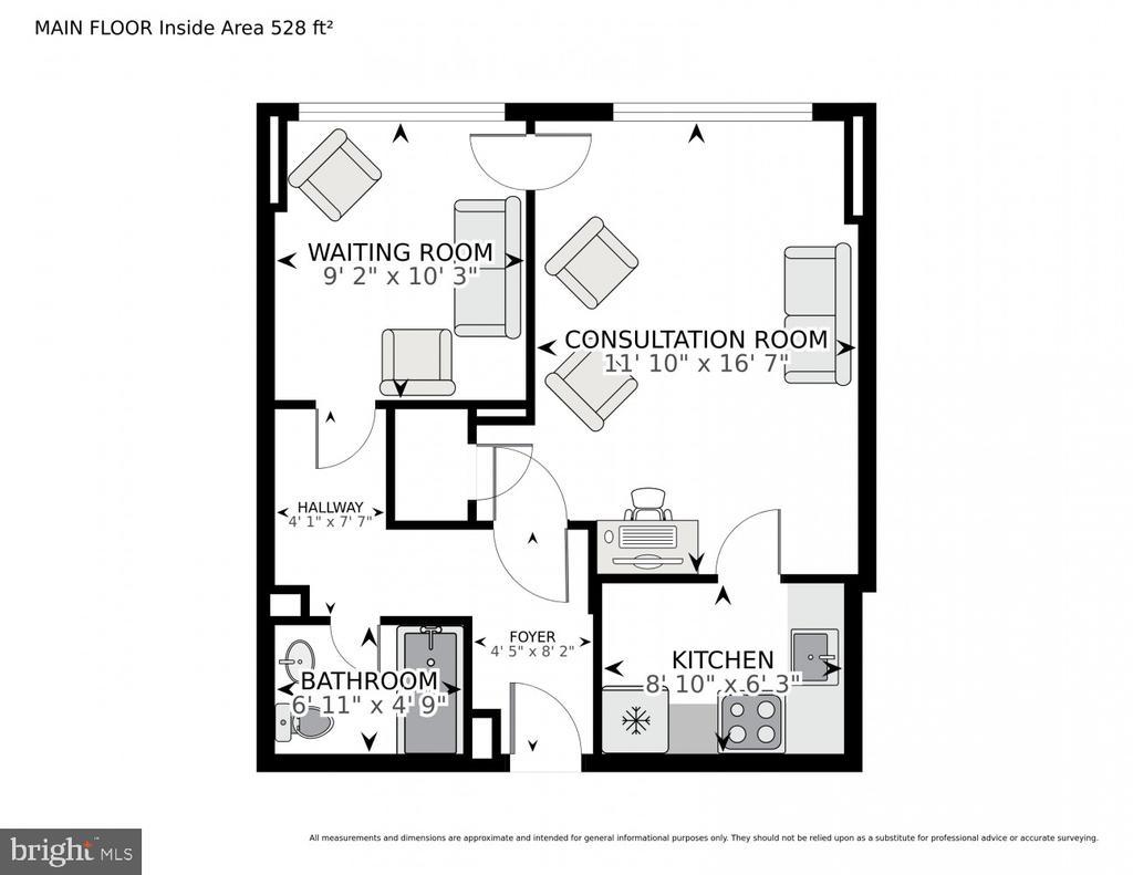 The Garfield is a condo building with doctors offices on the lobby level. This furnished 509 square foot mental health professional's office (not medical) on the lobby level consists of an office, a waiting room, kitchen, and bathroom. The kitchen is original and ready for your personal touch. Soundproofing incudes double doors between the waiting room and office. There is a separately deeded parking space included - a $25,000 value. This unit could be converted to a residence and would just require your imagination. Just a short distance from the Friendship Heights Metro, the vibrant neighborhood boasts amenities like Bloomingdale's, Whole Foods, and a host of dining options. Nearby, you’ll find conveniences such as a Safeway, Starbucks, and a library. The professionally managed condominium offers 24-hour desk service, a multi-purpose room with kitchen and bath, a well-equipped exercise room, and a modern roof deck. Additional features include luggage rooms and bike racks.