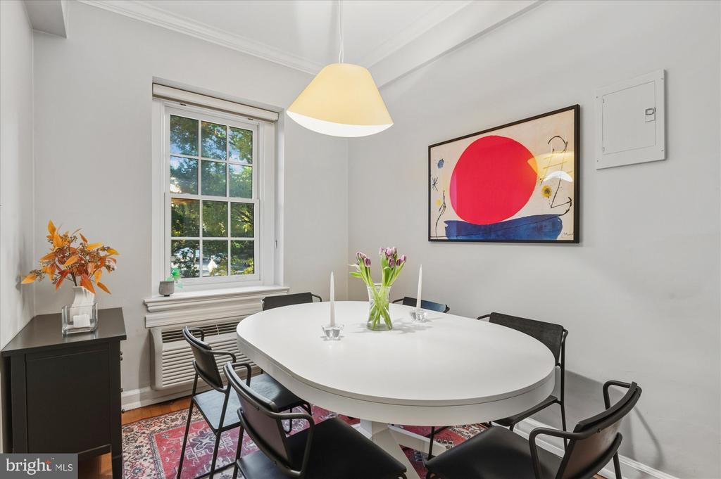 OPEN SATURDAY AND SUNDAY 2-4. Built in 1928, The Parker House is a timeless classic in the heart of Northwest DC, where vintage charm meets modern comfort. Unit 206 is a beautifully refreshed two-bedroom residence that perfectly balances character, light, and livability. Step inside to discover classic, hardwood floors, and sun-filled spaces, including a delightful solarium ideal for a home office, reading nook, or indoor garden, with tree top views adorned with period window boxes. The spacious living room seamlessly connects to a separate dining area, which seats 6, and an updated kitchen featuring quartz countertops, stainless steel appliances, ample cabinetry, under cabinet lighting and a crisp tile backsplash. Both bedrooms offer generous closets, and the full bath has been tastefully renovated, with a lit, walk-in shower. The Parker House provides the convenience of a front desk concierge, on-site management, and a dedicated storage locker. Ideally located just half a mile from the Van Ness Metro, you’ll be moments from local shops, cafes, and restaurants—and within the sought-after boundary for Murch Elementary School. Come experience Unit 206—where classic design and everyday ease come together.