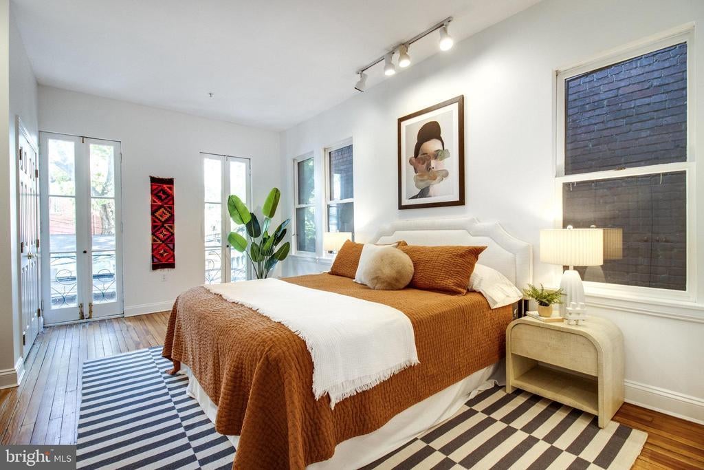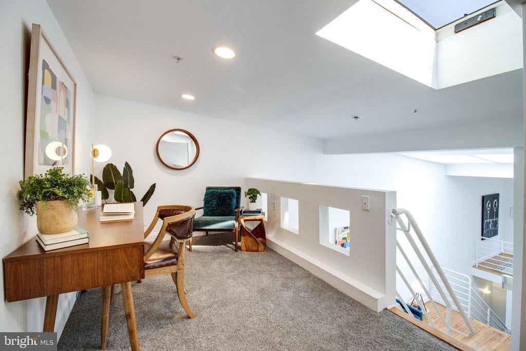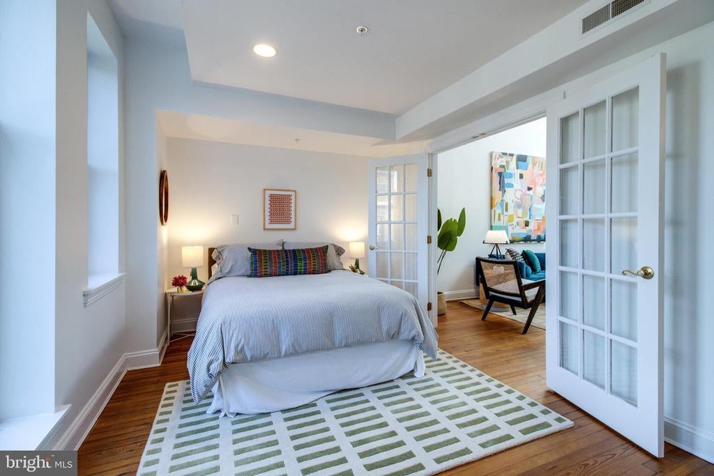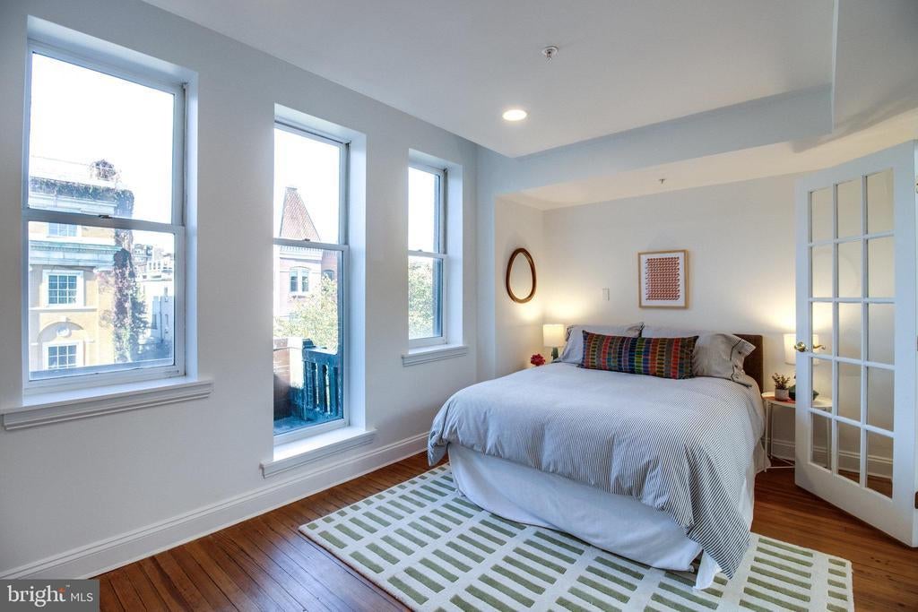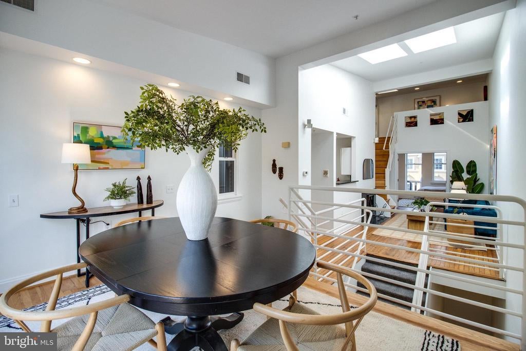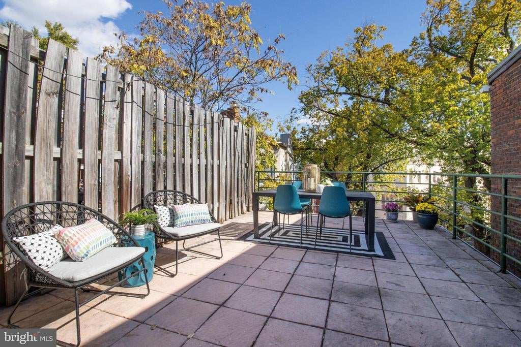 Welcome to Unit A at the boutique Virginian Condominium, a 2-BR+Den and 2-BA unit with vast living spaces and the MOST AMAZING roof deck we've seen in a prime Dupont location. Upon entry, up a private stairwell you'll find the Primary Suite with big Juliet balcony and windows providing great views of the pleasant cityscape outside. Warm original hardwood floors and tall ceilings amplify the size of this owner's escape flanked by a perfect ensuite bathroom and sizable closets. Head up a few steps to the common living space with soaring ceilings and well-defined living and dining rooms. The living room with a cozy fireplace serves as an incredible hosting space as it is open and accessible to the kitchen and dining area. A few more steps up and you're in the large dining room with French doors that open to a truly impressive roof deck with plenty of space for dining AND lounging areas. A second bedroom with ensuite bathroom lies at the front of the home providing green city views of the beautiful block below. The excitement continues with a truly special office/den which overlooks the main floor-a perfect spot for working-from-home or a sweet reading area. Built in 1908, The Virginian is a beautifully historic boutique pet-friendly building with low fees, perfectly located in the very best blocks of Dupont. Walk to coffee, dinner and the Red Line Metro just three blocks away. This special unit was lovingly cared for by the same owner for over 25 years, and is ready to delight its next lucky occupants. Come visit today! Rentals are allowed, if needed. LOW FEE includes gas, water and more! **Square footage is approximate and should not be used for valuation.