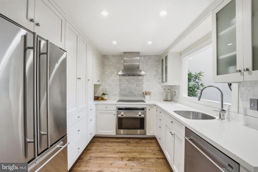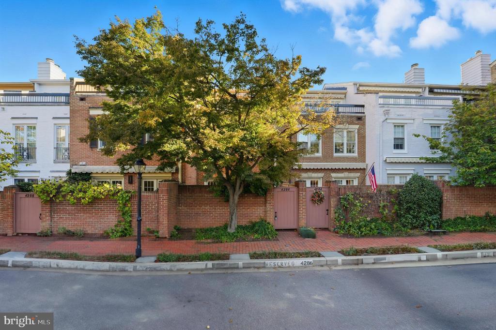 Welcome to 4286 Massachusetts Ave NW, a bright and spacious 3-bedroom townhome located in the prestigious, gated Westover Place community. Elevated above Massachusetts Avenue, this residence is introduced by a lushly landscaped walkway and a private entrance. Inside, the main level features a generous living room anchored by a wood-burning fireplace, a built-in wet bar for entertaining, and direct access to a private fenced patio that opens to a dedicated parking space. The entry foyer includes a coat closet and additional storage. The lower main level impresses with a dramatic two-story dining room bathed in natural light, a renovated kitchen outfitted with white cabinetry, stainless steel appliances, and a breakfast bar, plus open shelving for display. This level also hosts a versatile multi-purpose room ideal for a home gym, office, or play area, along with a powder room, laundry room, and abundant storage space. Upstairs, the private primary suite occupies its own level and includes an updated bath, ample closet space, and a serene private balcony. Two additional sunlit and oversized bedrooms share an updated Jack-and-Jill bathroom, and a convenient linen closet completes the level. Throughout the home, hardwood floors, central heat and AC, and thoughtful design enhance comfort and style. The home includes a dedicated parking space and ample guest parking. Ideally located, residents enjoy nearby Metro bus access (N2, N4, N6), car and bike sharing, and walkable access to popular local spots like Starbucks, Wagshals, Al Dente, Shemalis, and Chef Geoff’s. A five-minute drive brings you to Wegmans, Giant, and Whole Foods. Outdoor enthusiasts will love the easy access to Glover Archbold and Rock Creek Parks, while American University is just two blocks away.