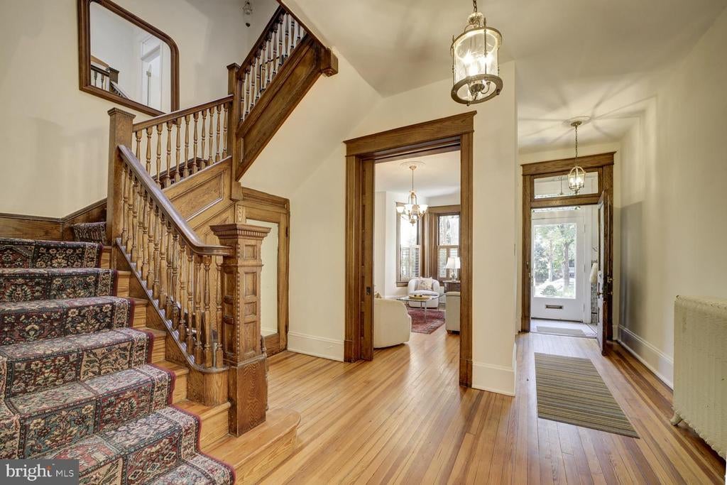 Capitol Hill "Grande Dame" in prime location! Original Chestnut and Oak woodwork, pocket doors and hardwood floors throughout top 3 levels. Lofty 11 foot ceilings. Glorious center hall staircase with 6x6 skylight. Southern exposure = LOTS of light through the professionally restored historic windows. Main level flexible semi open floorplan provides great flow without sacrificing precious historic details. Dining area with built in banquettes. Eat in kitchen with ample storage. Large primary bedroom, separate study/home office and gigantic spa like bathroom with double sinks, large open shower, and separate bathtub comprise the 2nd level. On top floor find 3 bedrooms and a full bath with skylight and walk in shower. Bathrooms updated within past several years, Kitchen updated 2004. The English basement level features a large laundry/storage area plus separately metered 1 BR au pair/inlaw suite (kitchen reno 2019), accessible via front and back entrances AND an interior stair. Enjoy the deep front yard and recently renovated (2021) back patio with extra storage for bikes and other outdoor gear. Lots of improvements over the years including but not limited to: New roof and SOLAR PANELS (2019), fully repointed front and back exterior (2015), all original historic windows professionally restored (2015), and much more. Stellar Capitol Hill Historic District location halfway between Stanton and Lincoln Parks. Less than 1/2 mile to Eastern Market, .8 mile to Union Station. Make this truly spectacular property your next home! Seller is a licensed real estate agent.