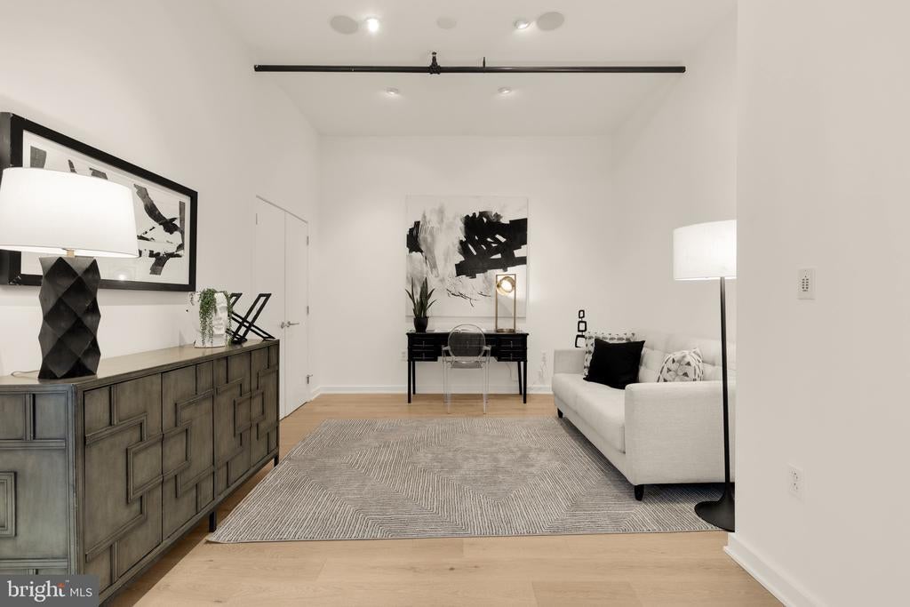 Perfectly positioned along sought-after Church Street, this rare offering at Lofts 14 is the largest available one-level condo in Logan Circle. Spanning 1,800 square feet, this contemporary three-bedroom, two-and-a-half-bath home pairs expansive open living with modern loft-inspired design. The open-concept living and dining area features soaring ceilings, wide-plank hardwood floors, and floor-to-ceiling windows overlooking the vibrant Church Street corridor. The sleek, modern kitchen is anchored by an oversized island, premium stainless-steel appliances, and ample cabinetry—ideal for both entertaining and everyday living. The defining element of this home is its private terrace, stretching the full length of the residence to create effortless indoor-outdoor flow. A flexible den or third bedroom sits just off the main entry, while both full bedrooms include en-suite baths and generous closet storage. The primary suite enjoys direct access to the terrace, offering a private retreat in the heart of the city. Additional conveniences include a powder room for guests, a spacious laundry room with side-by-side washer and dryer, and one assigned garage parking space. Set within one of Logan Circle’s most iconic buildings and just steps from 14th Street’s acclaimed restaurants, cafés, and boutiques, Residence 523 at Lofts 14 delivers an exceptional combination of scale, style, and location—truly a rare opportunity in one of DC’s most vibrant neighborhoods.