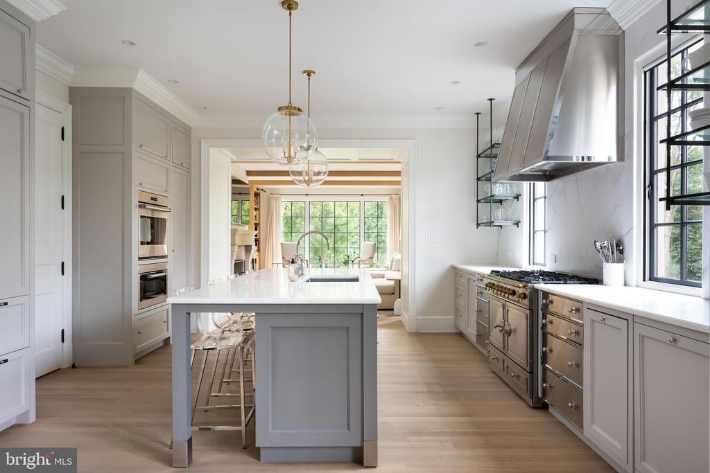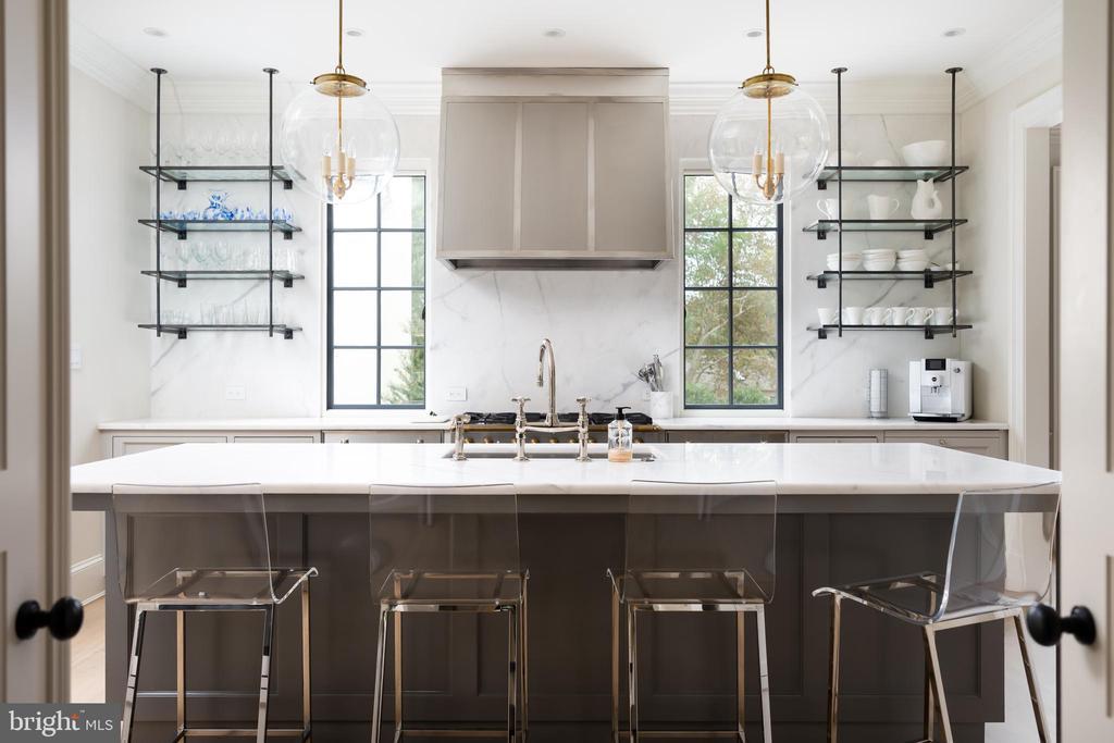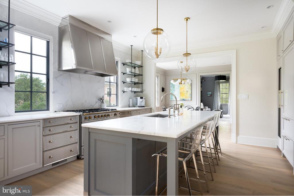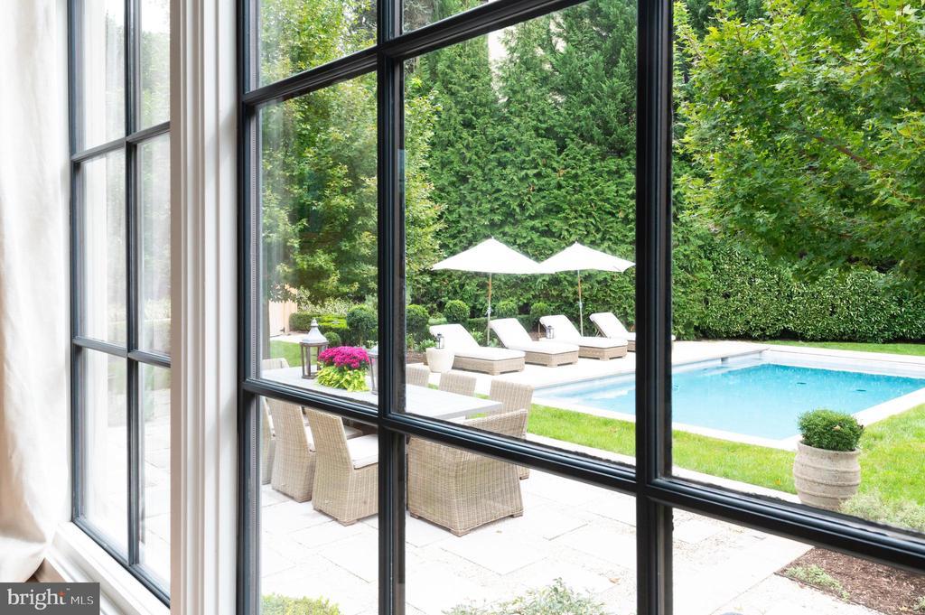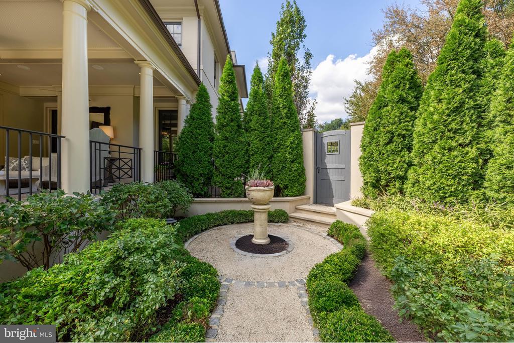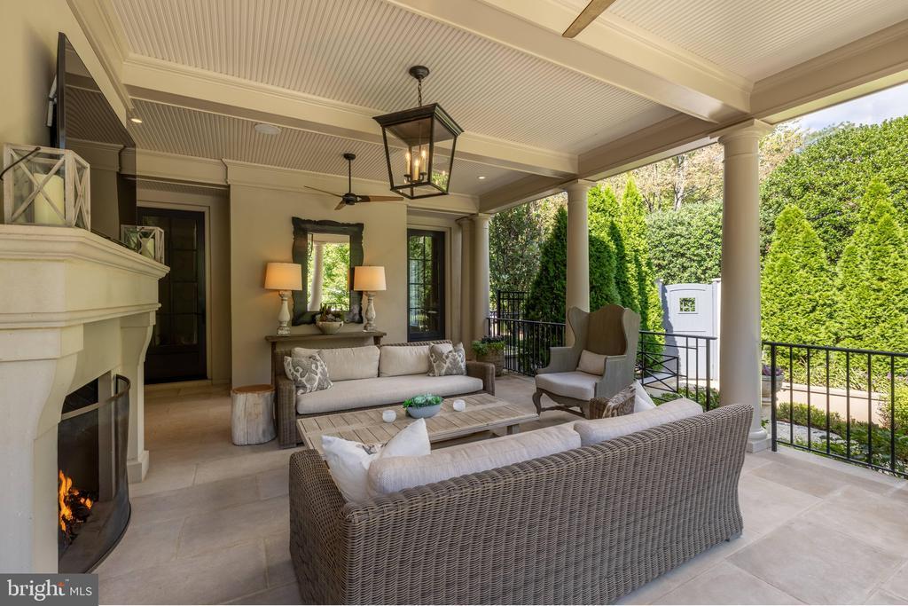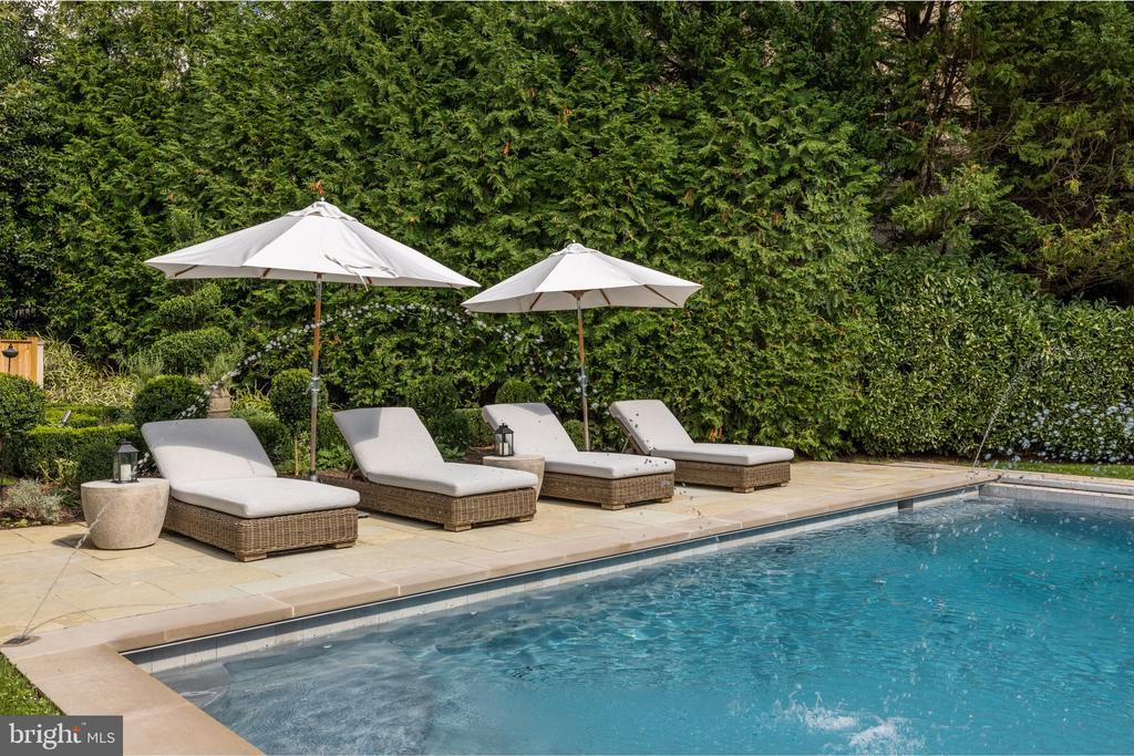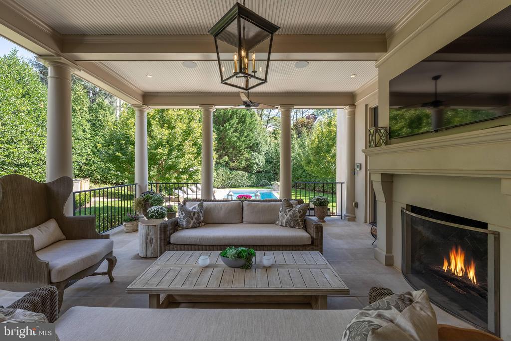 Nestled deep within a private enclave of distinguished residences just off Foxhall Road is 4849 Kemble Place, a custom Neo-Classic style residence designed by the award-winning architect, Anne Decker and beautifully constructed by Potomac Valley Builders. Situated on a stunning 0.37-acre lot within a private peninsula, the property transports you to another place and time. This stunning home is approached by a broad set of limestone steps that lead to a charming columned portico and oversized front door that functions as a beautiful design element. Inside, the foyer has open sightlines to the public rooms. The grand staircase showcases white oak risers matching that of the elegant herringbone floors, beautifully contrasted with a dark gloss handrail. Formal living and dining rooms flank the reception area in a classic center hall configuration. The former, with a large bay window set against a wooded backdrop, is connected to the dignified library via French doors. The latter opens onto a spectacular loggia set amidst whimsical surroundings, blurring the lines between indoor and outdoor living. Anchoring the main level’s informal wing is the chef’s kitchen. Evoking a sophisticated European ethos, accent pieces include a custom stainless steel hood flanked by open glass shelving, all set against a large slab Carrara marble backsplash. A La Cornue range, inset custom cabinetry, Miele dishwasher, Waterworks fixtures, paneled wine and refrigerator columns, and a hidden pantry complete the space, which is truly a functional work of art. An adjacent, light-filled breakfast area offers an additional casual dining area. The family room's fresh-take on rustic built-ins and ceiling beams complement its roaring limestone fireplace to create a sensation of warmth. The windowed wall at the end of the family room paints a stunning picture of the pool terrace beyond. The grand staircase is illuminated by a pair of gridded skylights overhead, flooding the central well with natural light. The sumptuous primary bedroom features a dedicated sitting area, ceiling-mounted retractable television, and tastefully integrated cove lighting. The marble-clad ensuite bath comprises intricate mosaic flooring, double vanities, a freestanding tub with views, and a separate walk-in glass shower. Secondary bedrooms are each generously proportioned, painstakingly detailed, and luxuriously served by intricately tiled baths. Designed for the entertainer, the lower level comprises a large recreation room. A private bedroom suite with direct walkout access, an ample laundry room, as well as a mudroom area accessing the attached two-car garage complete the level. Perhaps the true highlight of this home is its outdoor spaces. A blend of manicured landscaping and extensive hardscaping has resulted in a space shrouded in total privacy by a verdant canopy. The side entry gate leads directly into an English garden running parallel to the loggia, which steps down to a central al fresco dining patio with a grilling area. The pool, nestled beneath a shimmering arch of water jets, is equipped with an automatic cover and lounging area. An additional side yard is stepped down, featuring a full turfed sports court. Exquisitely finished both inside and out, convenient to Georgetown, Downtown, and major commuter routes, 4849 Kemble Place is an exemplary residence in one of DC’s most sought-after locations.