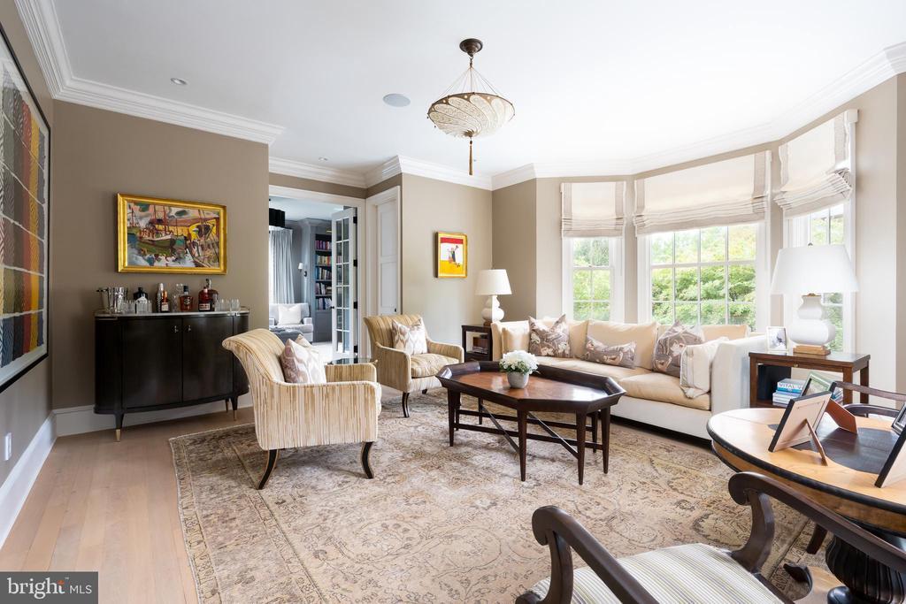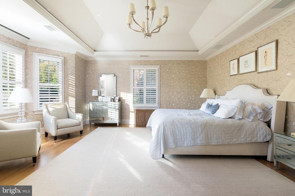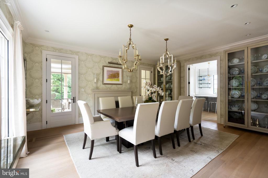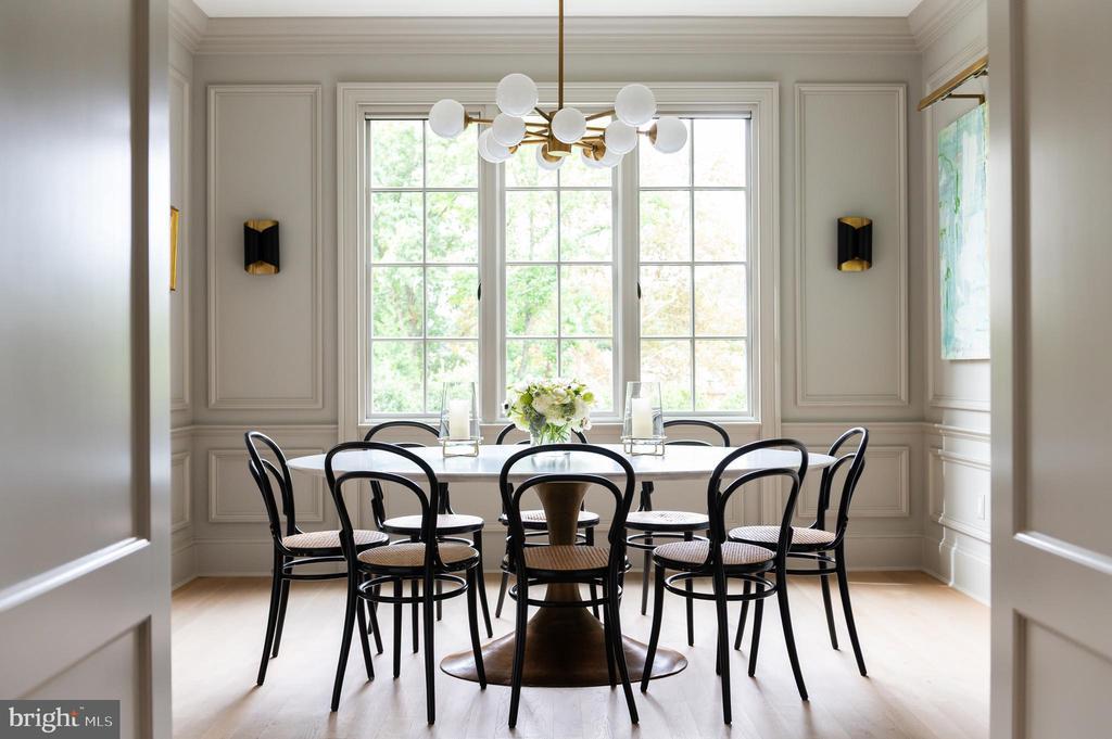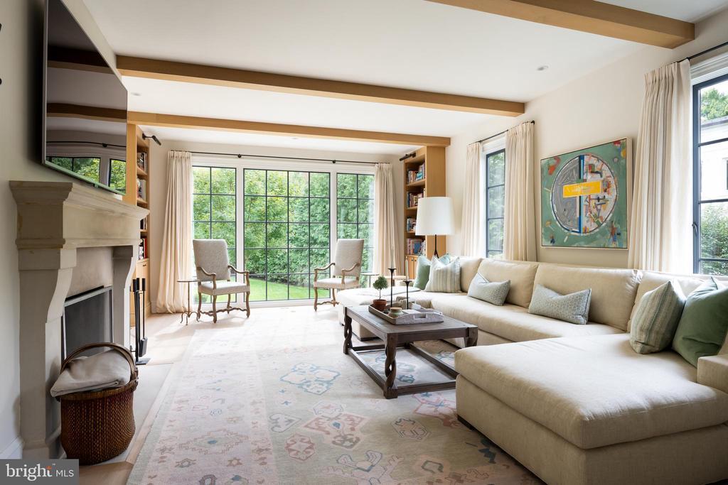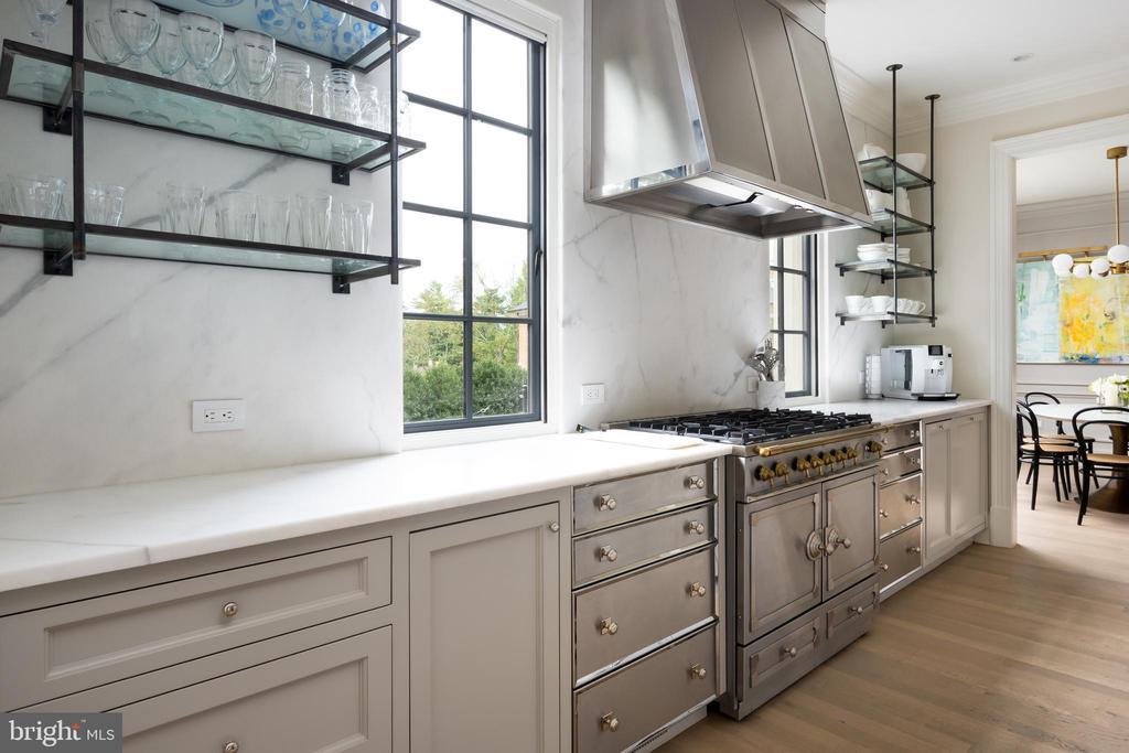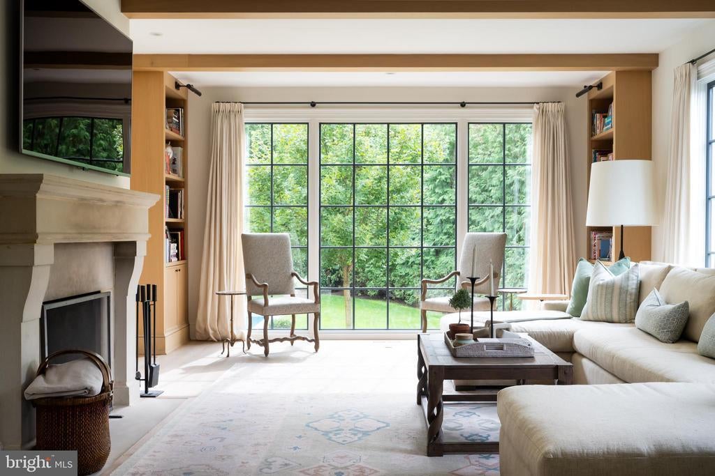 Nestled deep within a private enclave of distinguished residences just off Foxhall Road is 4849 Kemble Place, a custom Neo-Classic style residence designed by the award-winning architect, Anne Decker and beautifully constructed by Potomac Valley Builders. Situated on a stunning 0.37-acre lot within a private peninsula, the property transports you to another place and time. This stunning home is approached by a broad set of limestone steps that lead to a charming columned portico and oversized front door that functions as a beautiful design element. Inside, the foyer has open sightlines to the public rooms. The grand staircase showcases white oak risers matching that of the elegant herringbone floors, beautifully contrasted with a dark gloss handrail. Formal living and dining rooms flank the reception area in a classic center hall configuration. The former, with a large bay window set against a wooded backdrop, is connected to the dignified library via French doors. The latter opens onto a spectacular loggia set amidst whimsical surroundings, blurring the lines between indoor and outdoor living. Anchoring the main level’s informal wing is the chef’s kitchen. Evoking a sophisticated European ethos, accent pieces include a custom stainless steel hood flanked by open glass shelving, all set against a large slab Carrara marble backsplash. A La Cornue range, inset custom cabinetry, Miele dishwasher, Waterworks fixtures, paneled wine and refrigerator columns, and a hidden pantry complete the space, which is truly a functional work of art. An adjacent, light-filled breakfast area offers an additional casual dining area. The family room's fresh-take on rustic built-ins and ceiling beams complement its roaring limestone fireplace to create a sensation of warmth. The windowed wall at the end of the family room paints a stunning picture of the pool terrace beyond. The grand staircase is illuminated by a pair of gridded skylights overhead, flooding the central well with natural light. The sumptuous primary bedroom features a dedicated sitting area, ceiling-mounted retractable television, and tastefully integrated cove lighting. The marble-clad ensuite bath comprises intricate mosaic flooring, double vanities, a freestanding tub with views, and a separate walk-in glass shower. Secondary bedrooms are each generously proportioned, painstakingly detailed, and luxuriously served by intricately tiled baths. Designed for the entertainer, the lower level comprises a large recreation room. A private bedroom suite with direct walkout access, an ample laundry room, as well as a mudroom area accessing the attached two-car garage complete the level. Perhaps the true highlight of this home is its outdoor spaces. A blend of manicured landscaping and extensive hardscaping has resulted in a space shrouded in total privacy by a verdant canopy. The side entry gate leads directly into an English garden running parallel to the loggia, which steps down to a central al fresco dining patio with a grilling area. The pool, nestled beneath a shimmering arch of water jets, is equipped with an automatic cover and lounging area. An additional side yard is stepped down, featuring a full turfed sports court. Exquisitely finished both inside and out, convenient to Georgetown, Downtown, and major commuter routes, 4849 Kemble Place is an exemplary residence in one of DC’s most sought-after locations.