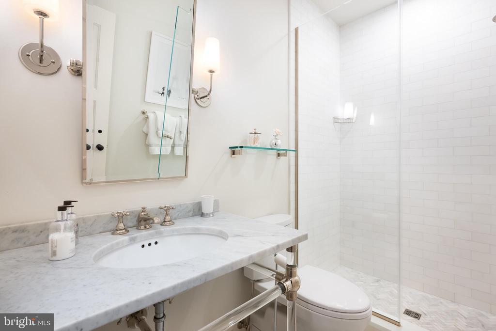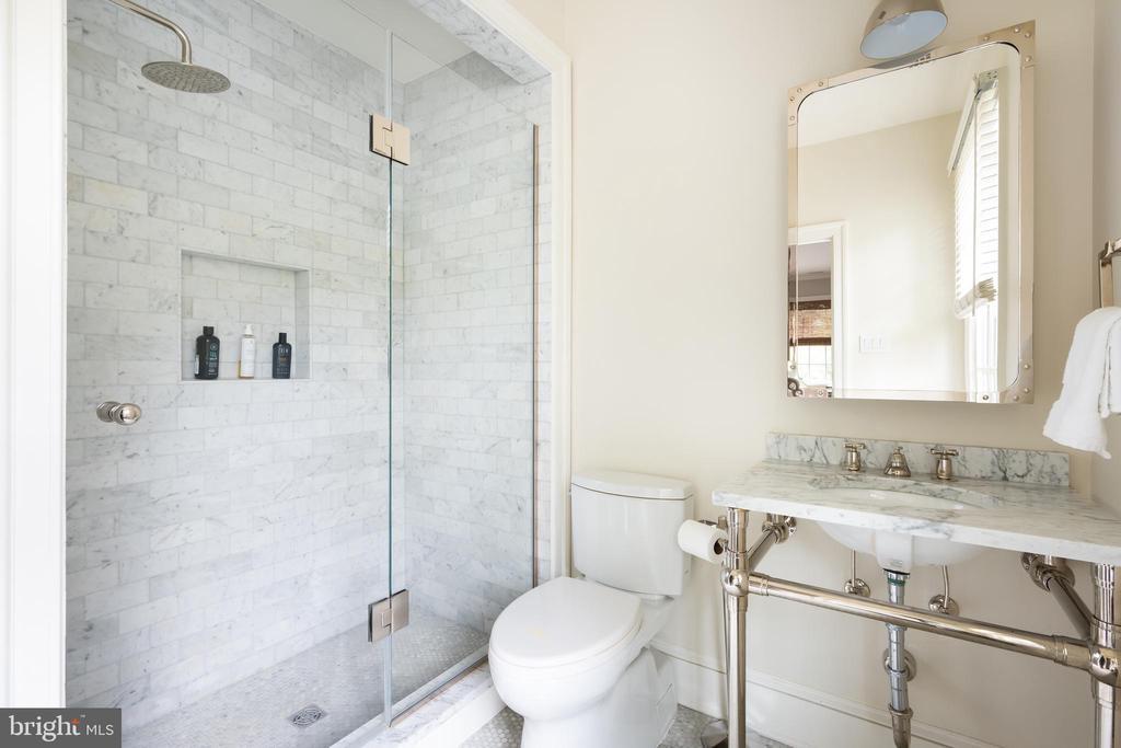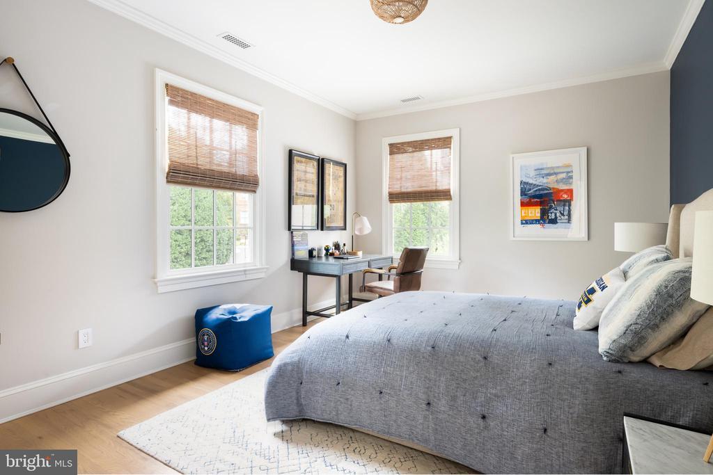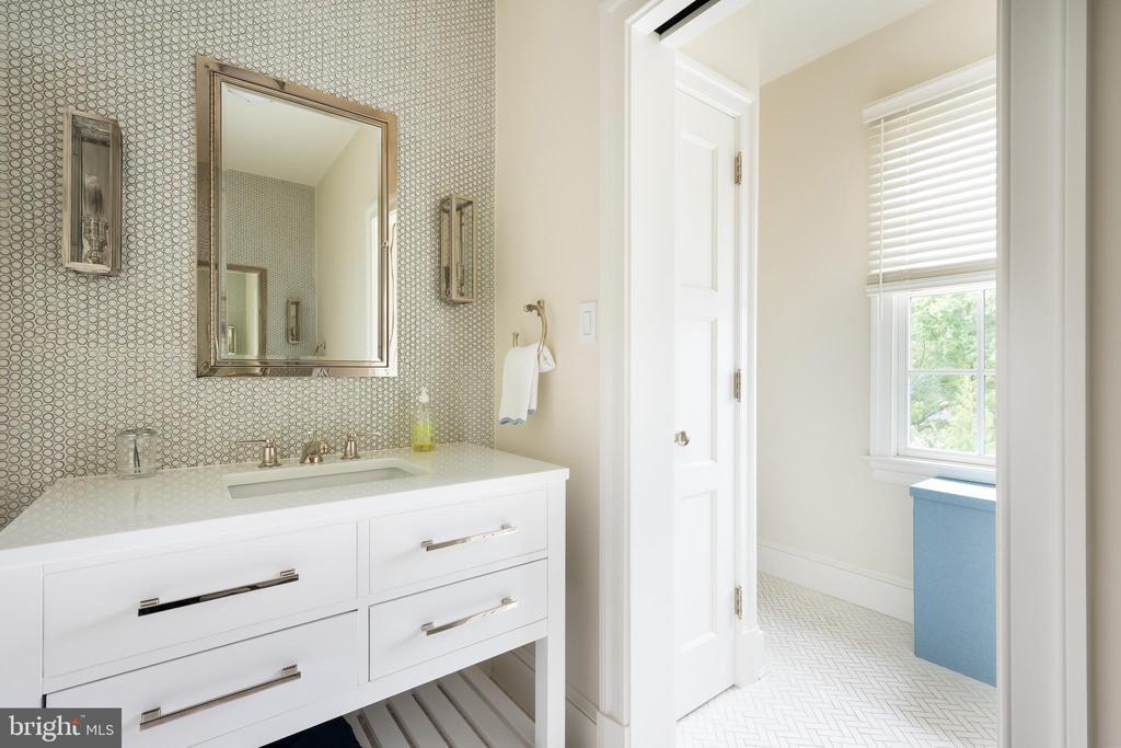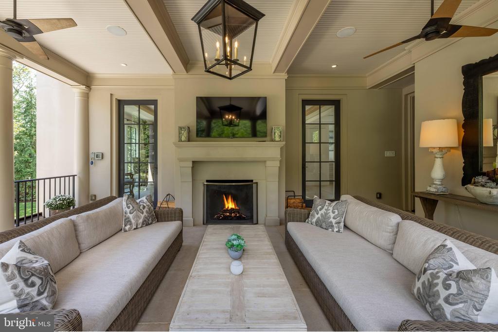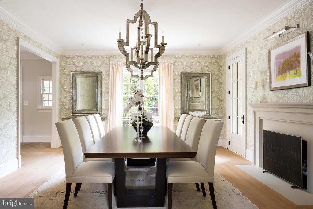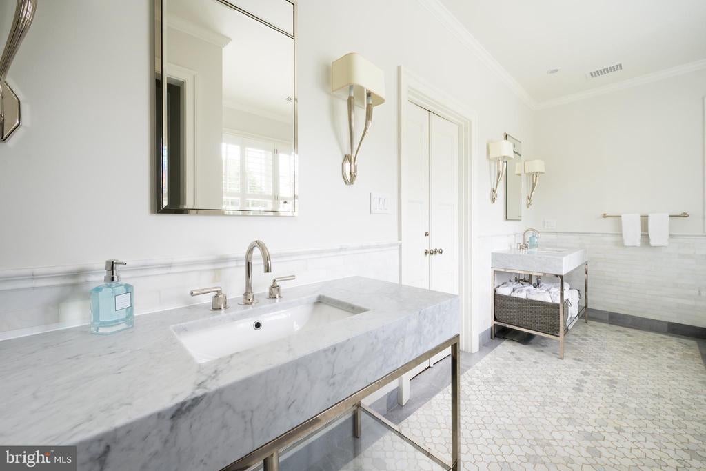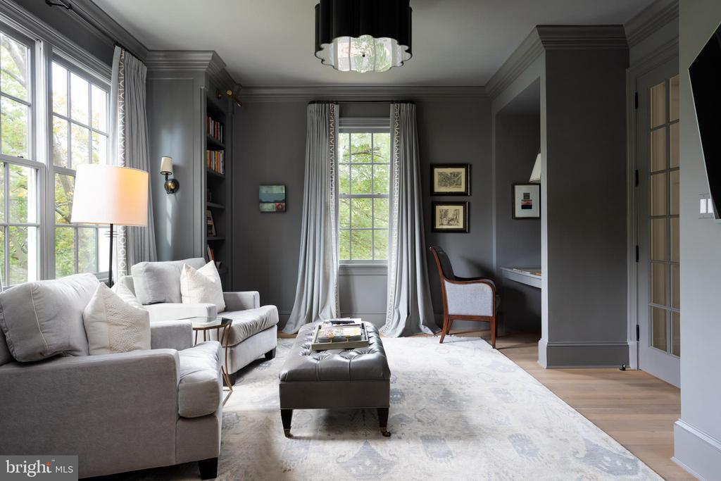 Nestled deep within a private enclave of distinguished residences just off Foxhall Road is 4849 Kemble Place, a custom Neo-Classic style residence designed by the award-winning architect, Anne Decker and beautifully constructed by Potomac Valley Builders. Situated on a stunning 0.37-acre lot within a private peninsula, the property transports you to another place and time. This stunning home is approached by a broad set of limestone steps that lead to a charming columned portico and oversized front door that functions as a beautiful design element. Inside, the foyer has open sightlines to the public rooms. The grand staircase showcases white oak risers matching that of the elegant herringbone floors, beautifully contrasted with a dark gloss handrail. Formal living and dining rooms flank the reception area in a classic center hall configuration. The former, with a large bay window set against a wooded backdrop, is connected to the dignified library via French doors. The latter opens onto a spectacular loggia set amidst whimsical surroundings, blurring the lines between indoor and outdoor living. Anchoring the main level’s informal wing is the chef’s kitchen. Evoking a sophisticated European ethos, accent pieces include a custom stainless steel hood flanked by open glass shelving, all set against a large slab Carrara marble backsplash. A La Cornue range, inset custom cabinetry, Miele dishwasher, Waterworks fixtures, paneled wine and refrigerator columns, and a hidden pantry complete the space, which is truly a functional work of art. An adjacent, light-filled breakfast area offers an additional casual dining area. The family room's fresh-take on rustic built-ins and ceiling beams complement its roaring limestone fireplace to create a sensation of warmth. The windowed wall at the end of the family room paints a stunning picture of the pool terrace beyond. The grand staircase is illuminated by a pair of gridded skylights overhead, flooding the central well with natural light. The sumptuous primary bedroom features a dedicated sitting area, ceiling-mounted retractable television, and tastefully integrated cove lighting. The marble-clad ensuite bath comprises intricate mosaic flooring, double vanities, a freestanding tub with views, and a separate walk-in glass shower. Secondary bedrooms are each generously proportioned, painstakingly detailed, and luxuriously served by intricately tiled baths. Designed for the entertainer, the lower level comprises a large recreation room. A private bedroom suite with direct walkout access, an ample laundry room, as well as a mudroom area accessing the attached two-car garage complete the level. Perhaps the true highlight of this home is its outdoor spaces. A blend of manicured landscaping and extensive hardscaping has resulted in a space shrouded in total privacy by a verdant canopy. The side entry gate leads directly into an English garden running parallel to the loggia, which steps down to a central al fresco dining patio with a grilling area. The pool, nestled beneath a shimmering arch of water jets, is equipped with an automatic cover and lounging area. An additional side yard is stepped down, featuring a full turfed sports court. Exquisitely finished both inside and out, convenient to Georgetown, Downtown, and major commuter routes, 4849 Kemble Place is an exemplary residence in one of DC’s most sought-after locations.