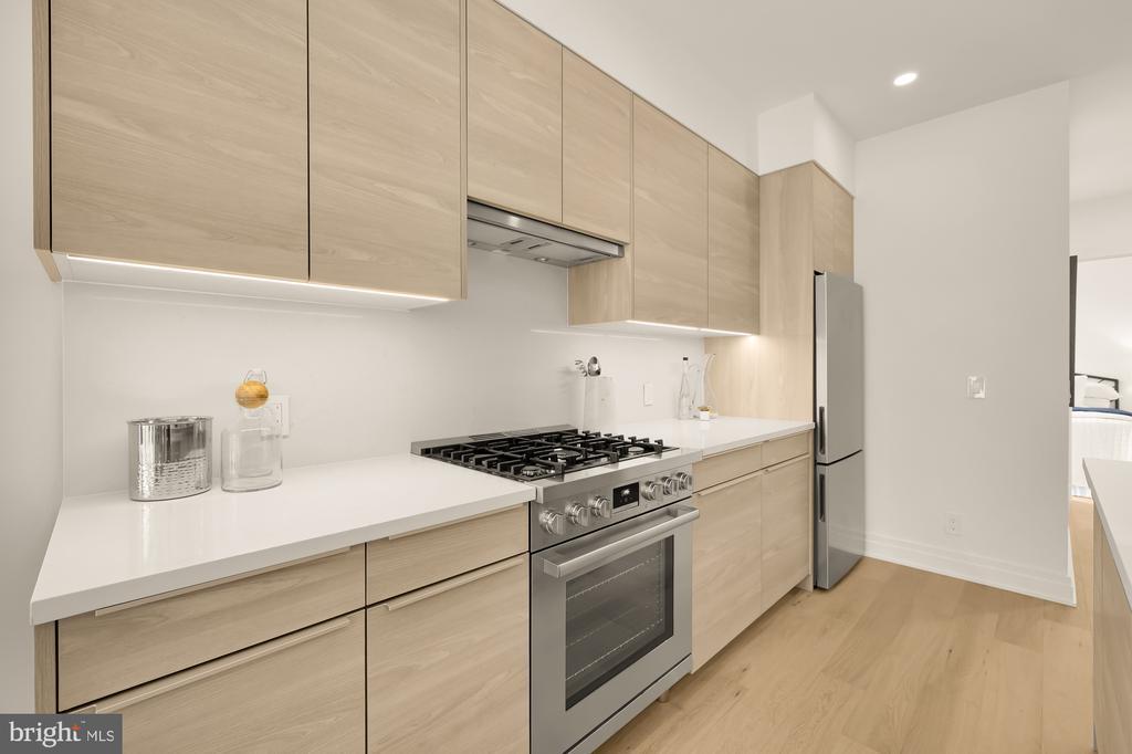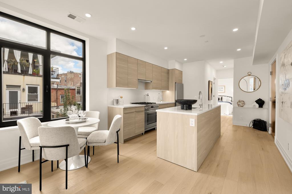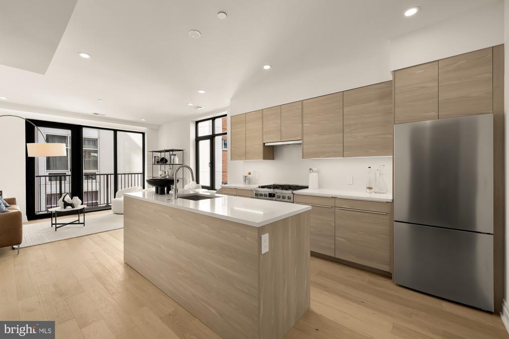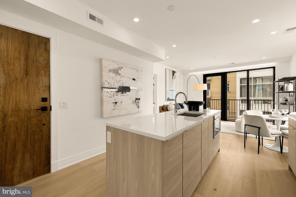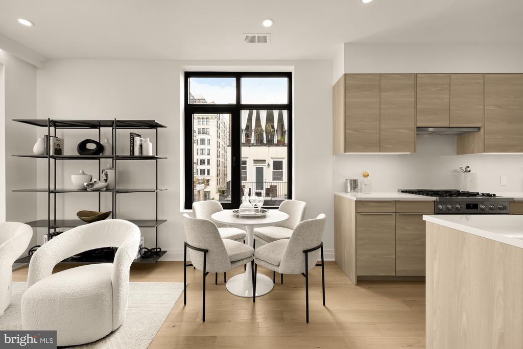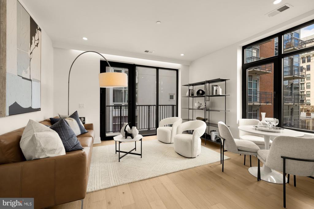 Welcome to The Verna – A Boutique Condominium in Logan Circle. The Verna is an exclusive collection of just 10 residences, designed for modern sophistication and timeless appeal. With only two homes per floor—one with eastern exposure at the front, the other with western exposure at the rear—residents enjoy both privacy and open, light-filled living spaces. This five-story building, with an elevator, offers thoughtfully designed 1BR and 2BR layouts, each showcasing refined craftsmanship and contemporary design. Inside every home, you’ll find: Custom Poggenpohl cabinetry; Caesarstone waterfall islands; Wide-plank white oak flooring throughout. At The Verna, elevated details meet everyday convenience in one of DC’s most vibrant neighborhoods. Just steps to Shaw, CityCenter, and within walking distance of five Metro stations, this is boutique city living at its best. Photos are of Model Unit 402 (same floor plan as Unit 202, but two floors above).