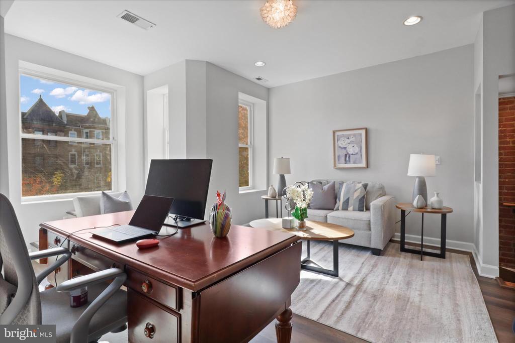 Welcome to this expansive four-level Art-Deco Victorian in the heart of Columbia Heights, offering over 4,200 square feet of living space where historic charm meets modern sophistication. The entire home has been freshly painted, featuring new carpet on the lower level, newly stained hardwood floors on the main and third levels, and brand-new LVP flooring on level two. The main level showcases spacious living and dining areas and a beautifully updated kitchen with stainless steel appliances, granite countertops, and a distinctive spiral staircase. Step out from the kitchen to a large rear terrace—perfect for morning coffee, entertaining, or dining al fresco. An attached one-car garage offers rare convenience in this sought-after neighborhood. The second level features a generous family room with exposed brick accents, a third bedroom with a private rear sunroom, a flexible bonus area, and a full bath—ideal for relaxing, working from home, or hosting guests. Upstairs, the top floor boasts a light-filled primary bedroom and a spacious secondary bedroom connected by a stylish Jack and Jill bath, highlighted by skylights and exposed brick detail. The finished lower level expands the living space with a Bonus room, full bath, and ample storage—perfect for guests, an au pair, or an in-law suite. Dual-zone HVAC (one gas, one electric) ensures comfort year-round. Recent Updates: • Heat Pump (2019) • Refrigerator, Stove & Oven (2020) • Primary Bath Remodel (2021) • HVAC & Hot Water Heater (2021) • Roofing & Attic Insulation (2021) • Railings & Banisters, Interior painting throughout, new carpet in lower level, hardwood floors sanded and stained on main & upper level 2, new LVP on upper level 1, freshly painted kitchen cabinets with new hardware (2025) Blending distinctive architectural details with thoughtful updates and over 4,200 sq ft of beautifully finished space, this home offers the perfect balance of character, comfort, and convenience—just steps to Metro, Meridian Park, shopping, dining, and all that vibrant Columbia Heights has to offer.