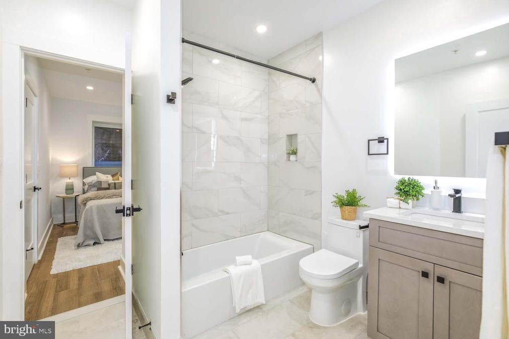 **OPEN HOUSE + HUGE REDUCTION**This newly constructed, semi-detached corner condo offers nearly 2,000 sq. ft. of modern living space with 3 bedrooms and 2.5 bathrooms in the heart of Petworth. From the welcoming front porch to the open, light-filled interior, the home blends contemporary finishes with a practical layout and natural flow. The main level opens with a sunlit foyer and spacious living area, seamlessly connecting to a chef’s kitchen featuring Bosch appliances, a built-in refrigerator, and an oversized waterfall island—perfect for everyday living or entertaining. Large windows overlook the deck and fully fenced backyard, extending the living space outdoors. Upstairs, three bedrooms provide flexibility for sleeping, a home office, or guests. Bathrooms feature sleek tile, LED anti-fog mirrors, and recessed lighting for a clean, modern aesthetic. Thoughtful details like soaring ceilings and integrated LED stair lighting add extra character. The primary suite offers direct access to a private patio and backyard—ideal for morning coffee, evening relaxation, or pets. An optional oversized parking space adds further convenience. Enjoy the community feel and walkability of Petworth, just steps from neighborhood favorites like Moreland Tavern, Timber Pizza, and Safeway, plus easy access to Rock Creek Park and Metro (Georgia Ave-Petworth & Fort Totten).