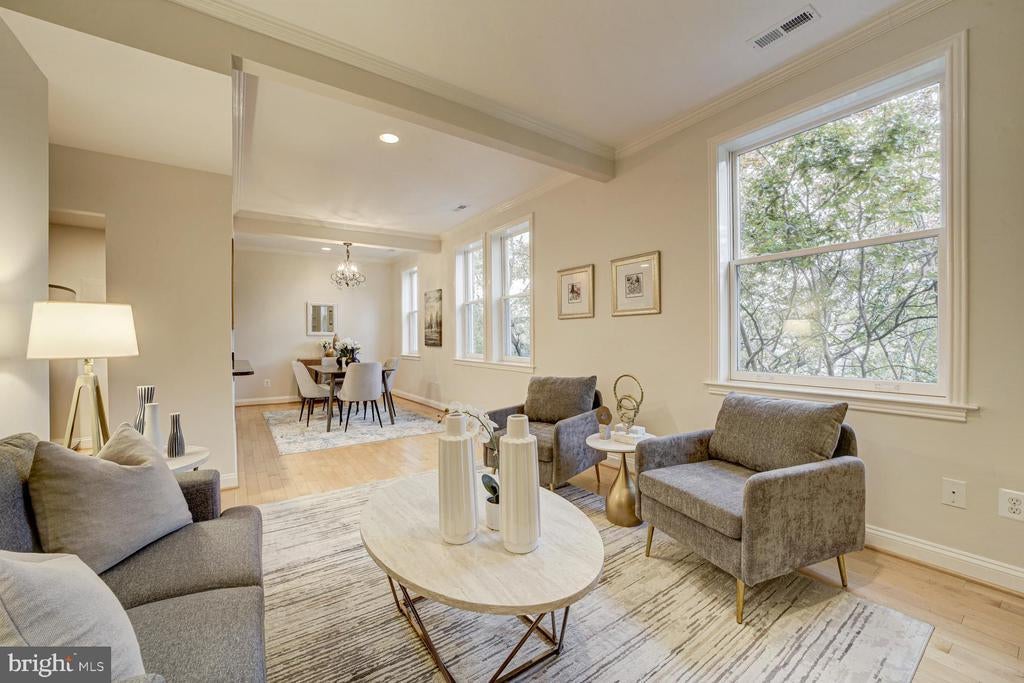 This top-floor, front-facing 2BR unit is one of the largest and one of the brightest in the building. It has a welcoming feel, with natural light pouring in even on cloudy days. This unit was completely renovated in 2009, at which time they vaulted the ceilings, installed new, solid, 3/4" wood floors, crown moulding, built-in bookcases in the LR, built-in bookshelves in the dining area, replacement Pella windows, and all new systems and fixtures. Additional highlights include a wood-burning fireplace, a private deck with new wood flooring, and abundant closet space enhanced by the high ceilings, plus a separate storage unit. Kentucky Manor Condominium comprises two sister buildings—one on 13th Street and one on Kentucky Avenue. Tax Record SF: 832 3rd Party Vendor SF: 929