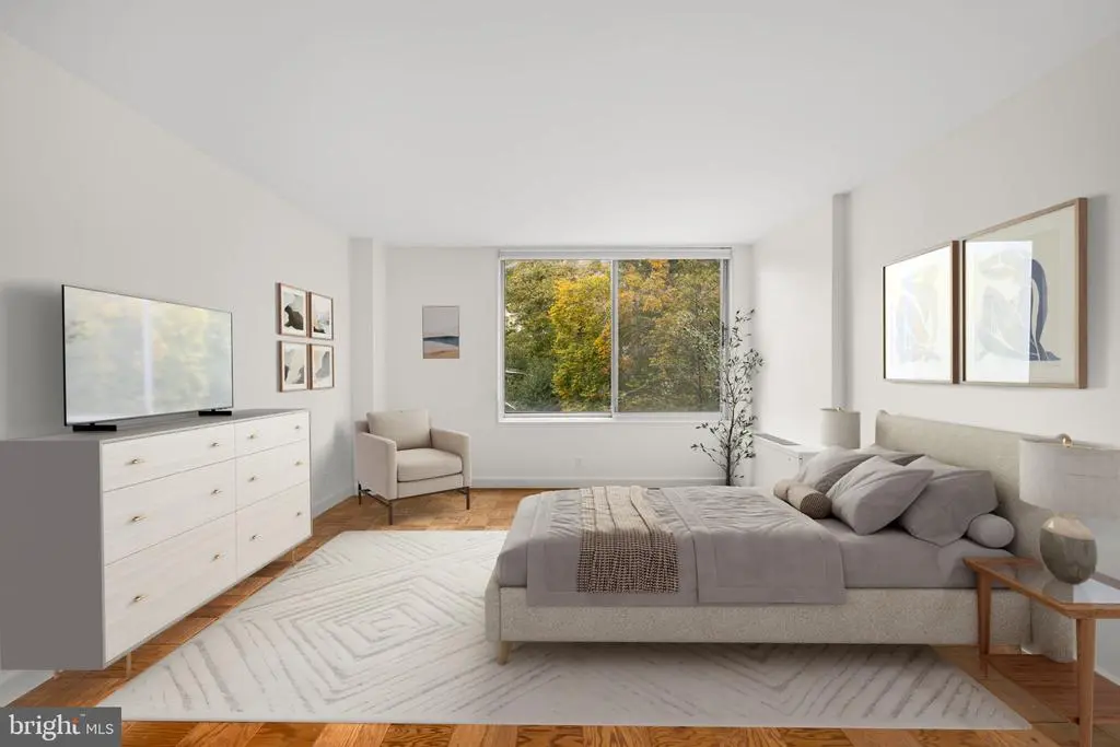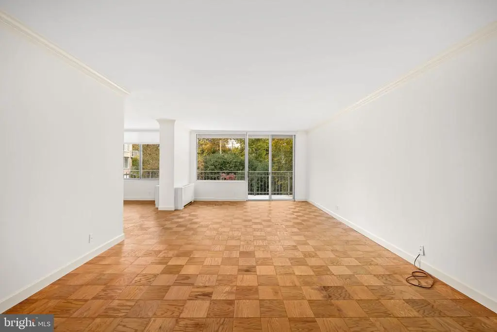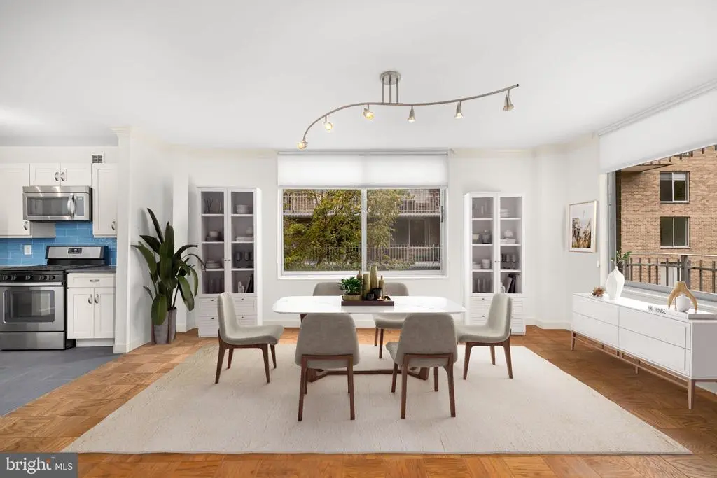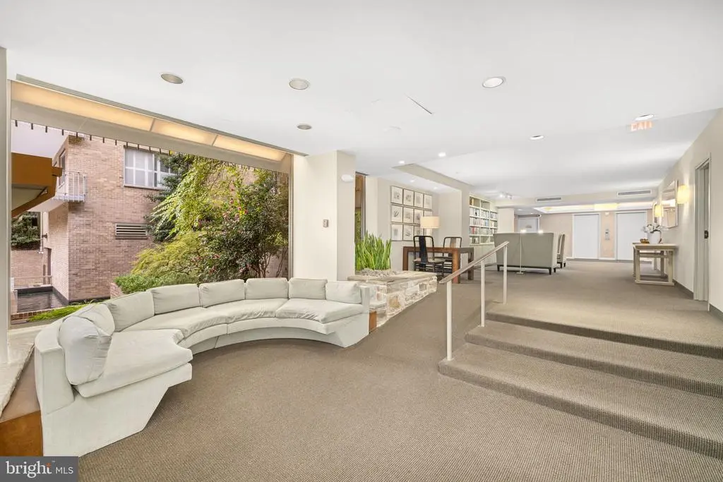 Welcome to Cathedral West Condominium, one of Washington’s distinguished “Best Addresses,” ideally situated in a quiet yet central location along Cathedral Avenue. Residence 712 offers exceptional space, classic design, and peaceful views overlooking the building’s elegant fountain and landscaped grounds. A gracious entry opens into an expansive foyer leading to a sun-filled living and dining area with hardwood floors, crown molding, and oversized windows that frame the tranquil courtyard below. The dining room, positioned with a corner of windows, provides a bright and airy setting for entertaining or everyday living. The table-space kitchen features granite counters, a glass-tile backsplash, stainless-steel appliances, and a walk-in pantry. The bedroom suite includes a walk-through dressing area with a large walk-in closet and an ensuite bath featuring dual vanities and contemporary tilework. A guest powder room and multiple closets throughout the home add convenience and generous storage. A private balcony extends the living space outdoors, offering a pleasant vantage point over Cathedral Avenue and the building’s fountain. The residence conveys with a separately deeded garage parking space and storage unit.