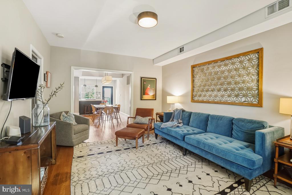 Welcome to 417 Emerson Street NW, a character-filled and thoughtfully renovated row home on one of Petworth’s most beloved blocks. This isn’t just a house—it’s part of a true community, where front-porch conversations and neighborly connection define daily life. Set on an extra-deep lot—nearly twice the length of most in the area— this property offers exceptional outdoor space, including new sod, refreshed landscaping, a recently stained fence (2025), a generous patio, 2022 storage shed, and off-street parking via a new back gate (2023). The front walkway and flat roof with tuned-up slate mansard (2025) add peace of mind and curb appeal. Inside, warm hardwood floors lead to a spacious, open-concept main level with dedicated living and dining areas that flow seamlessly into a renovated kitchen (2017, new flooring 2025) featuring custom cabinetry, stainless-steel appliances, and a picture window overlooking the backyard. The main floor also includes a half bath and a designated work space - great for kids or working from home. There is plenty of storage including a thoughtfully designed coat closet and a walk-through storage closet. Upstairs, the primary suite shines with an updated en-suite bath (2016), while two additional bedrooms, each with flex or play space, share a renovated hall bath. The finished lower level offers a family room, built-in bar, half bath, and laundry, ideal for a gym, media room, additional office, or guests. Major upgrades include a fully owned 15-panel, 5.475 kW Solar Energy Services system (2020) generating RECs worth $400 each, new kitchen floor/subfloor (2025), HardiePlank siding, electric panel, windows, bathrooms, and mini-split systems (2019) in all upper bedrooms. Located just off Sherman Circle, near Timber Pizza, Cinder BBQ, Upshur Street dining, and Georgia Ave–Petworth Metro, this home perfectly blends charm, function, and community. All square footage is approximate.