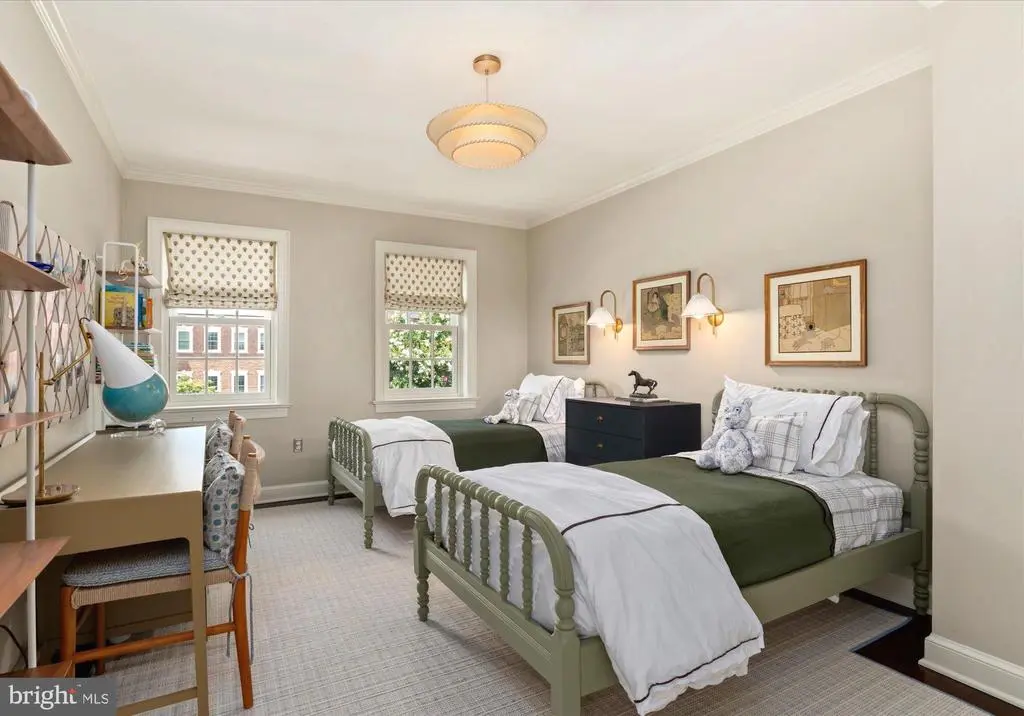 Stunning Georgetown home with approx 4,300 sq. ft. featuring 5 bedrooms, 5.5 baths, an elevator to all floors, a private rear patio, and a two car garage! This home has been beautifully renovated with high-end finishes, thoughtful details and a fabulous floor plan. The main level showcases a chef's kitchen, dining room, and large living room with wood burning fireplace. The upper level has a luxurious primary suite with attached office, multiple closets and two primary baths. The upper level has three additional bedrooms and two newly renovated bathrooms. The lower level has an incredible built-in play area, tons of storage, a newly renovated full bathroom with sauna, and a 5th bedroom / gym.