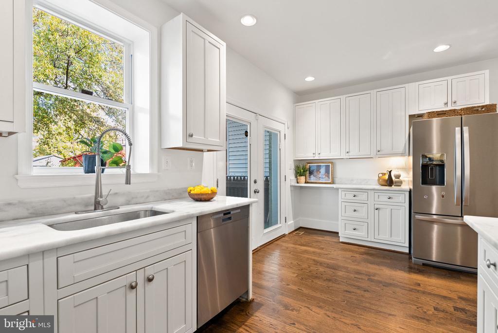 Welcome to 113 Hamilton Street NW- a turnkey home within walking distance of Metro, featuring one of the finest outdoor spaces in Brightwood Park/Petworth. Inside, natural light fills the open main level, creating an inviting flow from the living area to the dining space and kitchen. The kitchen includes marble countertops, updated stainless steel appliances, a gas range, white cabinetry, and a breakfast bar that’s perfect for casual meals or entertaining. French doors lead to a refinished deck that overlooks one of the home’s best features- a deep, fenced backyard anchored by a stunning mature willow oak tree that provides shade and character throughout the seasons. Upstairs, the home features three comfortable bedrooms, including a primary suite with vaulted ceilings, recessed lighting, custom closets, and a spa-like en suite bath with an oversized marble shower and rain head. A full hall bath and laundry on the bedroom level is very convenient. The lower level offers great flexibility with a guest suite or in-law space, complete with a bedroom, full bath, wet bar, and private rear entrance. It’s ideal for guests, an au pair, or a home office. Recent updates include refinished and restained hardwood floors, new flooring and built-in shelves in the basement bedroom and closet, and a coat closet added on the main level. The backyard boasts a professionally installed drainage system to divert water away from the home, and outdoor living is elevated with a freshly refinished deck. The entire home has been newly painted, offering a fresh and move-in-ready feel. The property includes a two-car parking pad and ample street parking. Residents love the close-knit community, walkability to Fort Totten Metro, and local favorites like La Coop Coffee, Everyday Sundae, ANXO Cider, and Brightwood Pizza & Bottle. Short distance to Fort Totten Metro and the Kennedy St revitalization. Neighborhood parks, schools, and easy access to Rock Creek Park and downtown make this a location that truly has it all.