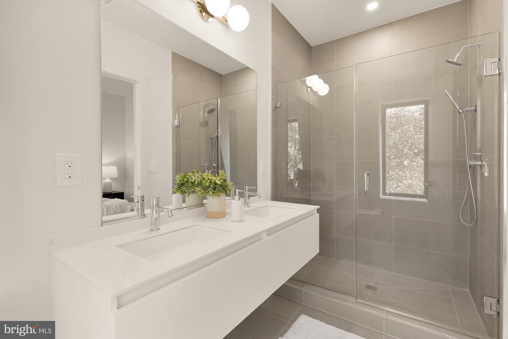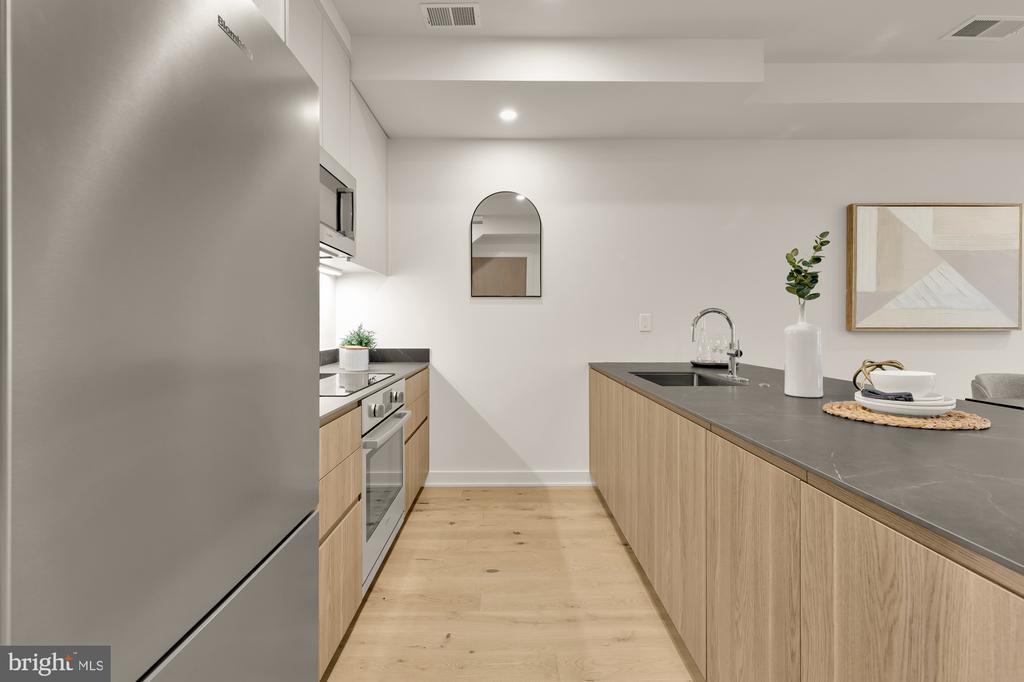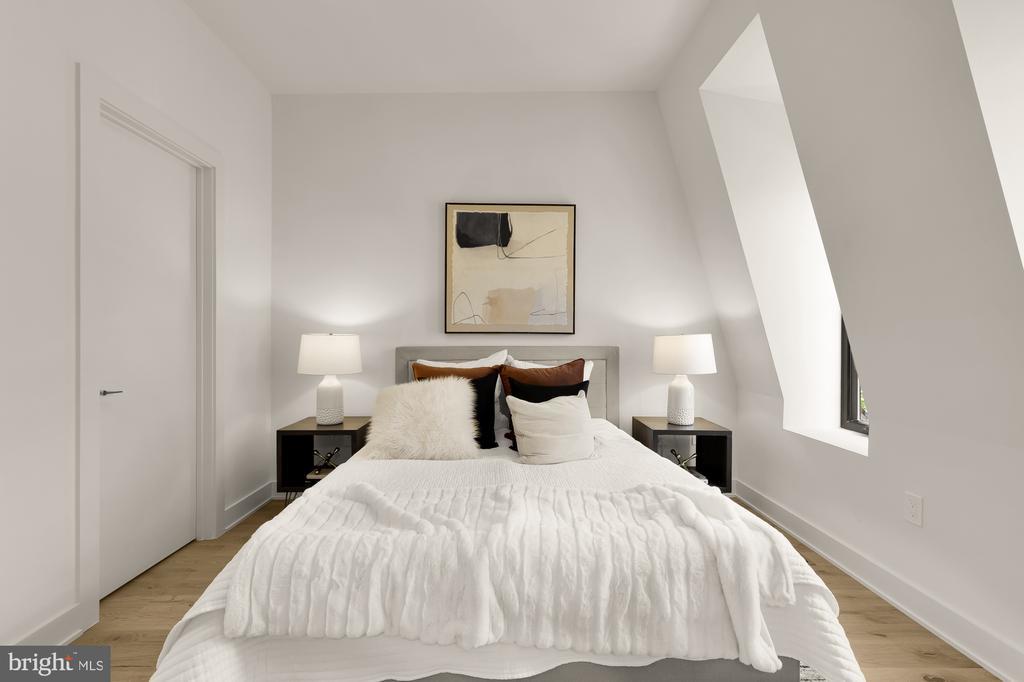 Open Sat. 1:00 - 3:00. Gorgeous new construction condos by Bloom Residential in a boutique 4-unit building. Unit 4 is a spacious and light-filled penthouse unit with premiere finishes throughout including Bosch appliances, XTONE black porcelain countertops, white oak flooring and luxury spa-like bathrooms with Porcelanosa vanities. The condo features a stunning, private roofdeck with beautiful neighborhood views plus a second balcony/deck off the main level. The ideal 2-level floorplan maximizes space and comfort and parking is included. Very close to multiple grocery options including Wegmans, Whole Food and Trader Joes as well as several popular restaurants including 2 Amys, Barcelona, Raku, Rocklands and Cactus Cantina. Floorplan and measurements deemed highly reliable but not guaranteed and not to be used for valuation purposes.