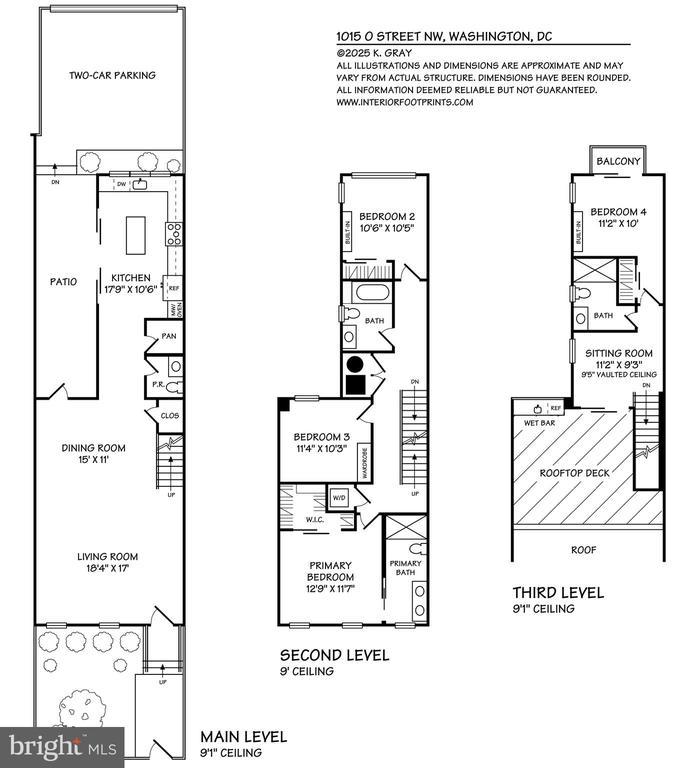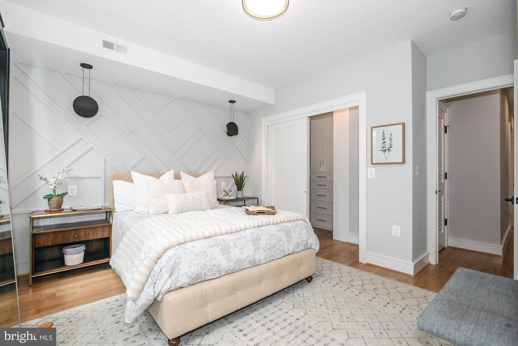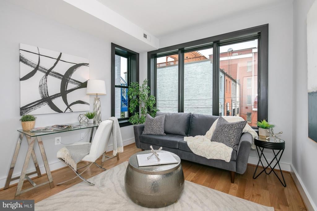 **IMPROVED PRICE & OPEN SAT 11/8 1-3PM & SUN 11/9 2-4PM** Lovely, essentially brand new THREE LEVEL Federal rowhome on a tree-lined block steps to some of the highest rated restaurants & nightspots! Expertly crafted with all custom designs throughout its deep levels: architectural square recessed lighting; sand-in-place oak hardwood floors; kitchen with quartz counters, moveable island with storage, cabinet-front appliances including Jenn-Air & Asko, and enviable step-in shelved pantry; 3.5 baths with floating cabinets with toe lighting & Ceasarstone counters; a customized, lighted primary closet; accent relief walls and custom glass/steel railing; plenty of storage space throughout. New features as of 2023: ALL windows, roof, and all systems including electrical & plumbing . The capstone on this new home is its outdoor spaces: a north/south roofdeck with a built-in wetbar with honed granite counters, cabinets, wine fridge & sink; a patio off the kitchen that leads to the secure 2-car PKG; and balcony off the top floor bedroom. All this and moments to hotspots Nina May, LGP and Supra, trendy Blagden Alley, Logan Circle, Whole Foods plus 14th Street boutiques and more in this central location!