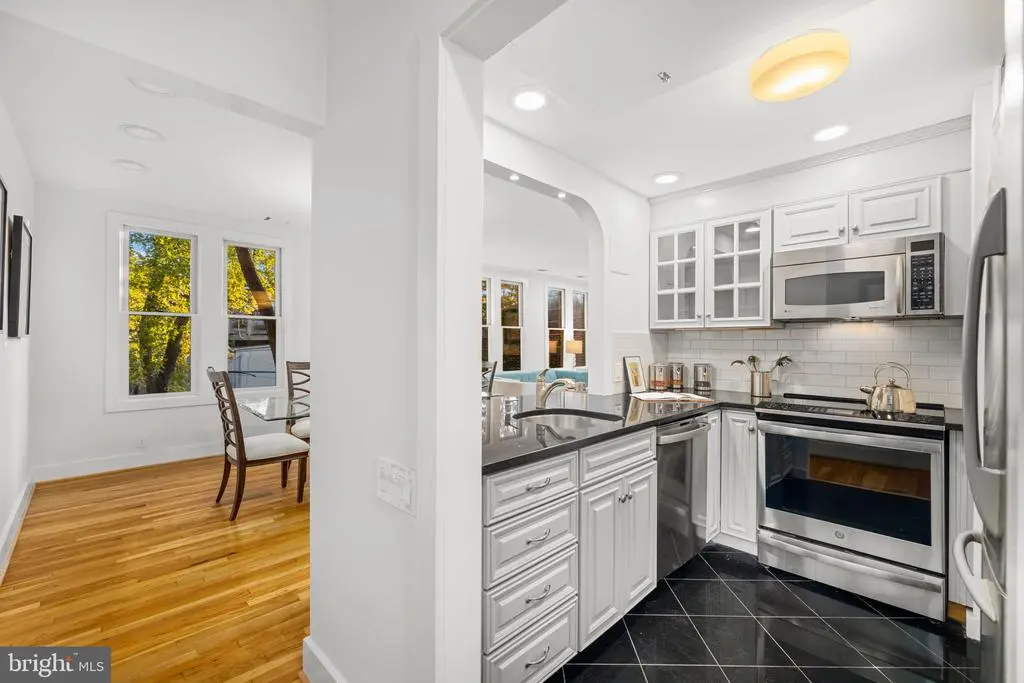 Sophisticated 2BR/2BA bi-level Dupont condo offers a bright, airy layout with modern upgrades and upgraded amenities. The open-concept main level features a wall of windows, hardwood floors, recessed lighting and a wood-burning fireplace surrounded by built-ins. The contemporary kitchen boasts quartz countertops, stainless steel appliances and chic grey cabinetry. Upstairs, the loft-style primary suite is replete with vaulted ceiling, abundant natural light and direct access to an expansive private roof terrace, perfect for relaxing or entertaining in a bucolic setting. Additional highlights include updated bathrooms, in-unit laundry, walk-in closets and a dedicated parking space. Ideally located just steps from countless restaurants, shops, and the Metro, an urban dweller’s dream comes true. Enjoy easy strolls to Rock Creek Park, Dupont Circle, Adams Morgan, the 14th Street Corridor and all downtown attractions. A true Walker’s Paradise with a Walk Score of 99.