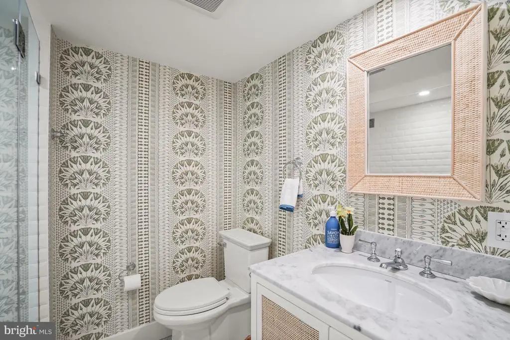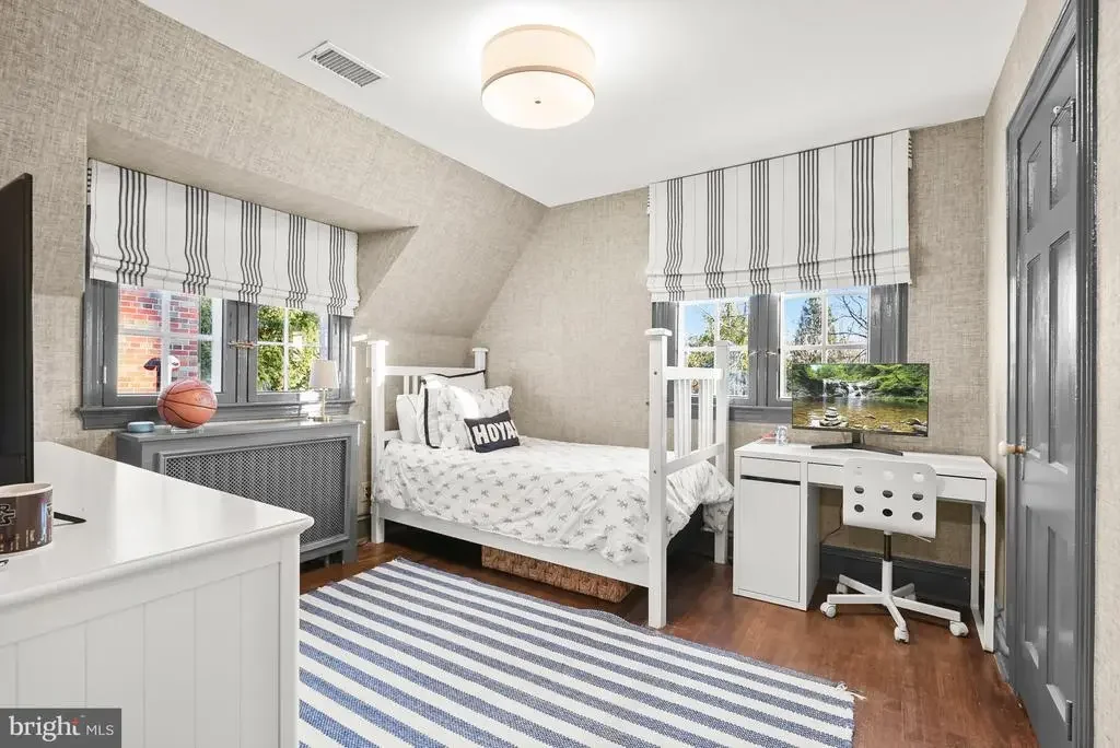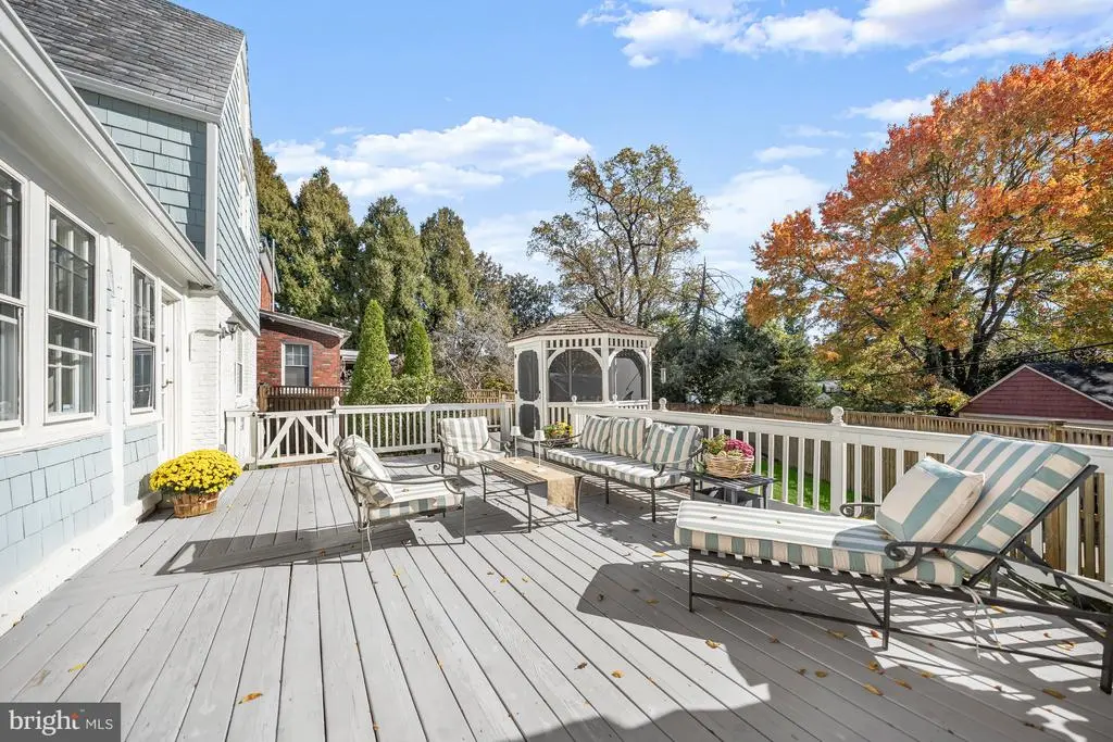 NEW LISTING! Open Sat 1-3 & Sun 2-4pm! Storybook charm is just the beginning for this coveted tudor on a lush level lot...Stunning designer touches and thoughtfully upgraded top-to-bottom -- perfect for gracious entertaining and comfortable daily living. The MAIN LEVEL features: Gracious ENTRY HALL with pretty pendant, accent wallpaper and coat closet / Spacious formal LIVING ROOM with wood-burning fireplace and paneled millwork / Formal DINING ROOM with stunning chandelier and vibrant wall covering creates the perfect ambiance / Gourmet, eat-in KITCHEN with breakfast bar seating and beautifully equipped with Shaws farm sink, Viking stainless steel appliances, quartz counters, subway tile backsplash / Cheerful SUNROOM (or office) offers versatile space / Nicely appointed POWDER ROOM / The UPPER LEVEL has: Enviable PRIMARY SUITE with ensuite FULL BATHROOM (2022) with frameless glass shower with gorgeous marble, Victoria Albert soaking tub, dual sink vanity with Perrin & Rowe faucets and custom closets / SECOND BEDROOM with neutral wallpaper and large closet / Updated HALL BATHROOM with two pedastal sinks, marble tile, and tub/shower / THIRD BEDROOM with plentiful closet storage / And the LOWER LEVEL highlights include: Fully reimagined (2022) RECREATION ROOM offering versatile space for family room, play area and home gym / Stunning FULL BATHROOM with penny tile, designer wallpaper, frameless glass shower, and marble-topped vanity / What a treat to do laundry in this LAUNDRY ROOM with front-loading, full-size washer/dryer, crisp wallpaper, sink vanity, extra fridge and additional storage...The EXTERIOR offers: Front yard fully enclosed by white picket fence / Expansive deck with screened-in gazebo ideal for al fresco entertaining / Abundant greenspace provides a wonderful outdoor oasis / Fabulous multi-sport court (2021) with basketball hoop...Other UPGRADES & DESIGN NOTES include : custom window treatments, hardwood floors, custom radiator covers, HVAC (2019), hot water heater (2023) / LOCATION - Beloved American University Park offers its residents the best of all worlds -- proximity to culinary favorites and numerous conveniences yet set in lush tree-lined, side-walked setting with a neighborhood feel. Home to "Turtle Park" and nearby American University's campus, this community is perfectly perched on the doorstep of the Nation's capital and all it has to offer. SHOWING BY APPT ONLY. — Pre Offer Inspections Welcomed!