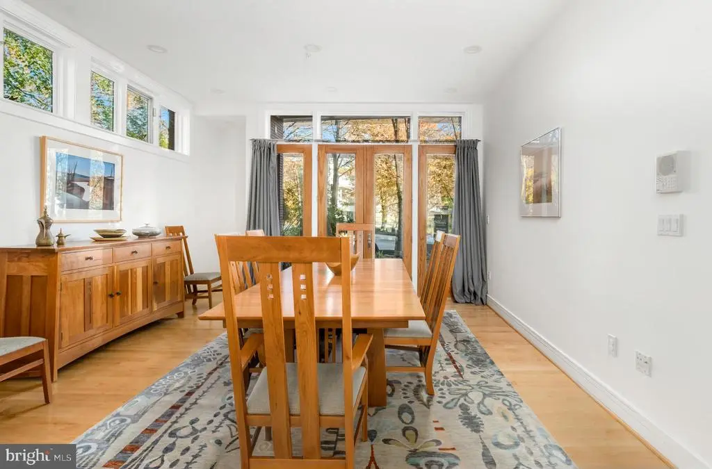 Open House this Sunday [11/16] from 1pm to 3pm At the quiet end of a cul-de-sac bordering Rock Creek Park, this modern home seems to emerge from the landscape itself. From the front approach, its low roofline, horizontal brickwork, and natural materials convey a calm order, an urban reflection of the organic principles advanced by Frank Lloyd Wright. The architecture feels timeless and assured, grounded in Washington’s built tradition yet oriented to the forest beyond. At the rear, the façade becomes a masterclass in the fusion of private residence and wooded landscape. Expanses of glass and carefully scaled terraces dissolve the boundary between structure and setting, allowing nature to animate the architecture throughout the day. Inside, the design by Travis Price, FAIA unfolds as a study in movement and light. A double-height great room anchors the plan, framed by floating landings and structural glass that draw natural light through every level. The arrangement creates a natural progression from open gathering spaces to quieter moments of retreat, each revealing a distinct relationship to the wooded setting. An elevator serves all levels, connecting spaces that were shaped to evolve gracefully over time. Rooms adapt in purpose and scale, a study or studio, a guest suite, a den that opens to a terrace, or a lower level designed for wellness and work. Throughout, materials remain honest and enduring, brick, glass, steel, and wood in balanced proportion. Every element serves the experience of living within architecture rather than beside it. The result is a home of enduring calm and presence, modern in spirit, profoundly connected to nature, and perfectly situated along one of the city’s most treasured parkfront settings.