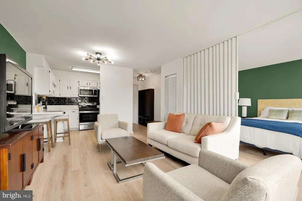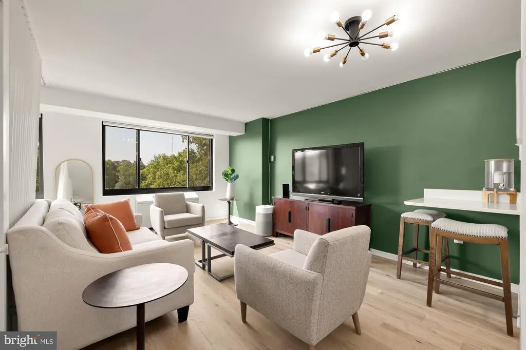 Nestled above the treetops in Chevy Chase, D.C., this Jr. one-bedroom penthouse at The Garfield Condominium radiates warmth and charm. The top-floor setting fills the home with sunlight, while engineered oak floors, crisp new paint, and a modern kitchen with stainless steel appliances and black subway tile bring a fresh, contemporary feel. Thoughtfully designed and move-in ready, this home includes all utilities and a parking space available for rent, making everyday living simple and stress-free. Life at The Garfield offers the perfect balance of comfort and convenience. Residents enjoy an expansive rooftop terrace with sweeping city views, a well-equipped fitness room, and a shared laundry facility. A 24-hour front desk provides both peace of mind and a warm welcome each day. Perfectly located in Chevy Chase DC, this home is just moments from neighborhood conveniences including Safeway, charming cafés, local shops, and restaurants. With Friendship Heights Metro just a short walk away, getting around the city couldn’t be easier. Whether you’re a buyer, investor, or searching for the ideal pied-à-terre (furniture can convey!), this turnkey residence delivers comfort, style, and an unbeatable location in one of Northwest D.C.’s most desirable neighborhoods. Listing agent is owner.