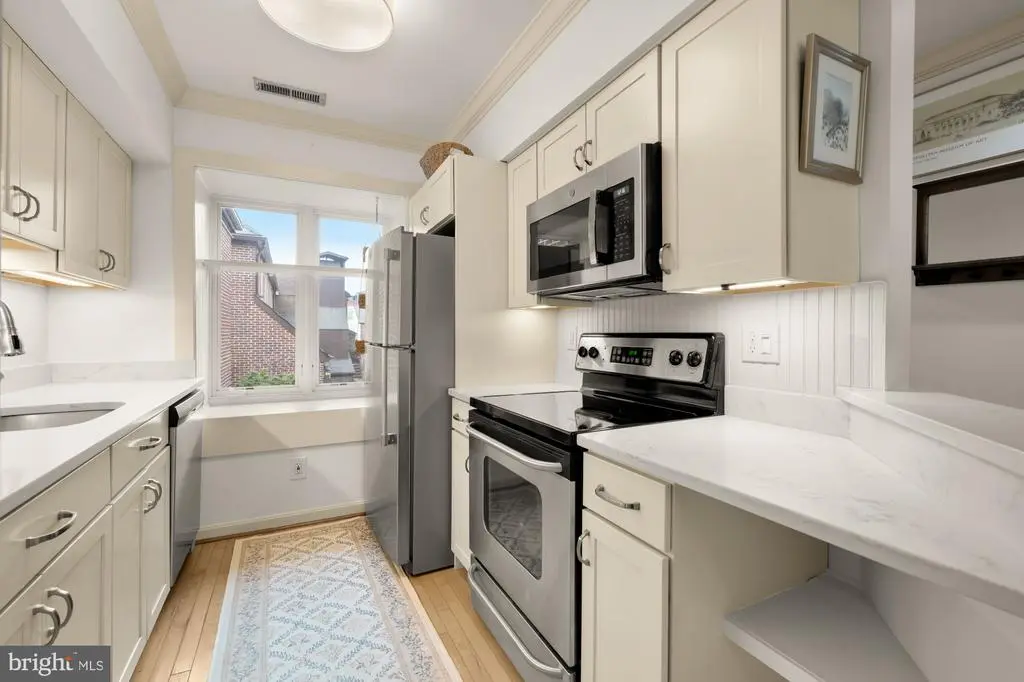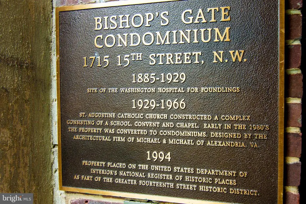 NEW LISTING! Open Sunday 1-3. Fabulous 2BR upper townhouse in secure gated community with deeded parking! Lives like a house! Pets welcome! Huge 12' x 16' private terrace, open floorplan, 1/2 block to 14th St in the heart of Logan. Bright, sunny, open floorplan, granite kitchen, laundry upper level, Central AC. Enjoy the city's best and most walkable neighborhood! The main level of this home features a foyer entrance, a lovely open floorplan with wood-burning fireplace, green leafy views, and light wood floors. The gourmet kitchen boasts premium countertops, stainless steel appliances and an oversized window that is perfect for your kitchen herb garden. Hardwood floors continue in both bedrooms 0n the upper level where there is a stacked washer and dryer, full bathroom and nice sized storage closet. The HVAC was replaced in 2020. Bishop’s Gate Condominium is a wonderful gated community with meticulous landscaping and green space, community grills and picnic areas, pets are welcome (there are no restrictions) and on-site storage is available for a very nominal fee. Located within walking distance of many fabulous restaurants, cozy cafes, unique shops, gourmet grocers, fitness centers, dog parks, and both the Red & Green Line Metro, this home boasts an outstanding Walkability Score of 94 out of 100, making it a Walker's Paradise. The former school, convent, chapel and courtyard walkways of Bishop's Gate Condominium were originally part of St. Augustine's Church and were restored and converted to condominiums by the architectural firm of Michael & Michael. Bishop's Gate was listed as a DC Landmark in the National Registry of Historic Places as part of the Greater Fourteenth Street Historic District on August 22, 1994.