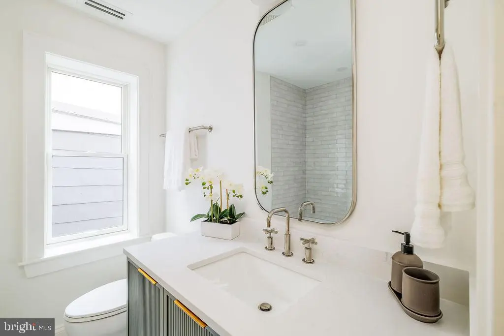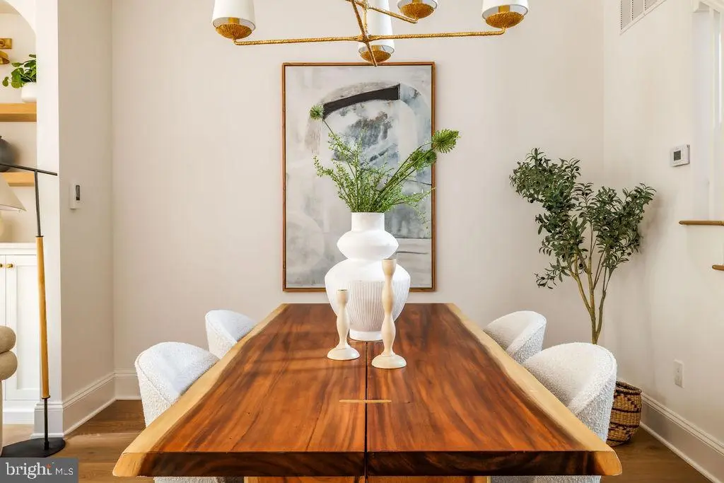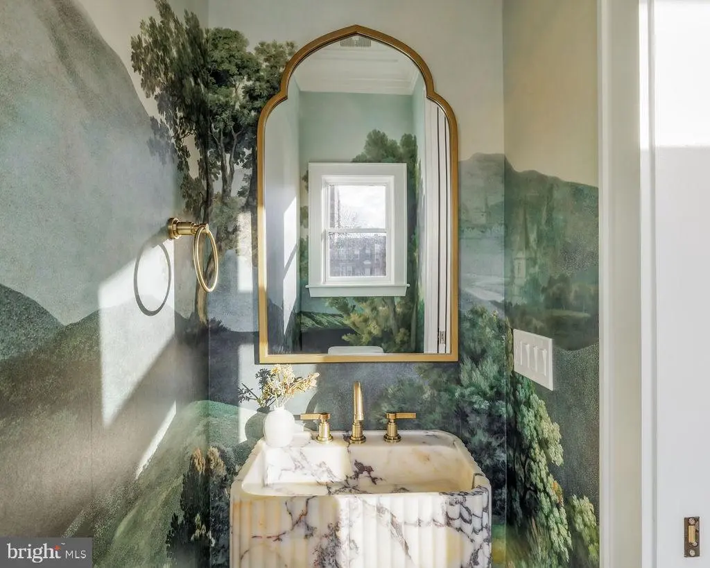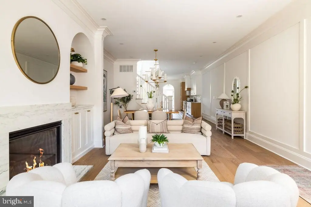 Historic Elegance Reimagined | This luxury full renovation by Ziba Management is a showstopper Victorian rowhome in the heart of the city, where historic charm meets curated, high-end design. Set on a quiet, tree-lined block, the home's charcoal-painted brick façade and turreted roofline offer striking curb appeal and a hint at the refined craftsmanship found throughout. Inside, four levels of beautifully finished living space unfold with wide-plank white oak floors, tall ceilings, elegant millwork, and abundant natural light. The main level is anchored by a sculptural central staircase and features a gracious living room with arched built-ins and a marble gas fireplace, a formal dining space, and a custom chef’s kitchen with honed marble countertops, natural wood cabinetry, Thermador appliances, and custom hardware. An exquisite powder room with custom mural wallpaper and a fluted marble sink makes a bold impression. Upstairs, the primary suite offers treetop views and a spa-inspired bath with dual vanity, wet-room shower / soaking tub, and dramatic custom tilework. Additional bedrooms and bathrooms, each with their own unique finishes, provide generous space for family, guests, or home office use. On the top level, a lounge with wet bar opens to a private ROOF DECK with expansive city views—perfect for entertaining or relaxing above the trees. The fully finished lower level includes a well-appointed kitchenette/bar, living room, bedroom, and full bath with private entry, which is ideal for guests, an au pair suite, or rental potential. Out back, a fenced flagstone patio and yard lead to rare detached garage parking. Located between Adams Morgan, DuPont, Kalorama, and Mount Pleasant, you are truly in the center of it all! To name a few, The Line Hotel, Tail Up Goat, Tryst, so many other amazing restaurants, boutiques, and green spaces all at your doorstep!