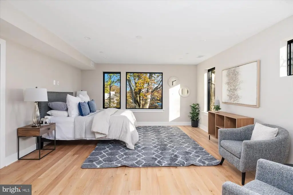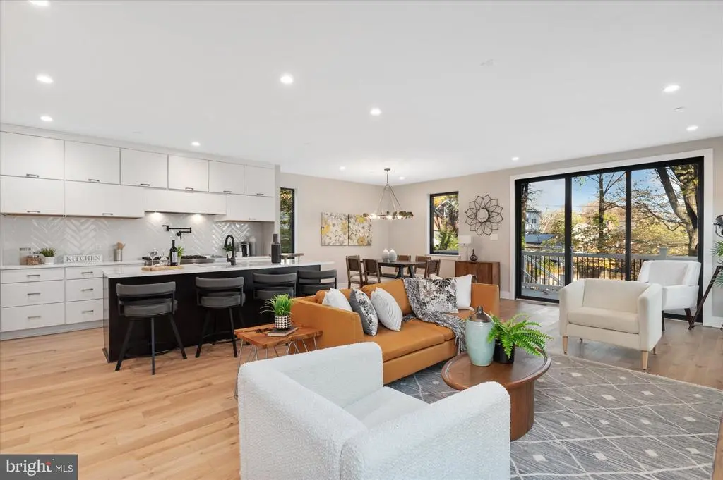 Reimagined, expanded, and masterfully redesigned, this exceptional new construction in Chevy Chase, DC, seamlessly blends timeless Colonial charm with clean, modern sophistication. Curated by JDM Design Studio, the interiors strike a perfect balance between classic elegance and contemporary comfort, ideal for today's lifestyle. The main level welcomes you with beautifully finished wood floors and a thoughtfully designed layout, featuring a comfortable formal living room, an elegant dining room, a butler's pantry, a whimsical powder room, and a spacious walk-in pantry. A charming side entry hall enhances the flow and functionality of the space. The heart of the home is a stunning gourmet kitchen outfitted with high-end appliances and designer finishes, opening seamlessly to a large family room. Sliding doors lead to a large rear deck overlooking a fenced backyard and a 12' x 20' off-street parking pad, pre-wired for an EV charger. Upstairs, the second level offers three generously sized bedrooms and three full bathrooms, including a luxurious primary suite with a spa-like bathroom and two expansive walk-in closets. A dual-entry laundry room adds everyday convenience. The third-level loft is a true showpiece, featuring 14-foot ceilings, a spacious second family or media room, two additional bedrooms, two full bathrooms, and a covered rooftop deck with a wood-paneled ceiling, perfect for relaxing or entertaining while enjoying sweeping rooftop and treetop views. The walk-out lower level provides even more flexible living space, complete with a full bedroom, 1.5 bathrooms, a large recreation room, a second laundry area, and a mudroom with direct access to the backyard and parking pad. Ideally located just five blocks from the shops, dining, and amenities of Connecticut Avenue, and only three blocks from Lafayette Elementary and Broad Branch Market, this beautifully crafted home offers refined design, generous space, and an unbeatable location in one of DC's most desirable neighborhoods.