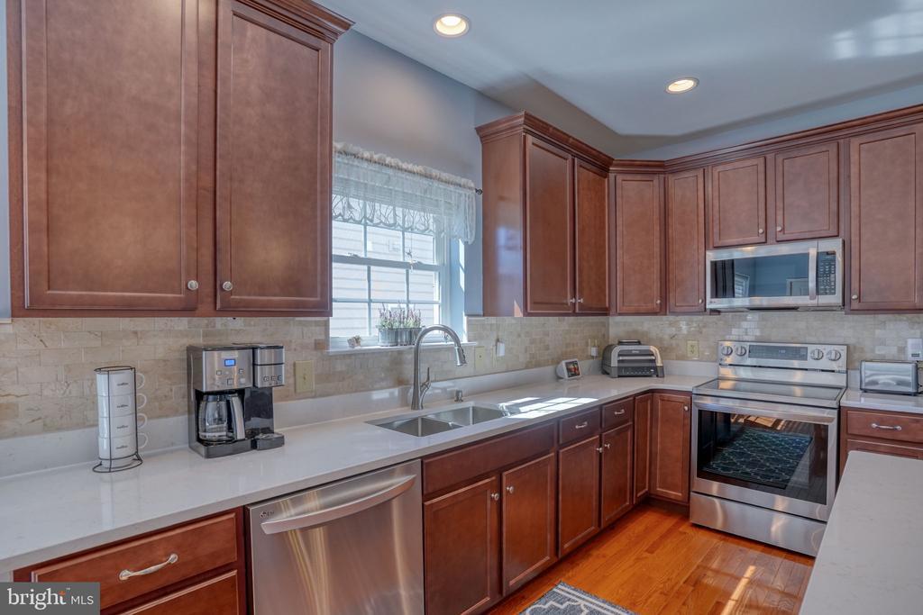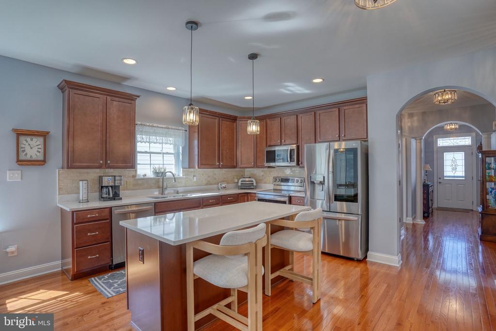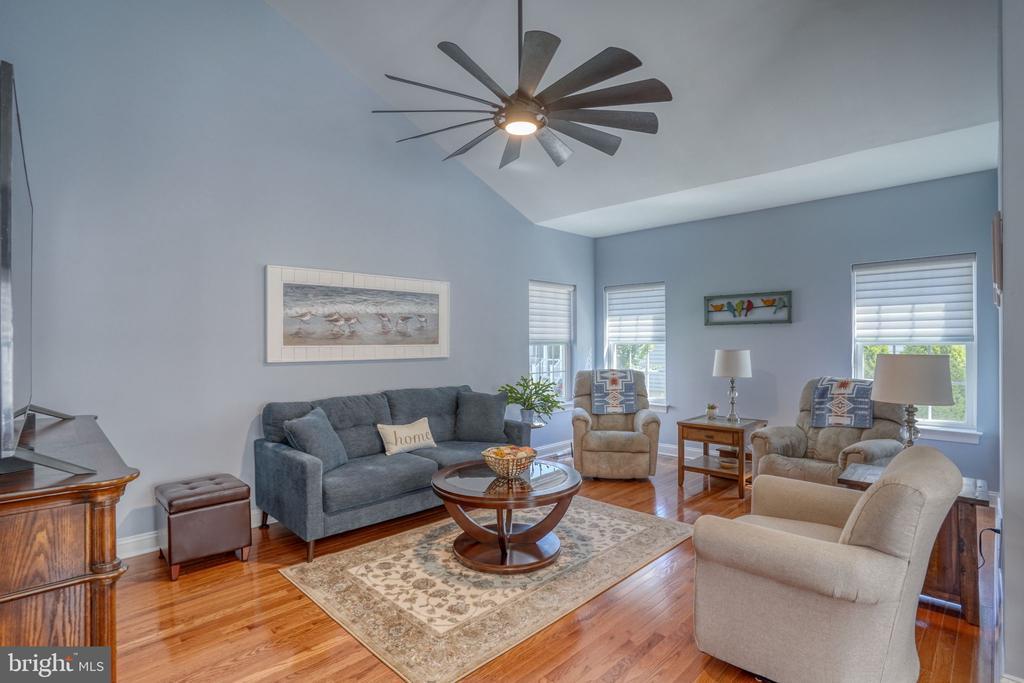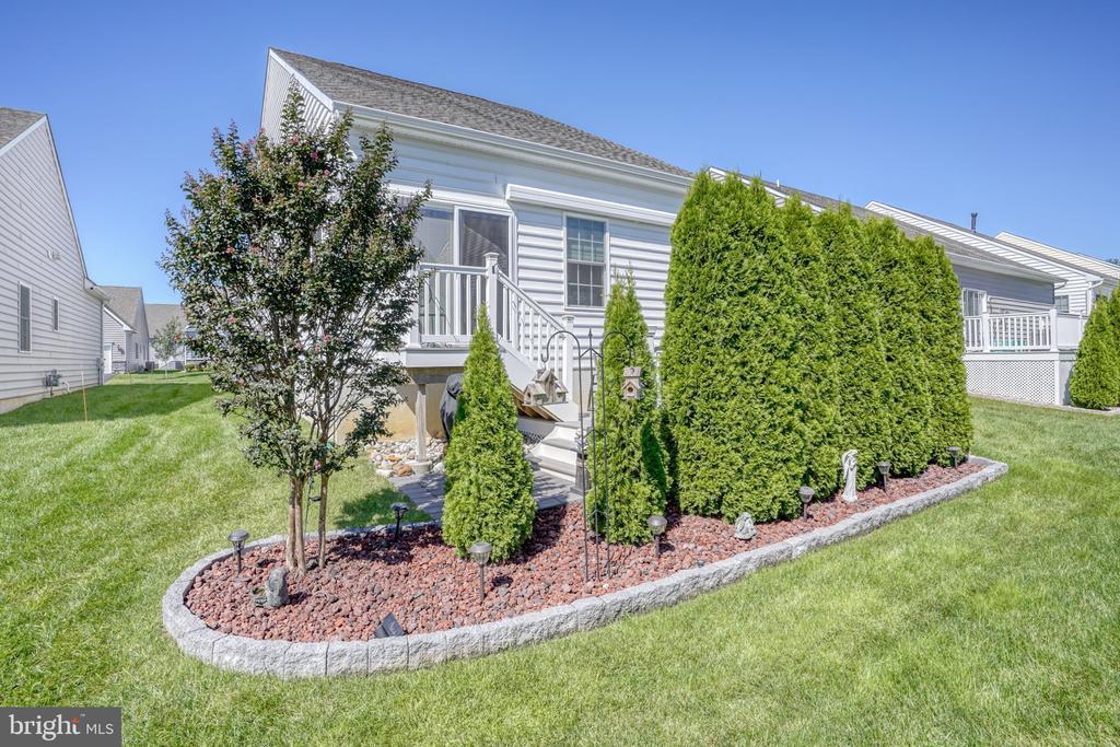Welcome to the beautiful Village of Eastridge where this 55+ community has all the amenities you'll desire!! This very well maintained Bayard ranch style home features 2 bedroom, 2 baths with ample living space to enjoy quality time with family and friends. A beautiful fiberglass front door w/ leaded glass and matching transom take you inside this home. Now take notice of the stunning solid hardwood flooring, and the eye catching columns. The spacious updated kitchen features quartz countertops w/ ceramic tile backsplash, recessed lighting w/ pendant lights, double bowl basin sink, stainless steel appliances, stunning 42" walnut cabinetry with crown molding and convenient pull-out shelving. Two large pantries allow for additional kitchen storage. The added 4 ft extension, and cathedral ceilings, create a spacious and inviting living room area with ceiling fan creating an open concept for all to enjoy. The dining area leads to a cozy sunroom/sitting room featuring pocket doors and sliders (with shades inside of them) that lead to a 10x16 solid vinyl deck with vinyl railing and privacy trees for added space to enjoy. The primary bedroom features a large walk in closet with added closet organizer. The private bath offers a 5 ft. seated shower with glass doors and comfort height, and double vanity. A second bedroom is located on the other side of this home with access to a full hallway bathroom with tub. The laundry room has a sink and extra shelving for added convenience. If you need storage.... does this home have tons of storage... a five foot crawl space located off the kitchen that is so convenient, clean and organized... This home is a must see....shows like a model home. This home also has a 5 ft. conditioned crawlspace for more storage space, two sump pumps, one of which is water powered, for peace of mind should your electric go out. The HOA fees, include lawn maintenance and snow removal of not just the streets but sidewalks and driveways as well. The "Village of Eastridge" offers 34 acres of open space with walking trails, outdoor picnic areas, bocce ball, shuffleboard courts and a fantastic clubhouse with billiards, exercise room and more! The Village of Eastridge is located a short distance to popular retail stores, downtown Smyrna specialty shops and eateries with easy access to RT's 1 and 13.