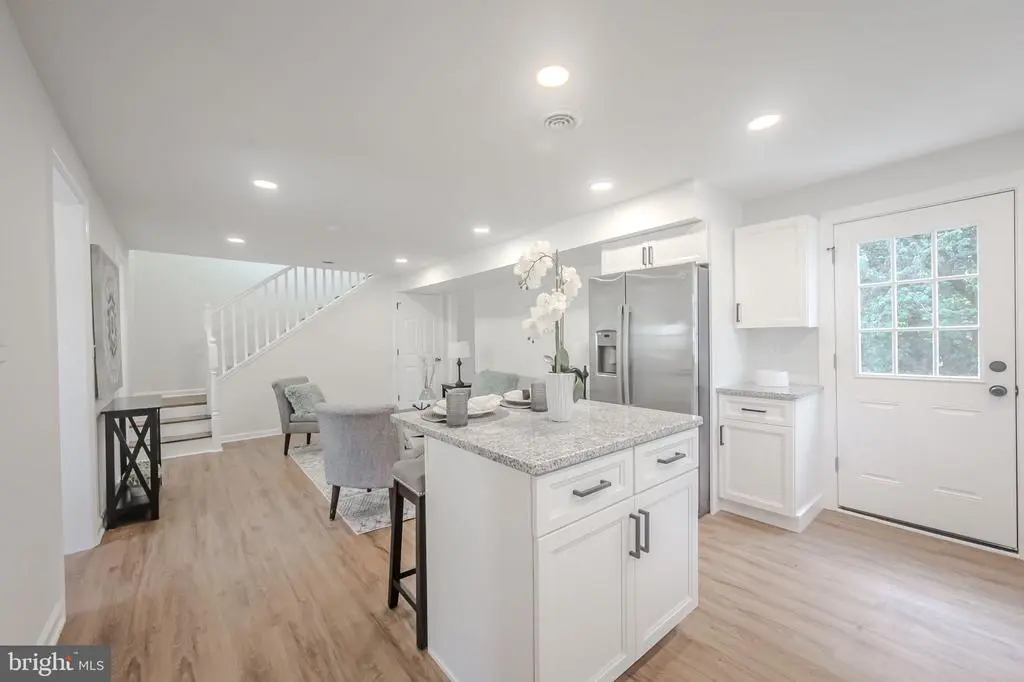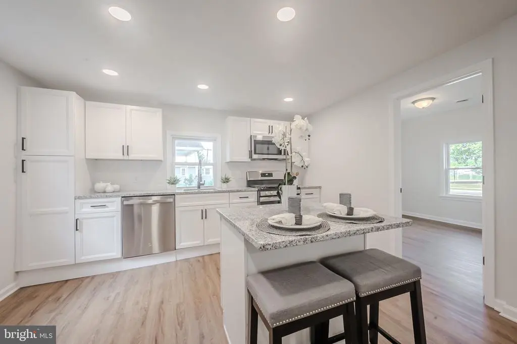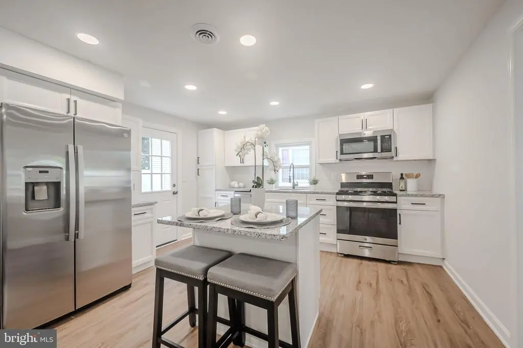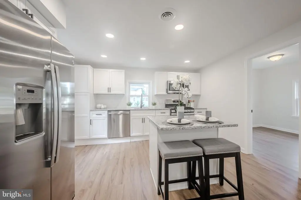 This beautifully renovated home has been completely updated down to the studs. New HVAC, new roof. New electrical/wiring, new plumbing, new drywall and all of the finishes. The home provide a fresh and modern aesthetic, offering the best in contemporary living. As you approach the front door, you'll immediately notice the pleasant curb appeal. You're greeted with new laminate floors, fresh paint, and recessed lighting as soon as you walk inside. The open floor plan flows into the kitchen which is complete with granite countertops, tile backsplash, stainless steel appliances, new cabinets, and an island with barstool seating. The main level is filled with natural light pouring through the new vinyl windows. All bedrooms are spacious with healthy closet space. Both bathrooms have been tastefully updated with tile floors, new vanities, elegant fixtures, tile-surround showers, and fresh paint. The expansive backyard offers ample room for family activities. Situated in a prime location, this home offers easy access to local amenities, schools, parks, and transportation. Schedule your tour today!