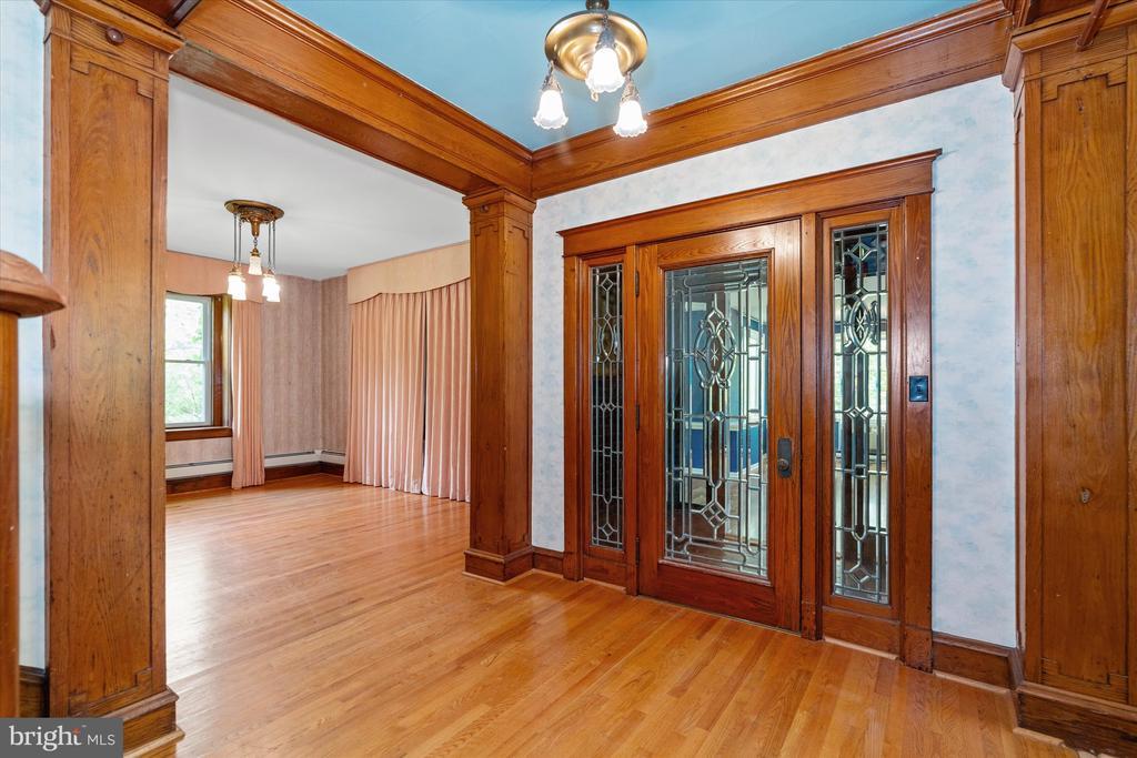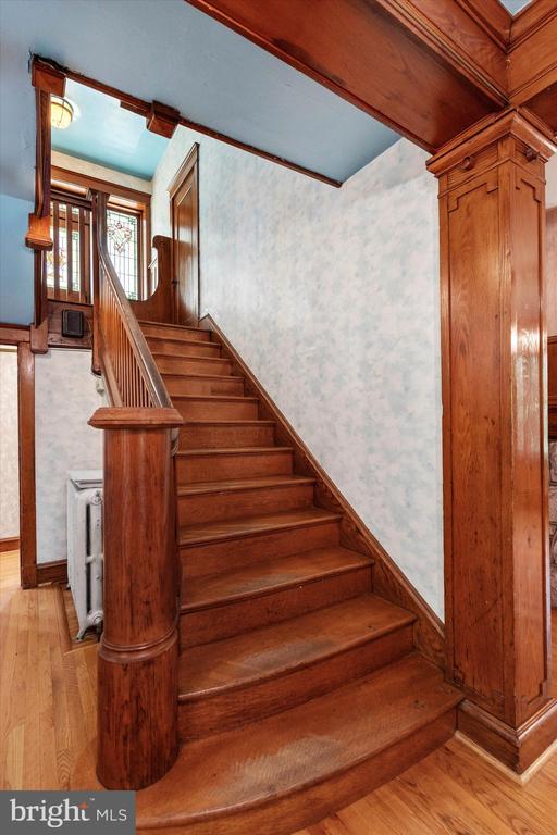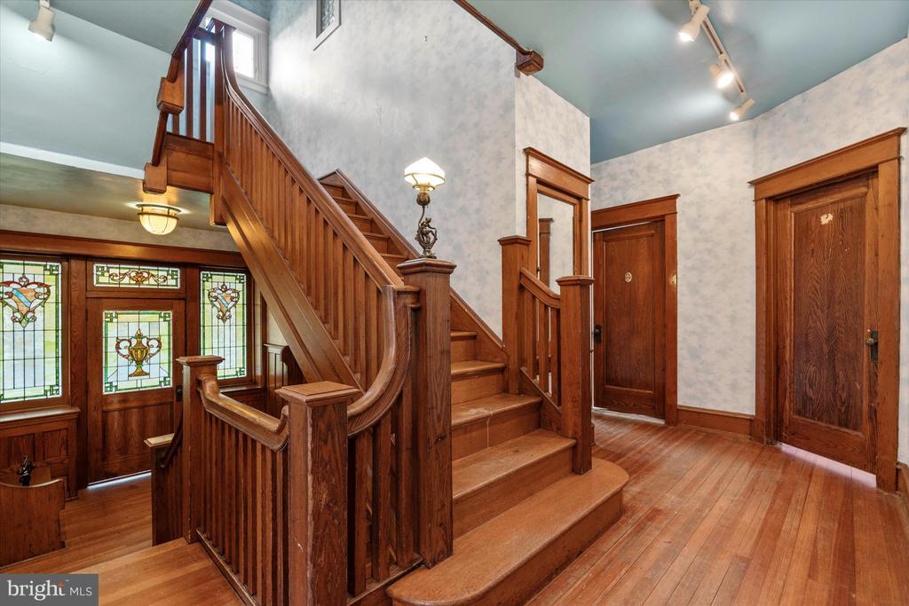 Additional Stairway, Built-Ins, Crown Molding, Entry Lvl BR, Formal/Separate Dining Room, Soaking Tub, Stain/Lead Glass, Stall Shower, Upgraded Countertops, Wood Floors